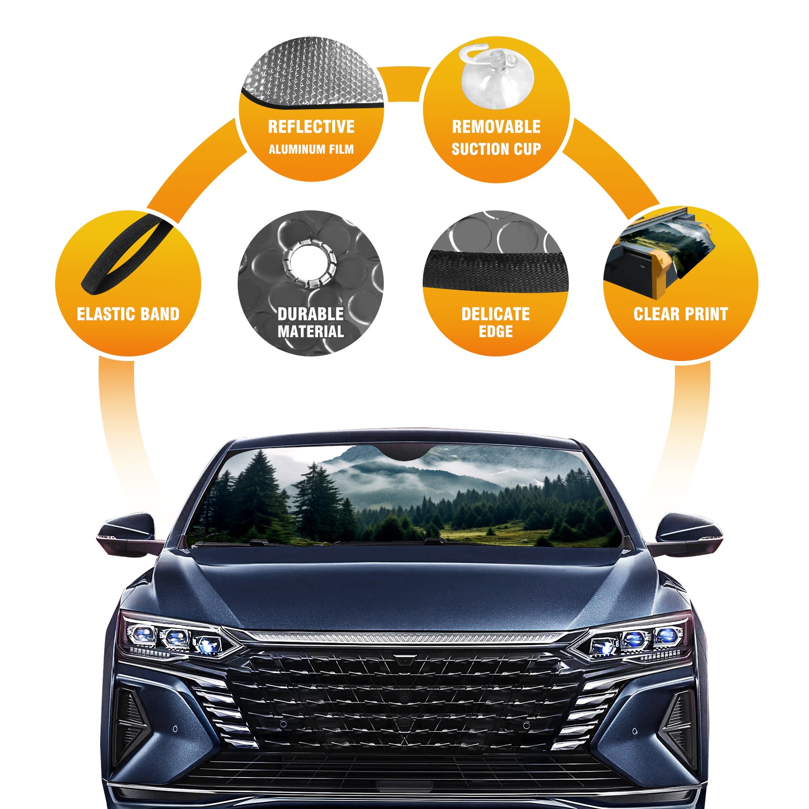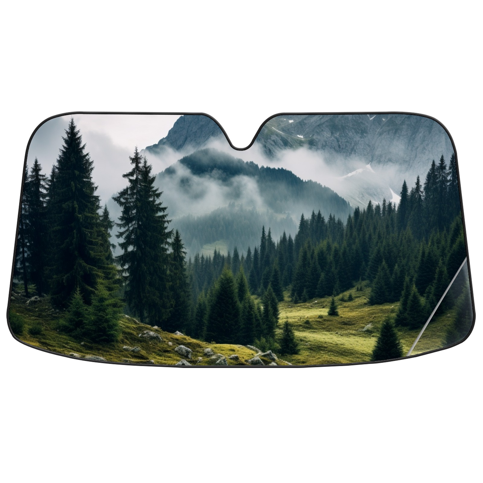Mountains Car Sun Shade UV Protection Foldable Sunshade for Windshield Heat Insulation Portable Sun Shield for Car Interior Protection Automotive Window Protector