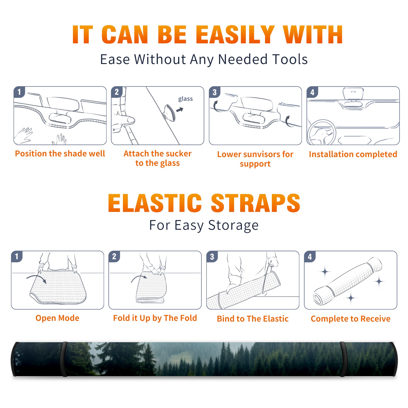 <p><b>Foldable Premium Car Windshield Sunshade is your great solution to reduce your car’s interior temperature dramatically! This is definitely a must-have item for your summer travel!</b></p><p><b>【Precision Fit, Stylish Protection】</b></p><p>55"x30" (140x76cm) universal size with 3cm flexible margins fits curved windshields of most sedans/SUVs.</p><p><b>【Blocking Uv Rays &amp; Heat Insulation】</b></p><p>Our vehicle sunshade provides effective UV, sun, and summer heat protection, preventing leather fading and plastic cracking to keep your car interior pristine.</p><p><b>【Zero-Mark Installation &amp; Space-Saving】</b></p><p>Equipped with dual scratch-free silicone suction cups + adjustable straps: Medical-grade silicone cups hold firmly yet remove cleanly. Folds to A3 size (42x30cm x &lt;2cm thick), tucks discreetly into glove compartments or door pockets.&nbsp;</p>