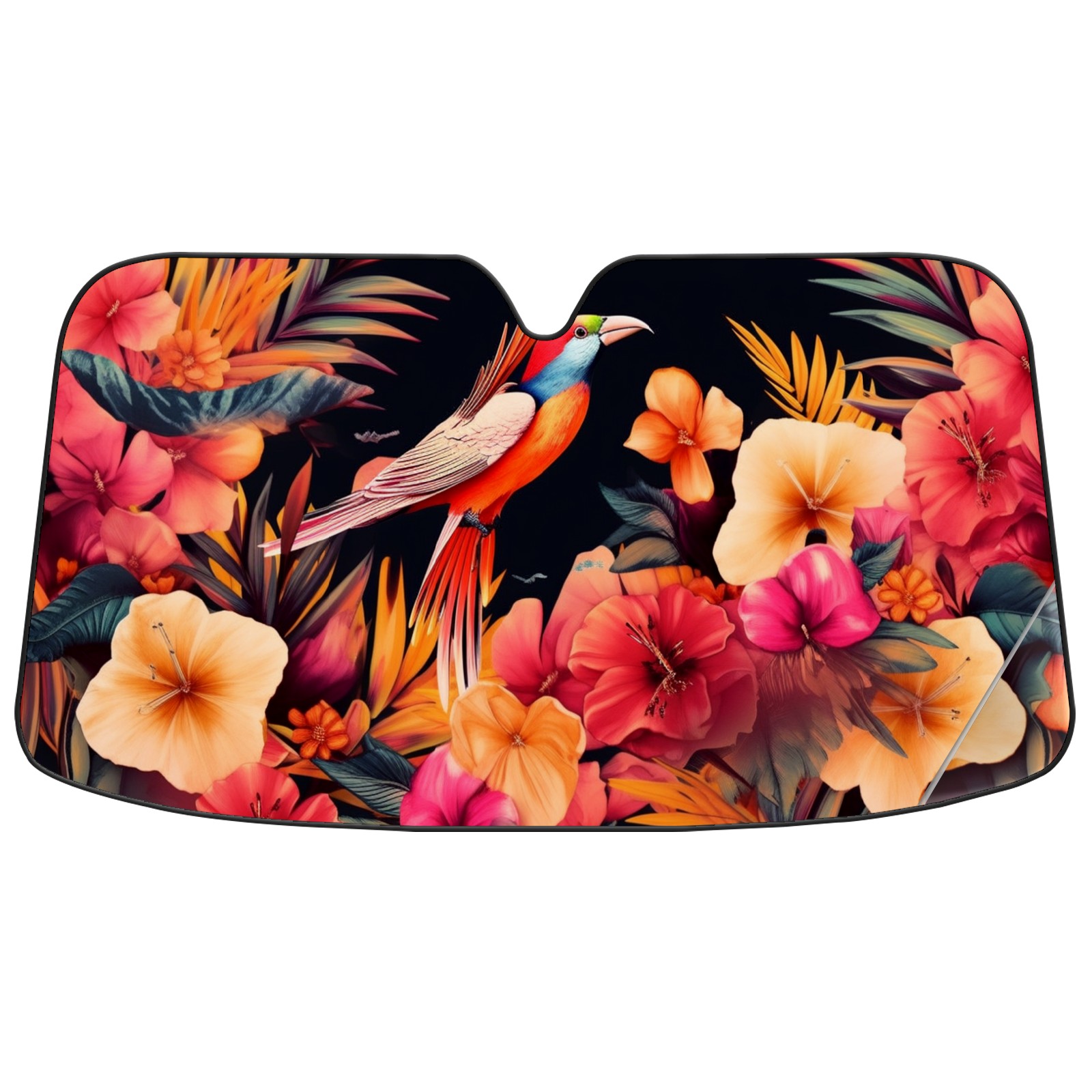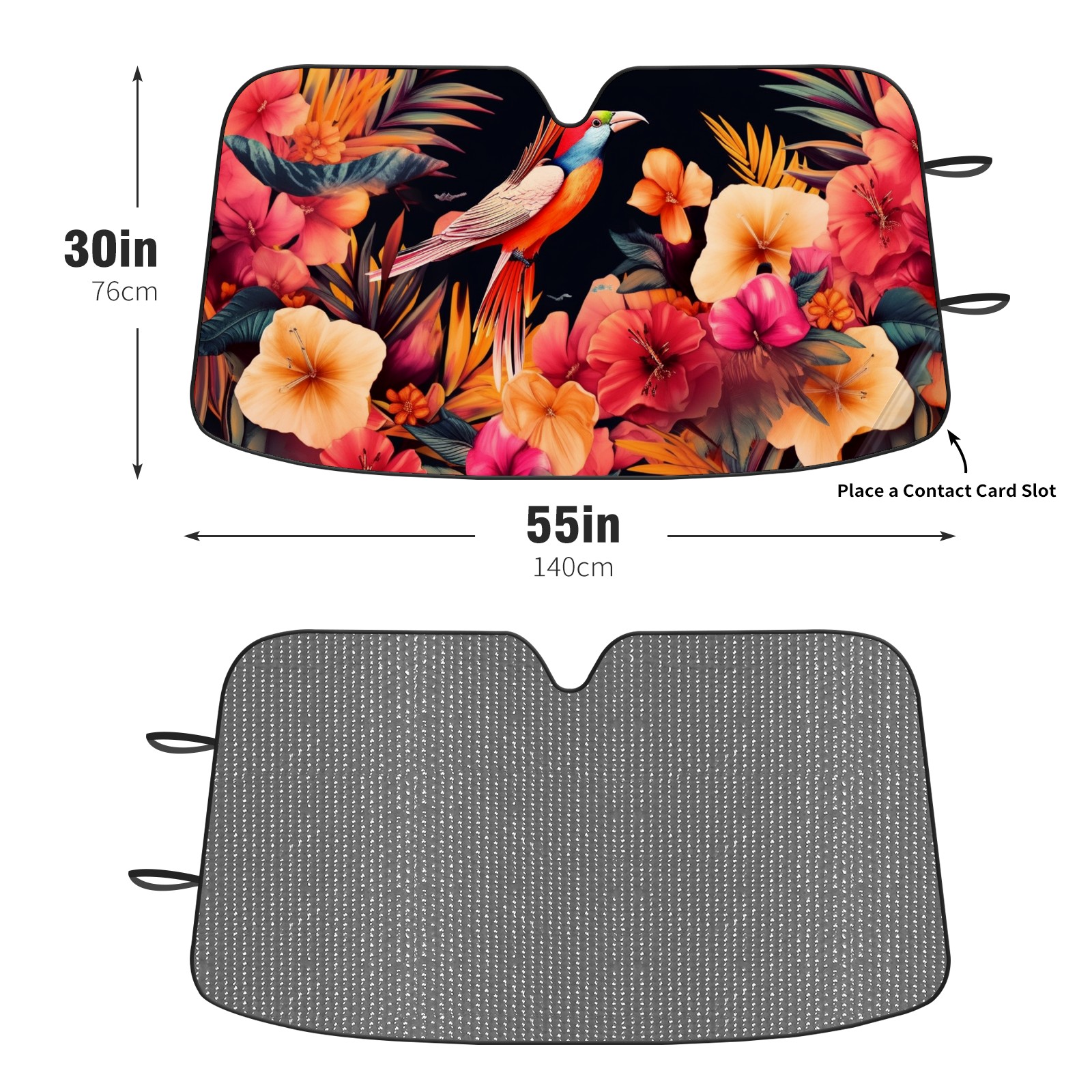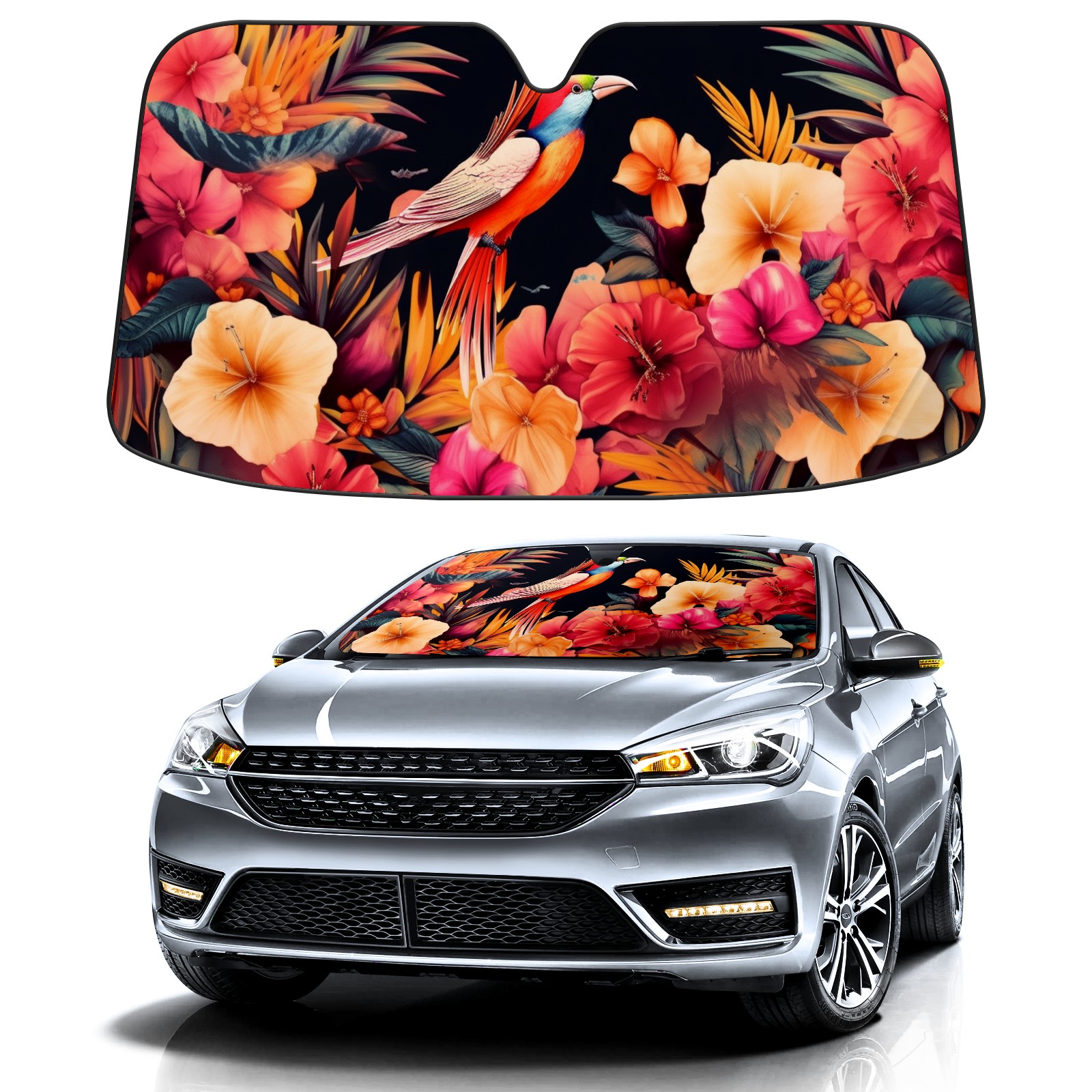 Birds And Flowers Car Sun Shade UV Protection Foldable Sunshade for Windshield Heat Insulation Portable Sun Shield for Car Interior Protection Automotive Window Protector