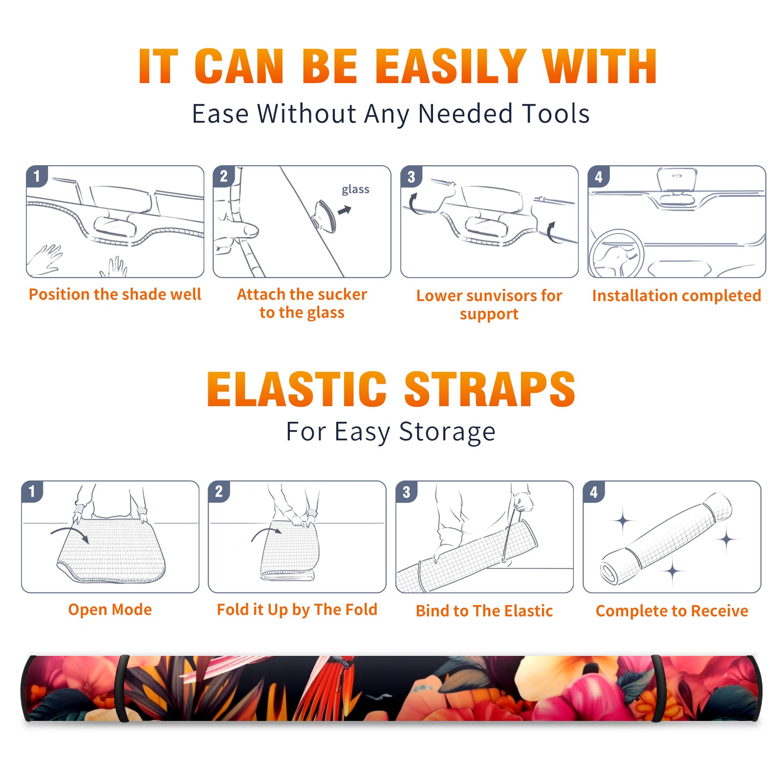 <p><b>Foldable Premium Car Windshield Sunshade is your great solution to reduce your car’s interior temperature dramatically! This is definitely a must-have item for your summer travel!</b></p><p><b>【Precision Fit, Stylish Protection】</b></p><p>55"x30" (140x76cm) universal size with 3cm flexible margins fits curved windshields of most sedans/SUVs.</p><p><b>【Blocking Uv Rays &amp; Heat Insulation】</b></p><p>Our vehicle sunshade provides effective UV, sun, and summer heat protection, preventing leather fading and plastic cracking to keep your car interior pristine.</p><p><b>【Zero-Mark Installation &amp; Space-Saving】</b></p><p>Equipped with dual scratch-free silicone suction cups + adjustable straps: Medical-grade silicone cups hold firmly yet remove cleanly. Folds to A3 size (42x30cm x &lt;2cm thick), tucks discreetly into glove compartments or door pockets.&nbsp;</p>