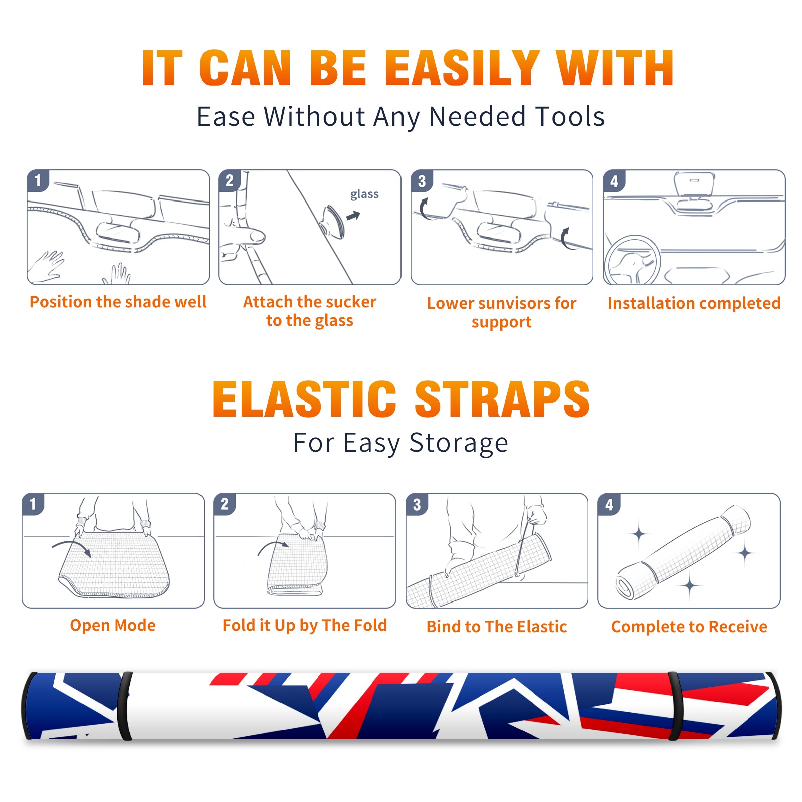 • <p><b>Foldable Premium Car Windshield Sunshade is your great solution to reduce your car’s interior temperature dramatically! This is definitely a must-have item for your summer travel!</b></p><p><b>【Precision Fit, Stylish Protection】</b></p><p>55"x30" (140x76cm) universal size with 3cm flexible margins fits curved windshields of most sedans/SUVs.</p><p><b>【Blocking Uv Rays &amp; Heat Insulation】</b></p><p>Our vehicle sunshade provides effective UV, sun, and summer heat protection, preventing leather fading and plastic cracking to keep your car interior pristine.</p><p><b>【Zero-Mark Installation &amp; Space-Saving】</b></p><p>Equipped with dual scratch-free silicone suction cups + adjustable straps: Medical-grade silicone cups hold firmly yet remove cleanly. Folds to A3 size (42x30cm x &lt;2cm thick), tucks discreetly into glove compartments or door pockets.&nbsp;</p>