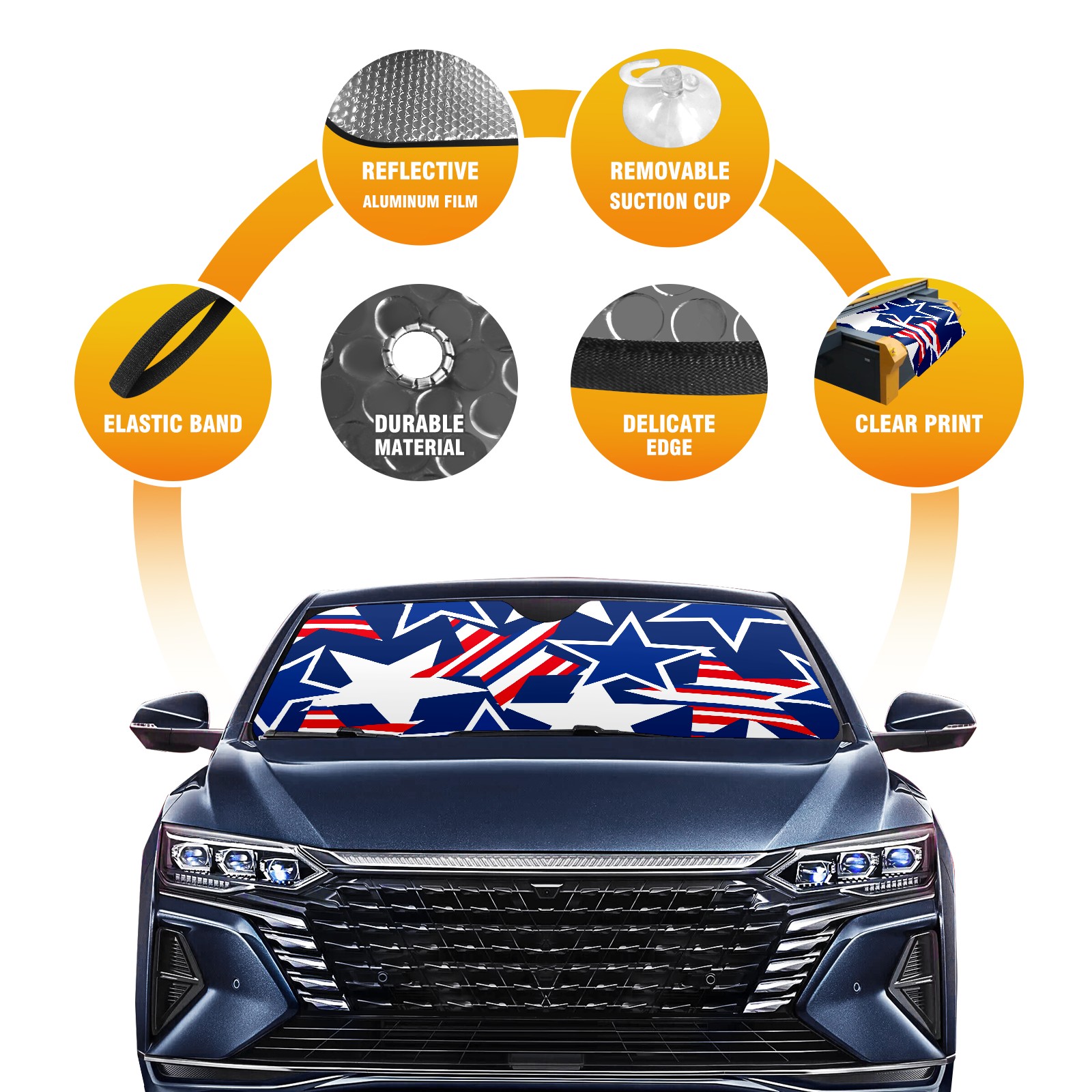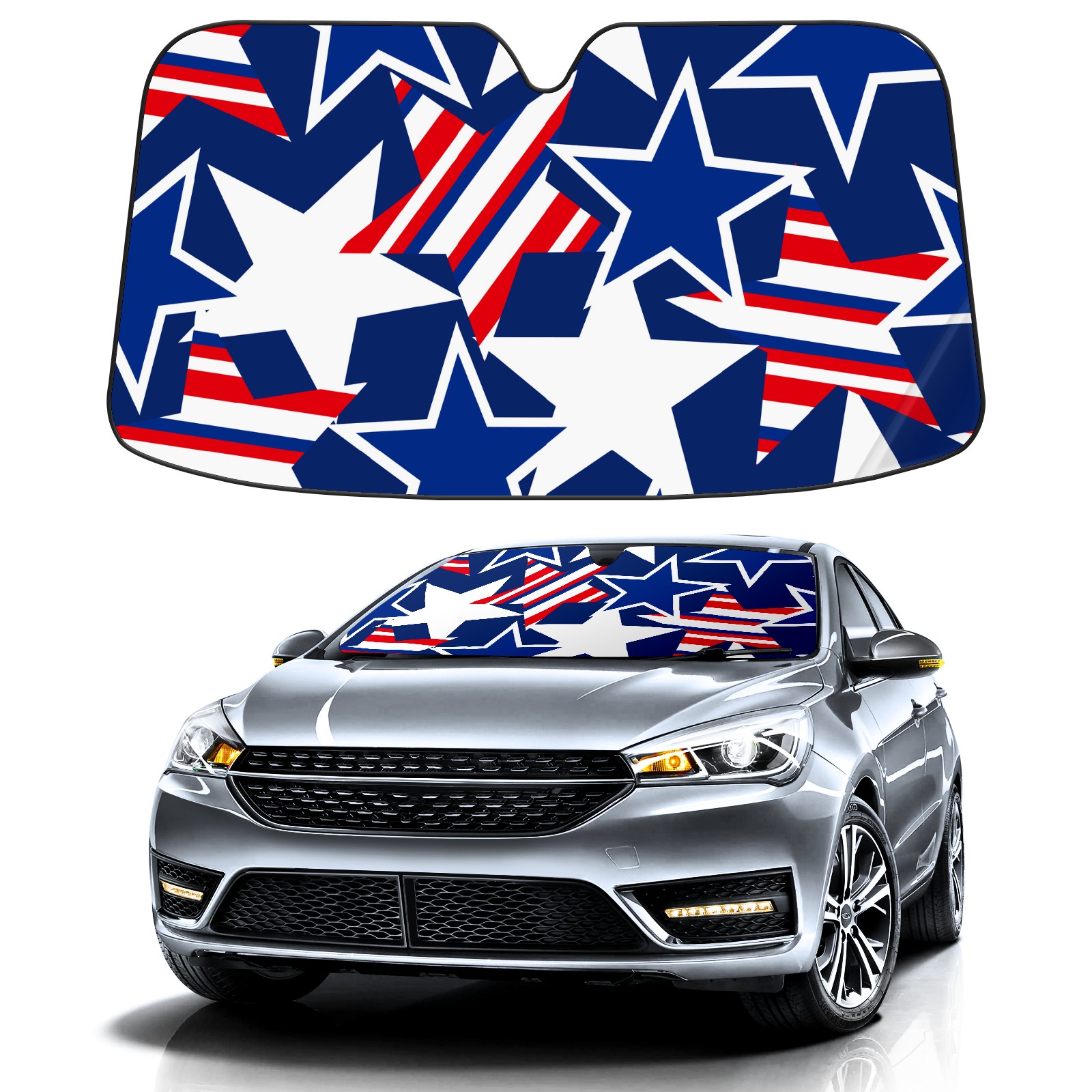 American Stars Pattern Car Sun Shade UV Protection Foldable Sunshade for Windshield Heat Insulation Portable Sun Shield for Car Interior Protection Automotive Window Protector