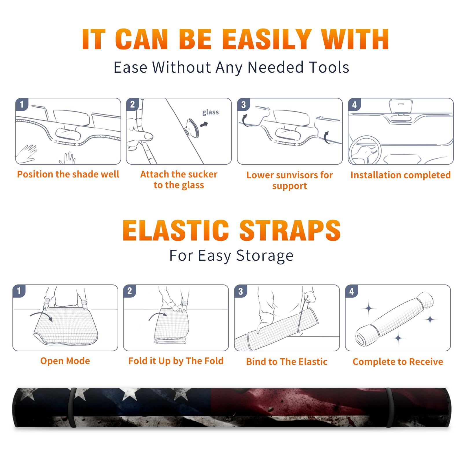 • <p><b>Foldable Premium Car Windshield Sunshade is your great solution to reduce your car’s interior temperature dramatically! This is definitely a must-have item for your summer travel!</b></p><p><b>【Precision Fit, Stylish Protection】</b></p><p>55"x30" (140x76cm) universal size with 3cm flexible margins fits curved windshields of most sedans/SUVs.</p><p><b>【Blocking Uv Rays &amp; Heat Insulation】</b></p><p>Our vehicle sunshade provides effective UV, sun, and summer heat protection, preventing leather fading and plastic cracking to keep your car interior pristine.</p><p><b>【Zero-Mark Installation &amp; Space-Saving】</b></p><p>Equipped with dual scratch-free silicone suction cups + adjustable straps: Medical-grade silicone cups hold firmly yet remove cleanly. Folds to A3 size (42x30cm x &lt;2cm thick), tucks discreetly into glove compartments or door pockets.&nbsp;</p>