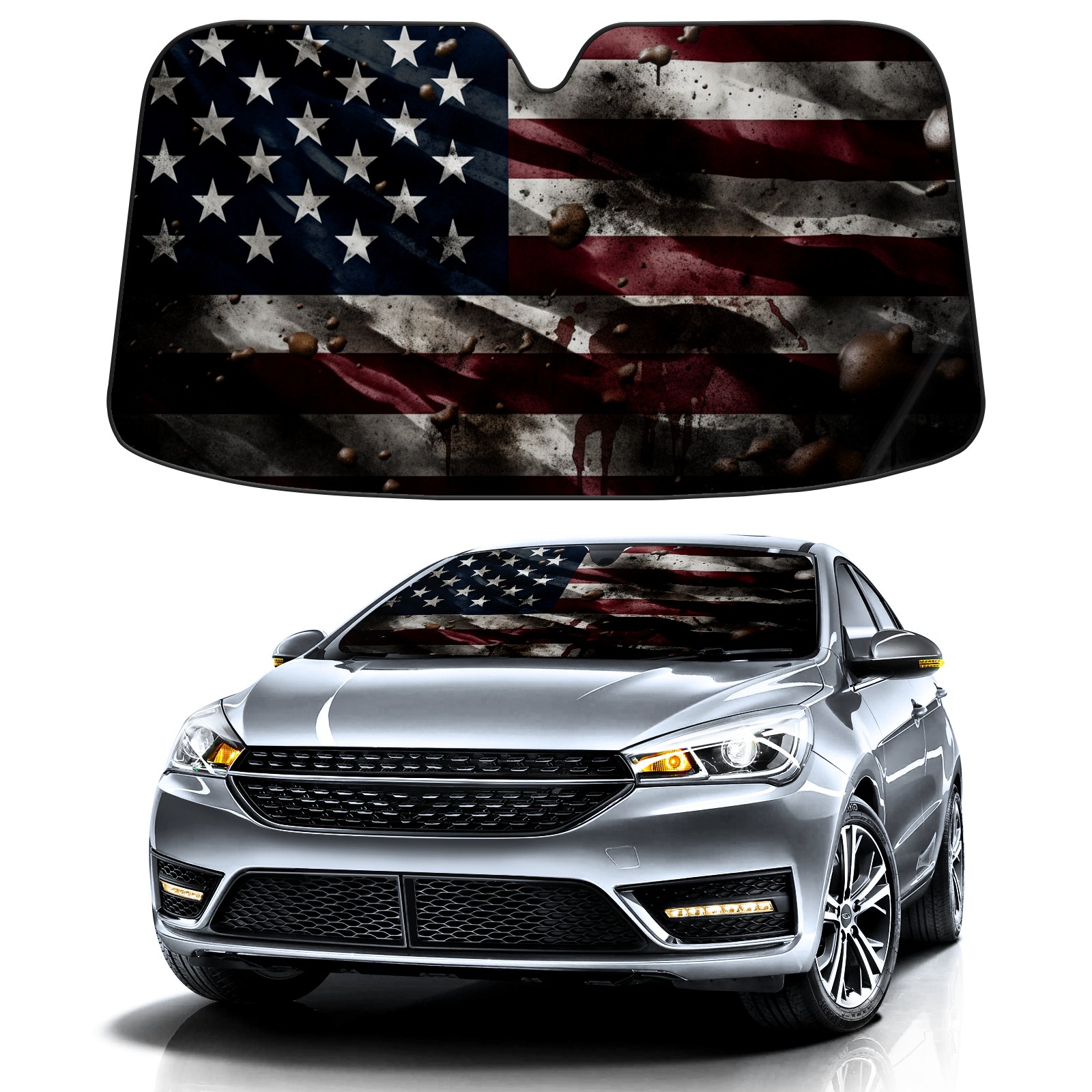 American Flag Car Sun Shade UV Protection Foldable Sunshade for Windshield Heat Insulation Portable Sun Shield for Car Interior Protection Automotive Window Protector