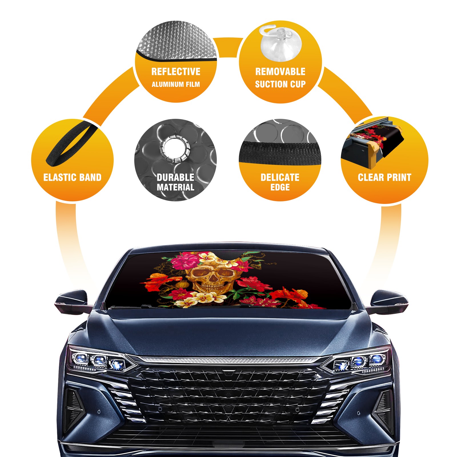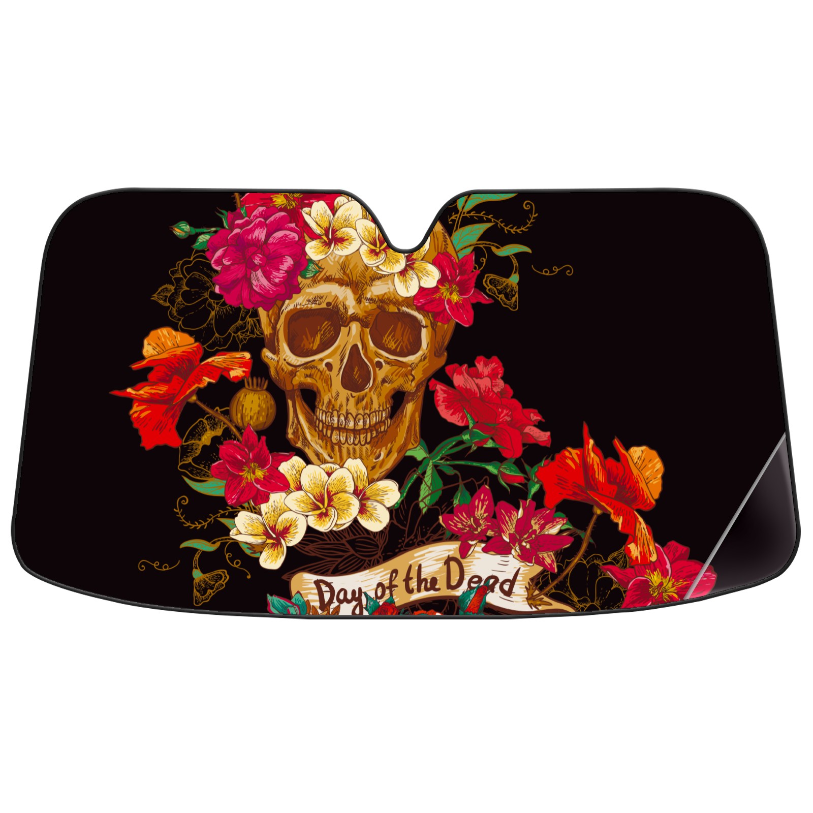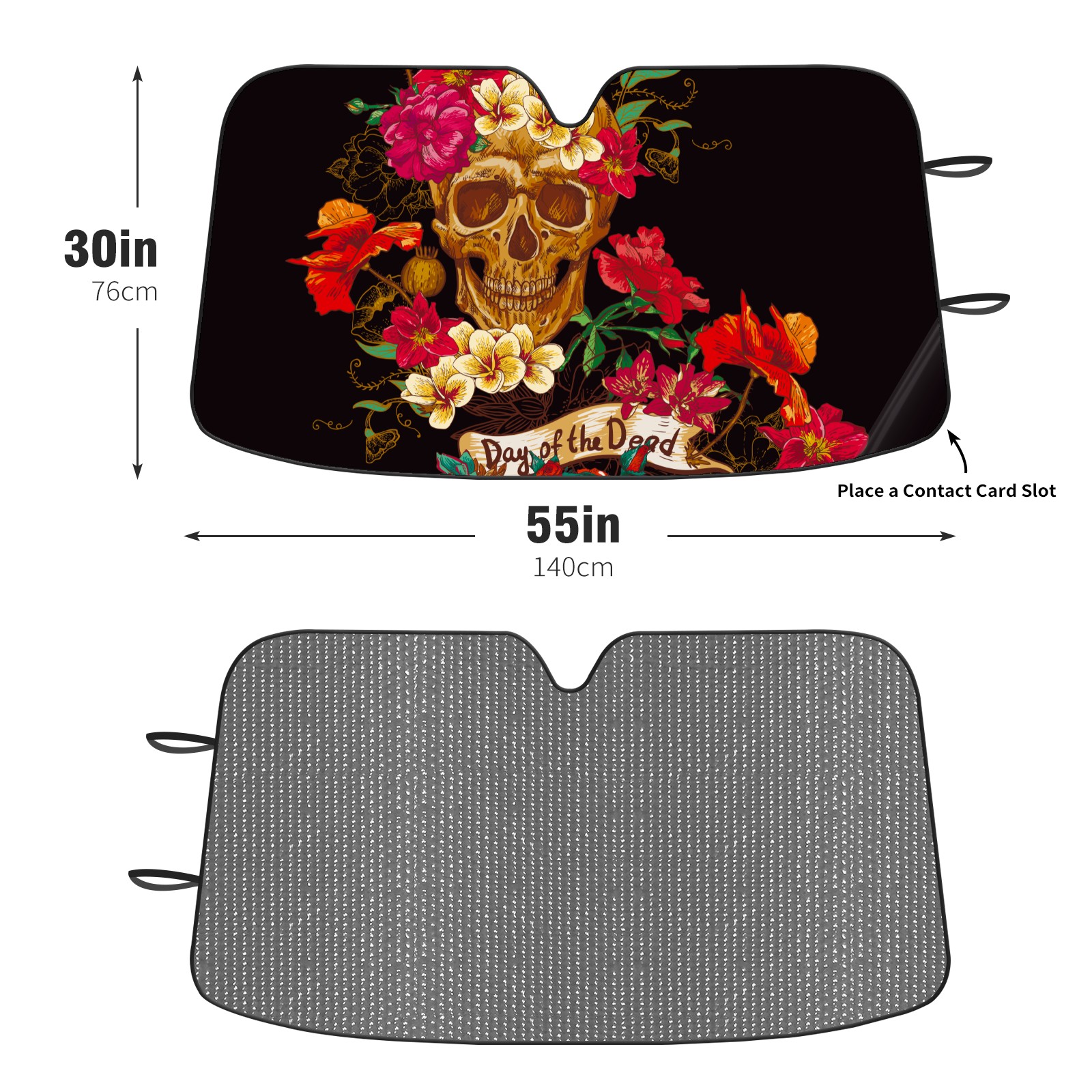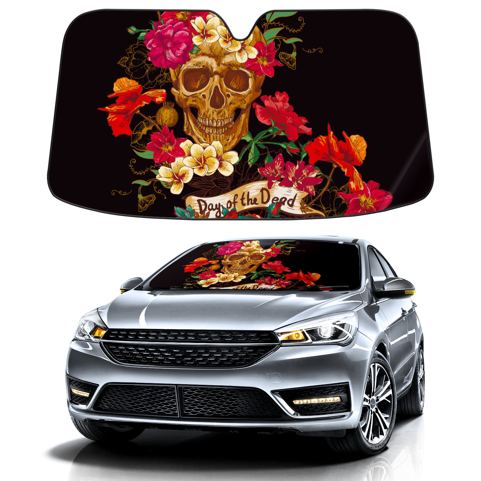 Day Of The Dead Sugar Skull Flower Car Sun Shade UV Protection Foldable Sunshade for Windshield Heat Insulation Portable Sun Shield for Car Interior Protection Automotive Window Protector