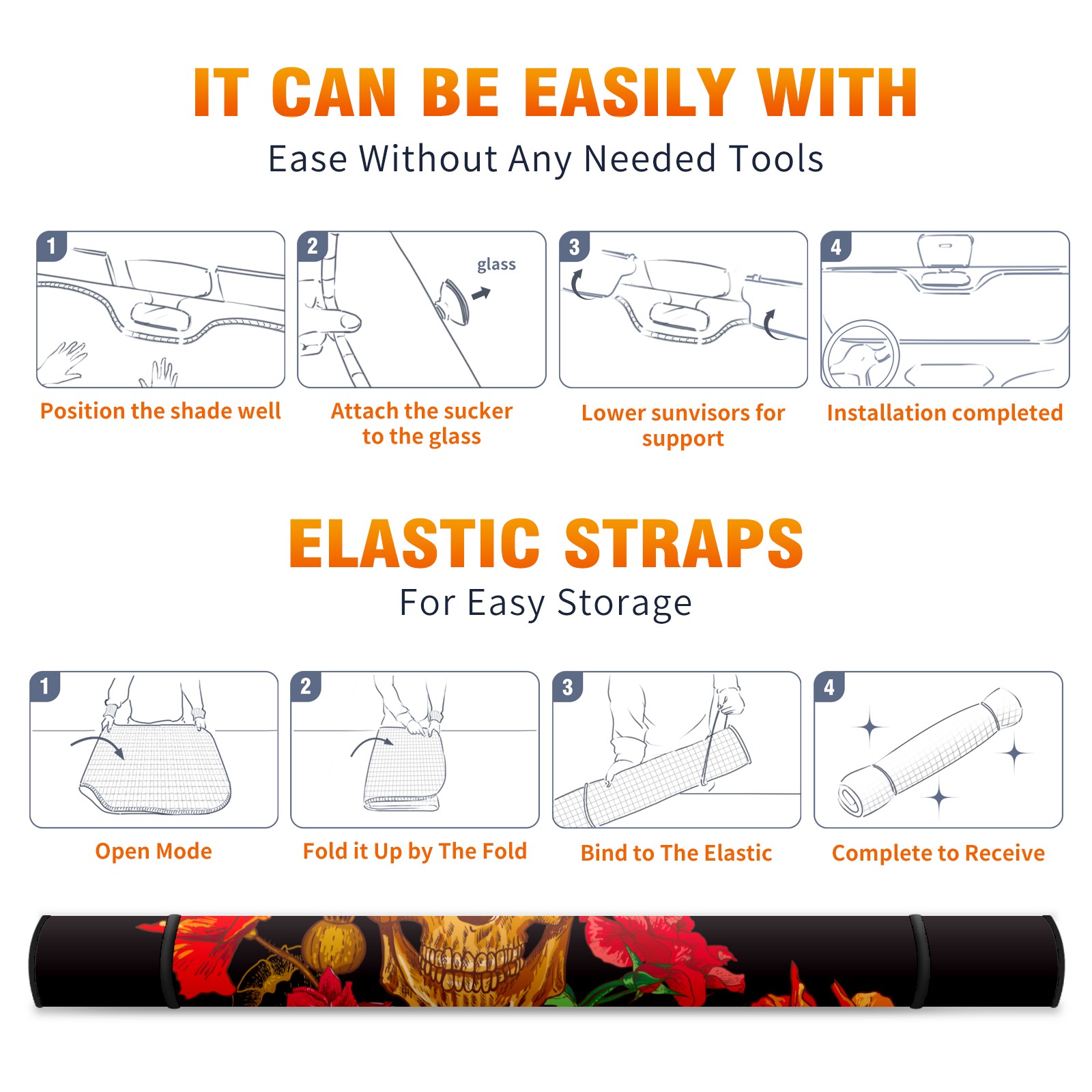 • <p><b>Foldable Premium Car Windshield Sunshade is your great solution to reduce your car’s interior temperature dramatically! This is definitely a must-have item for your summer travel!</b></p><p><b>【Precision Fit, Stylish Protection】</b></p><p>55"x30" (140x76cm) universal size with 3cm flexible margins fits curved windshields of most sedans/SUVs.</p><p><b>【Blocking Uv Rays &amp; Heat Insulation】</b></p><p>Our vehicle sunshade provides effective UV, sun, and summer heat protection, preventing leather fading and plastic cracking to keep your car interior pristine.</p><p><b>【Zero-Mark Installation &amp; Space-Saving】</b></p><p>Equipped with dual scratch-free silicone suction cups + adjustable straps: Medical-grade silicone cups hold firmly yet remove cleanly. Folds to A3 size (42x30cm x &lt;2cm thick), tucks discreetly into glove compartments or door pockets.&nbsp;</p>