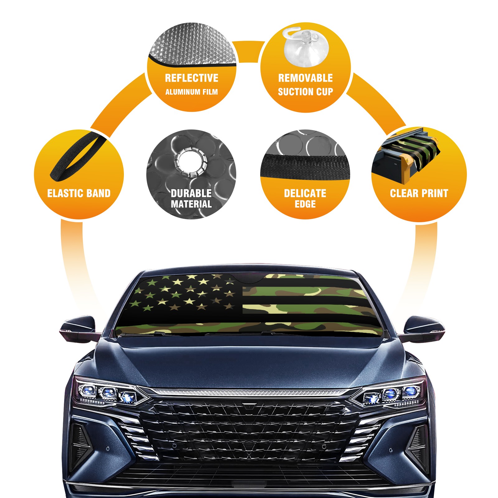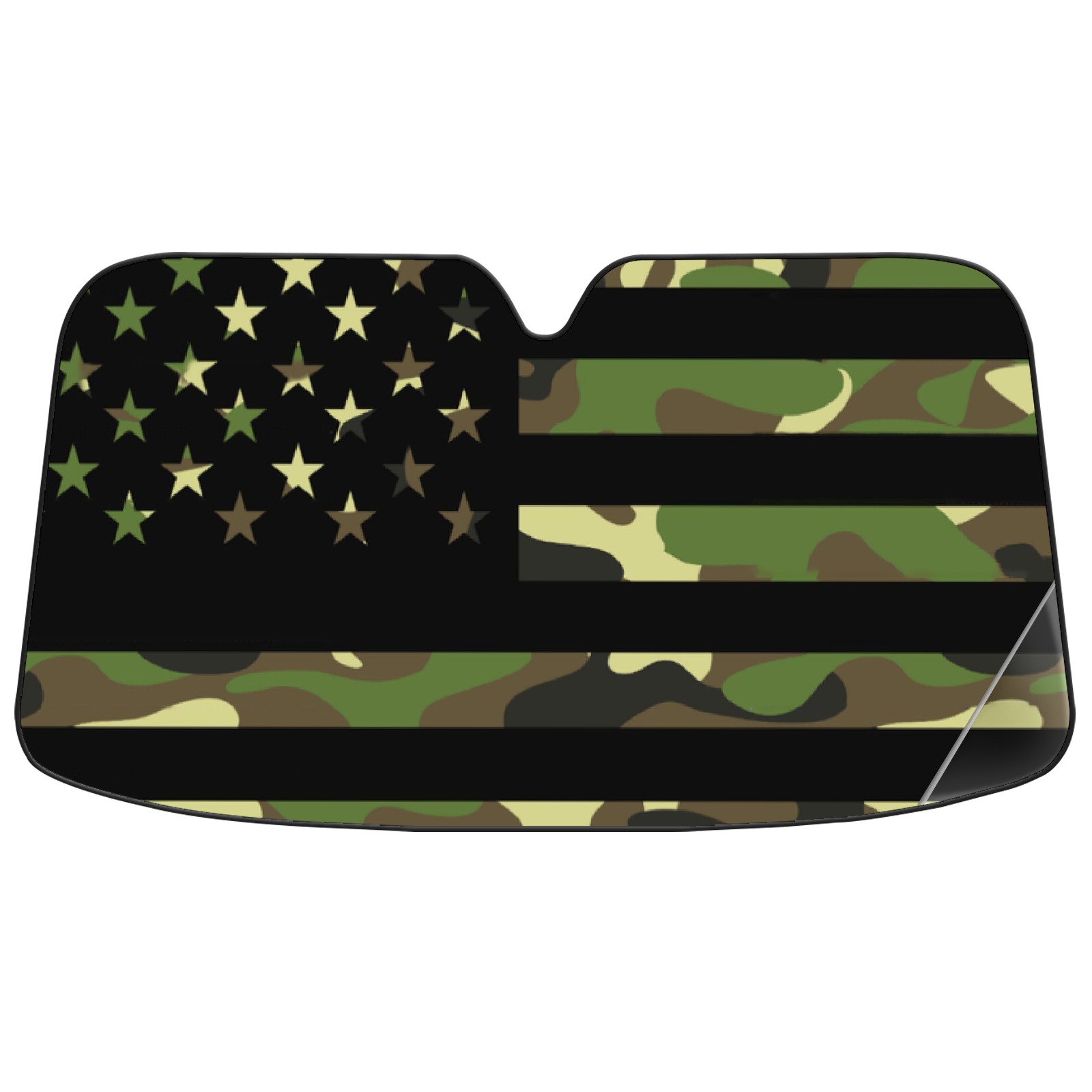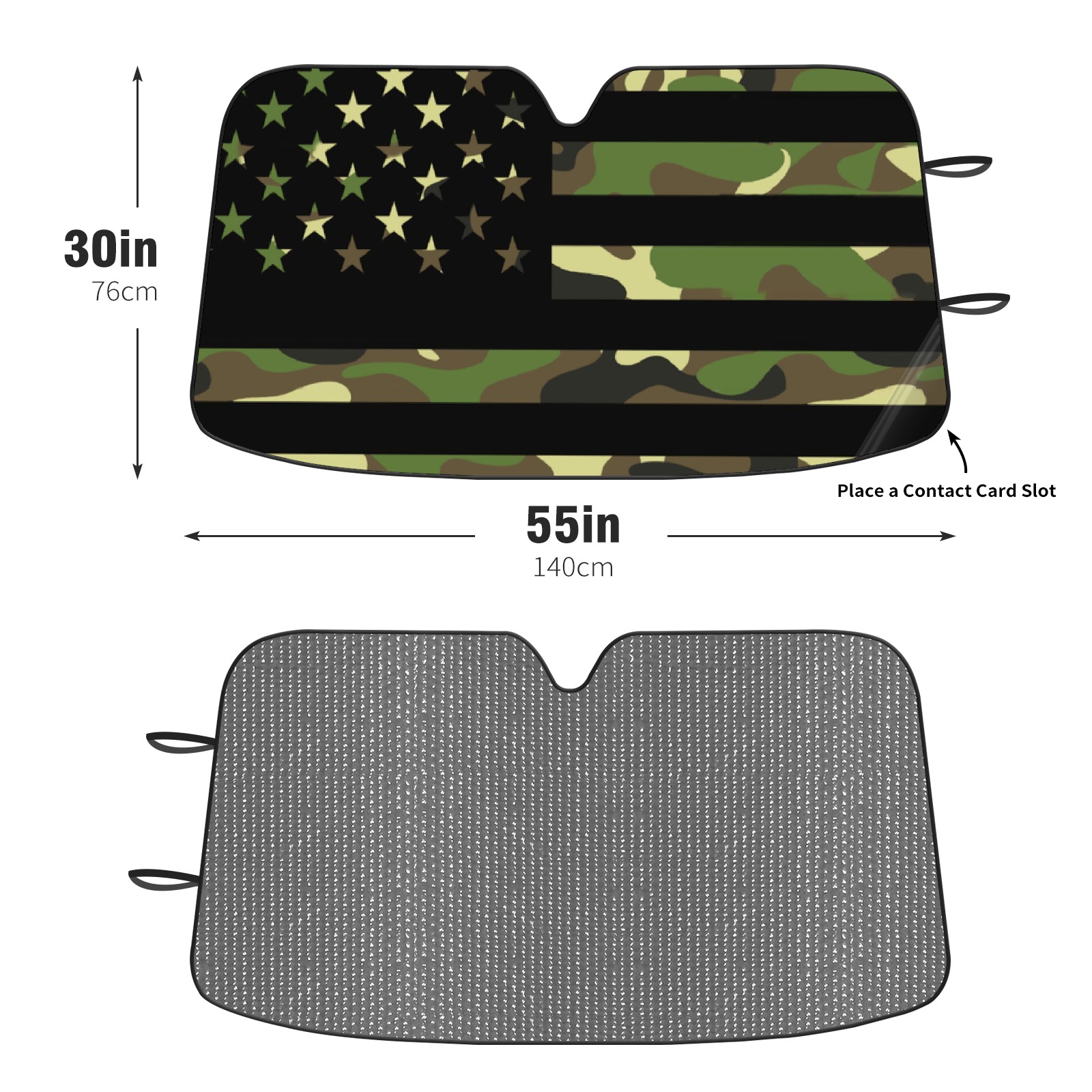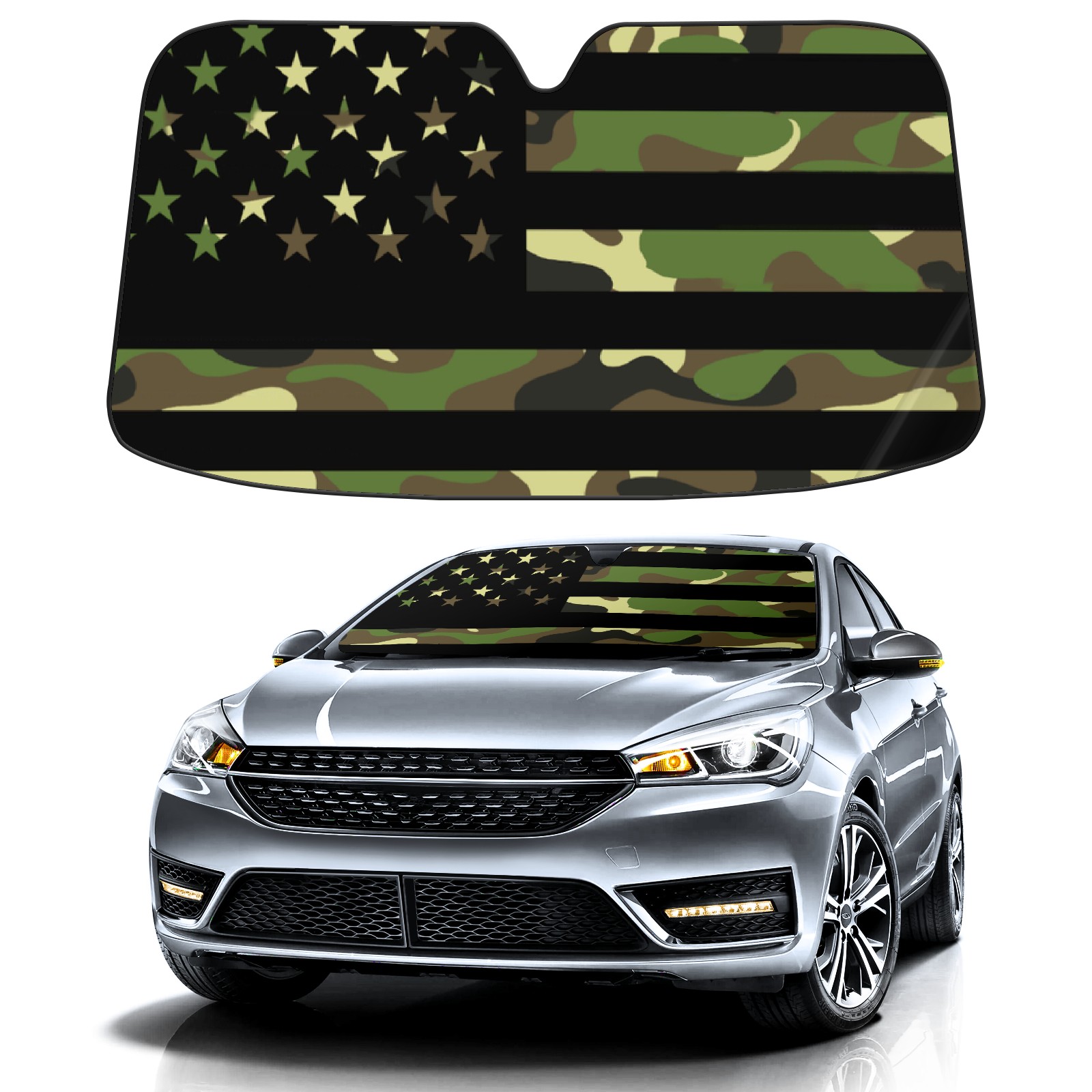 Rustic Green Camo American Flag Car Sun Shade UV Protection Foldable Sunshade for Windshield Heat Insulation Portable Sun Shield for Car Interior Protection Automotive Window Protector