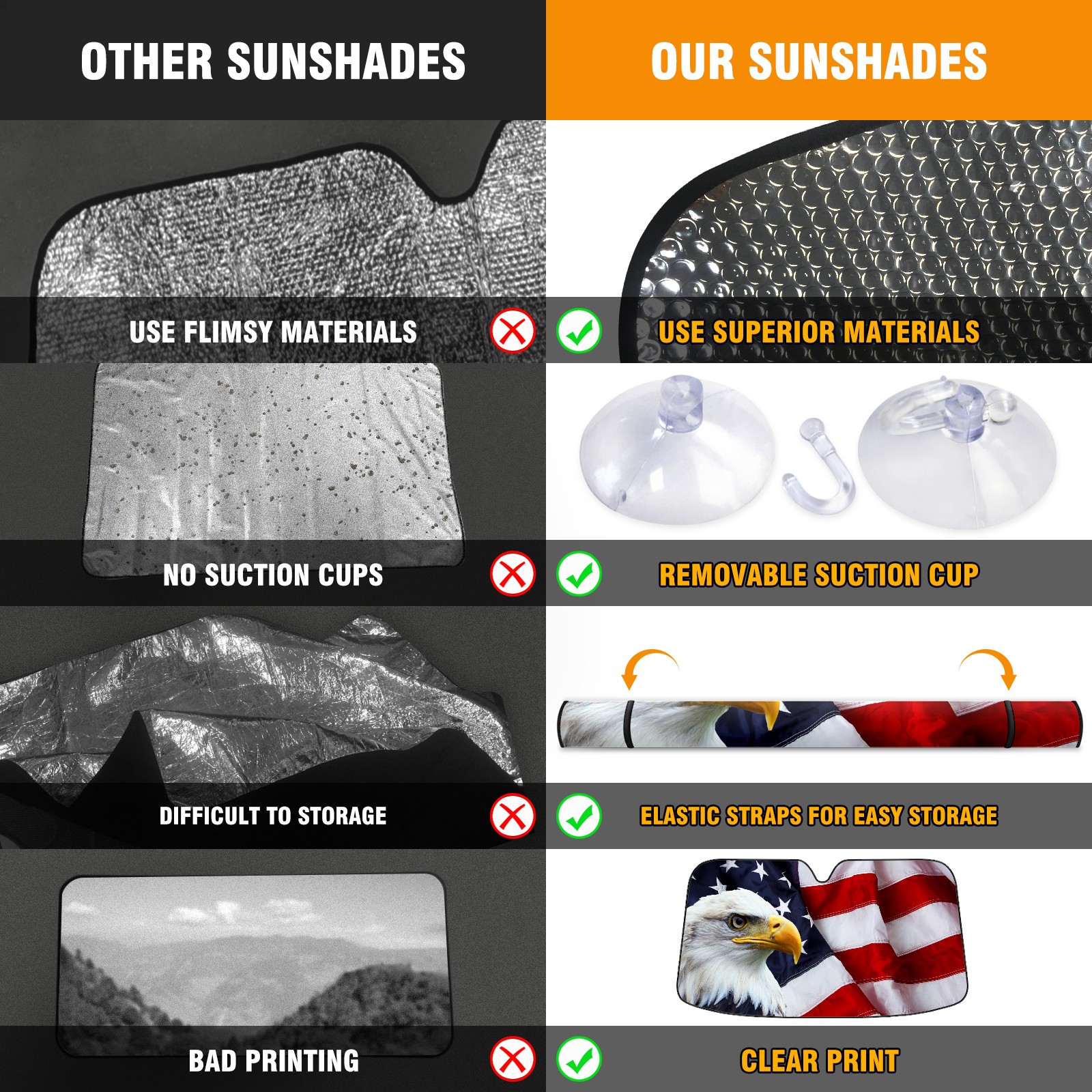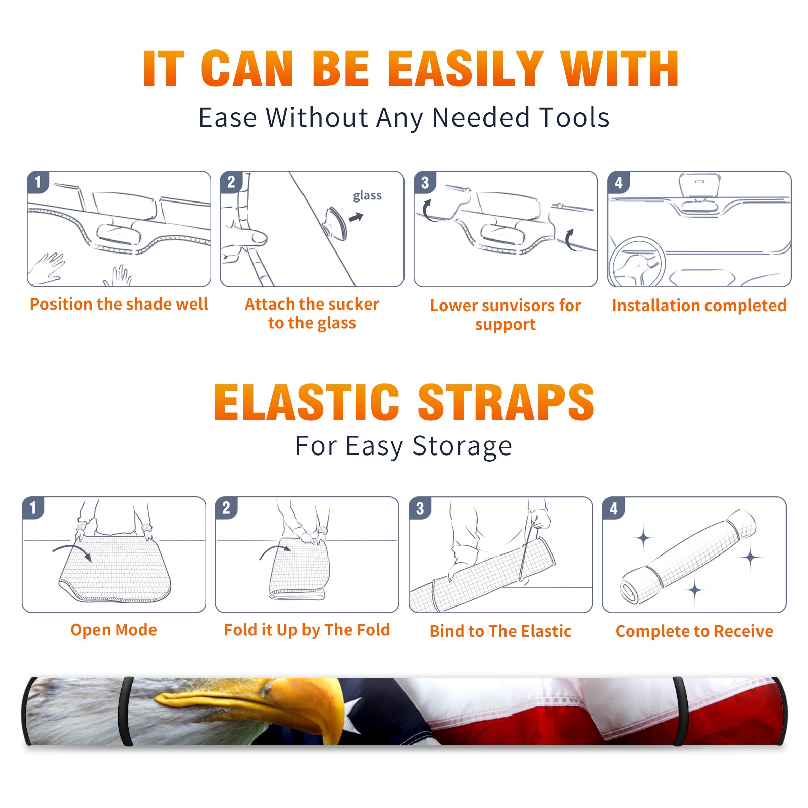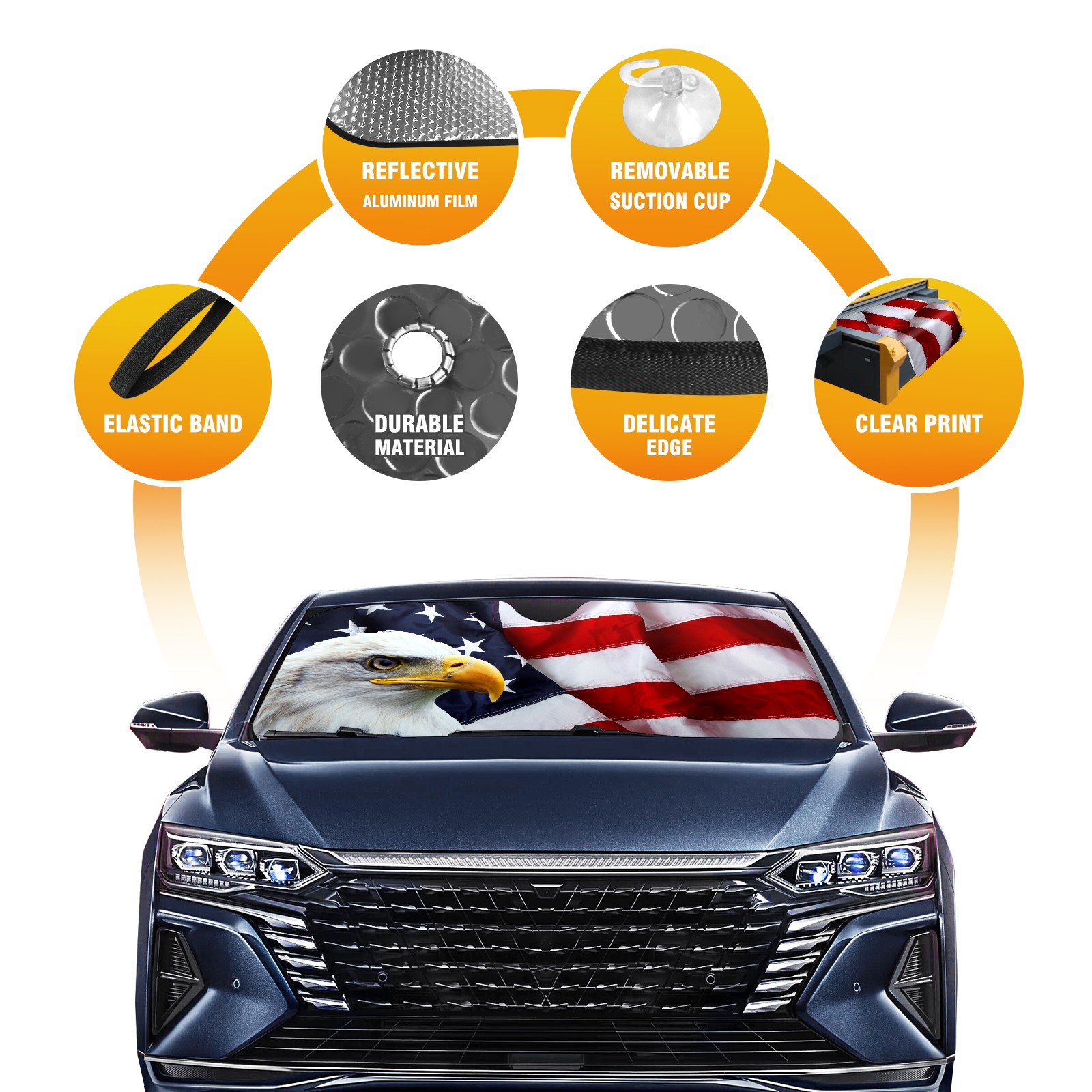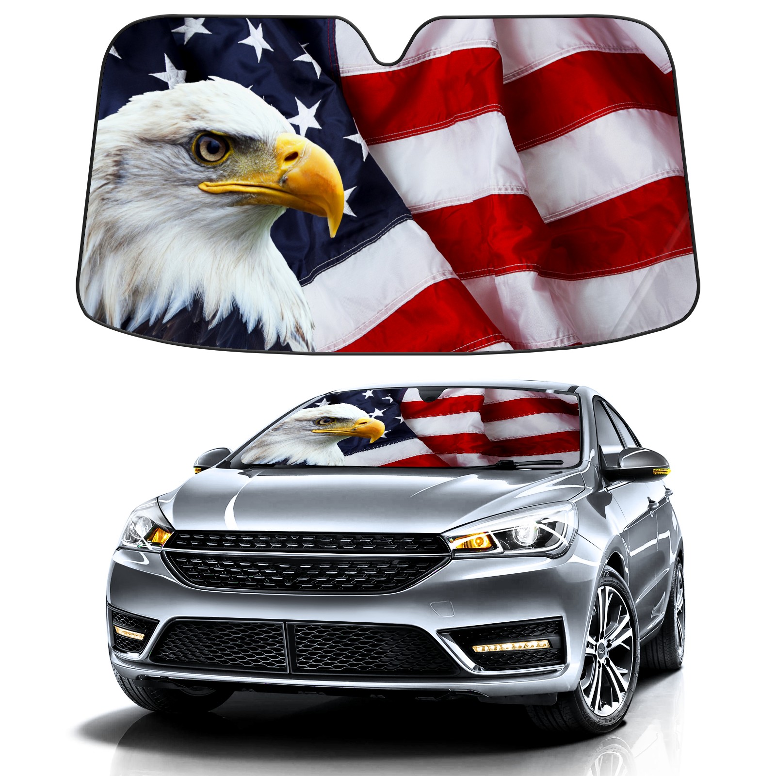 Independence USA American Flag Bald Eagle Car Sun Shade UV Protection Foldable Sunshade for Windshield Heat Insulation Portable Sun Shield for Car Interior Protection Automotive Window Protector