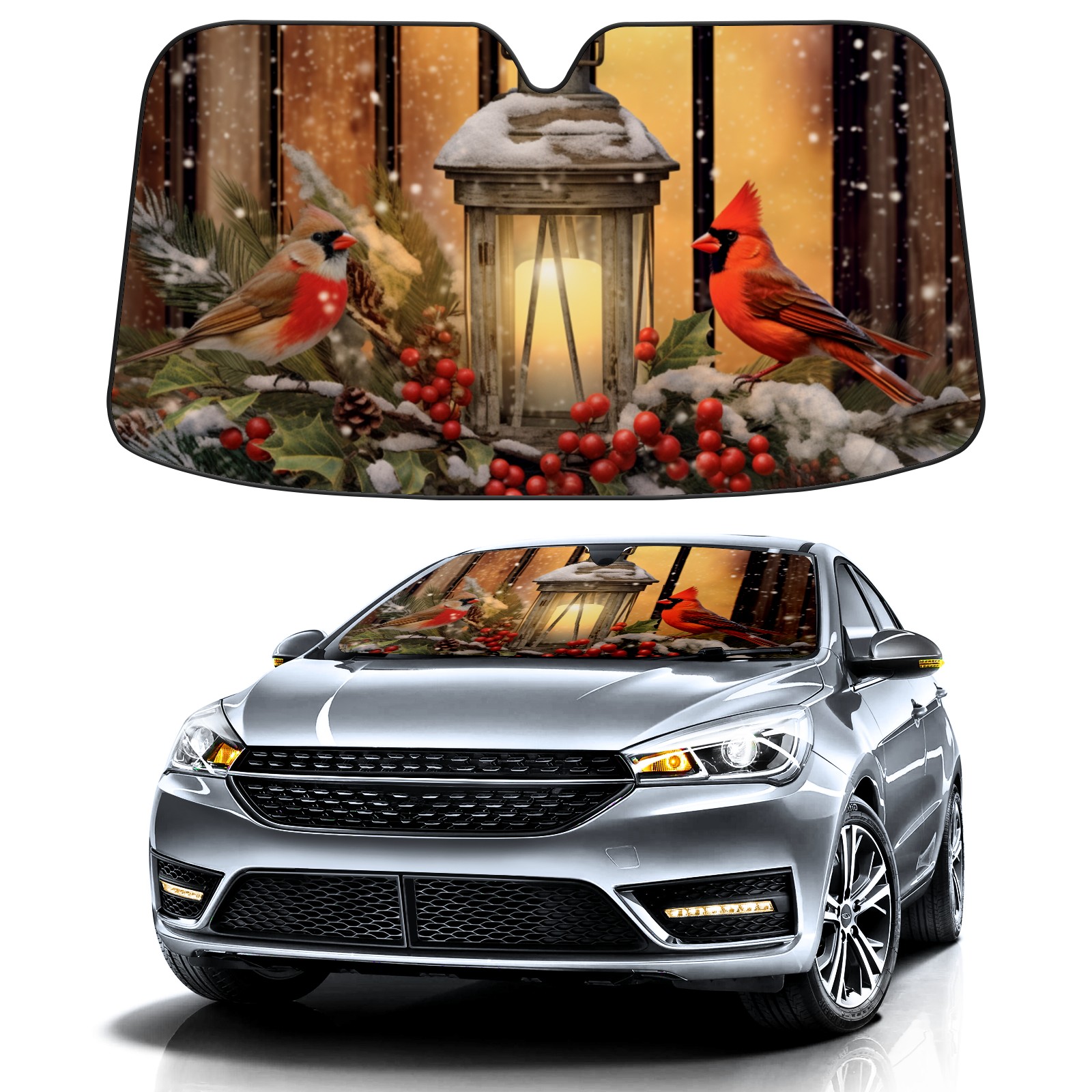 Red Cardinals Car Sun Shade UV Protection Foldable Sunshade for Windshield Heat Insulation Portable Sun Shield for Car Interior Protection Automotive Window Protector