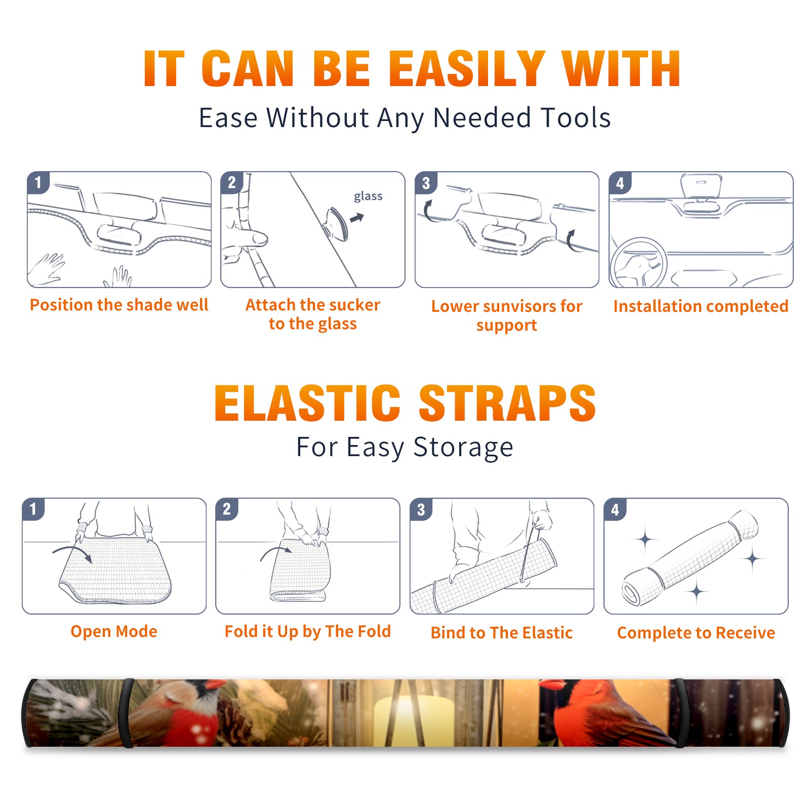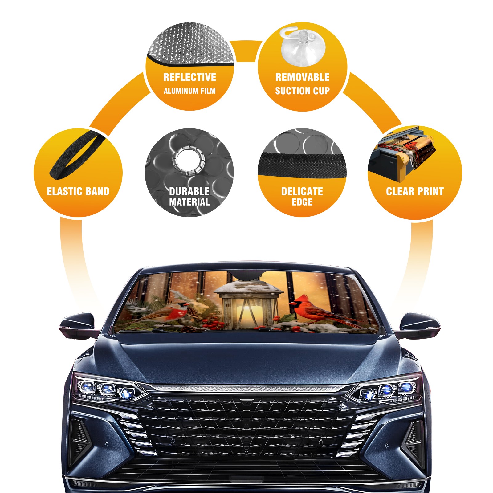 <p><b>Foldable Premium Car Windshield Sunshade is your great solution to reduce your car’s interior temperature dramatically! This is definitely a must-have item for your summer travel!</b></p><p><b>【Precision Fit, Stylish Protection】</b></p><p>55"x30" (140x76cm) universal size with 3cm flexible margins fits curved windshields of most sedans/SUVs.</p><p><b>【Blocking Uv Rays &amp; Heat Insulation】</b></p><p>Our vehicle sunshade provides effective UV, sun, and summer heat protection, preventing leather fading and plastic cracking to keep your car interior pristine.</p><p><b>【Zero-Mark Installation &amp; Space-Saving】</b></p><p>Equipped with dual scratch-free silicone suction cups + adjustable straps: Medical-grade silicone cups hold firmly yet remove cleanly. Folds to A3 size (42x30cm x &lt;2cm thick), tucks discreetly into glove compartments or door pockets.&nbsp;</p>