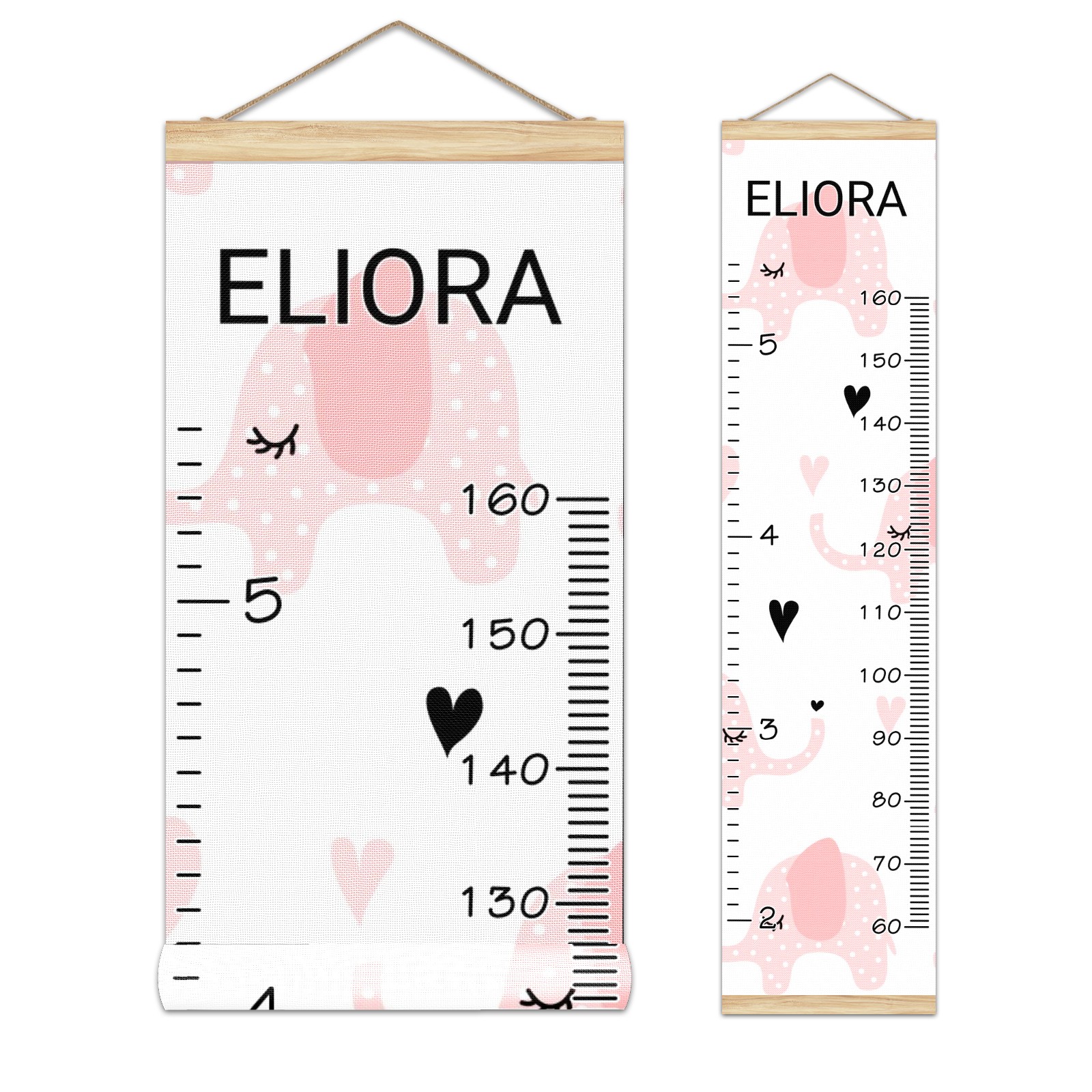 Personalized Kids Name Growth Chart Ruler for Wall Wood Frame Canvas Height Measure Chart 13.4x56 in Hanging Growth Chart Pink Elephant4.7 Boys Girls Room Decor