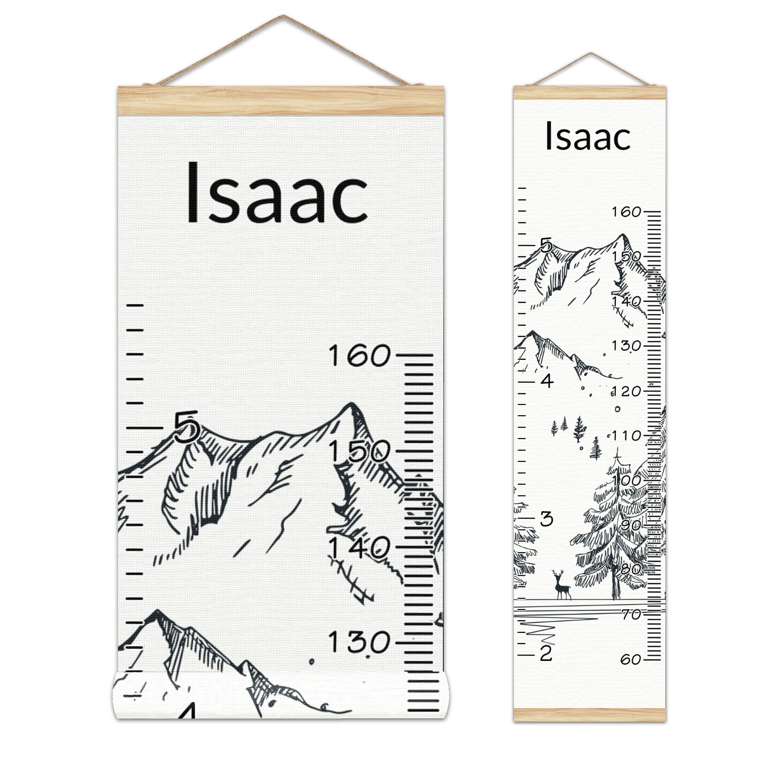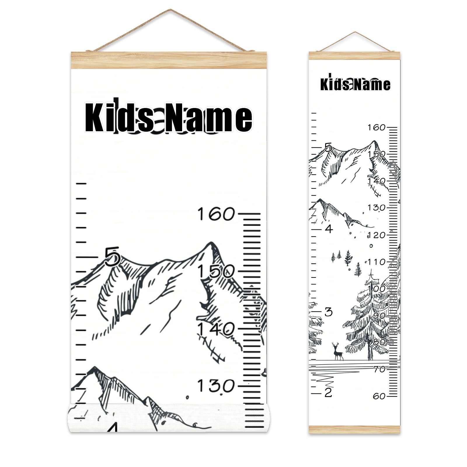 Personalized Kids Name Growth Chart Ruler for Wall Wood Frame Canvas Height Measure Chart 13.4x56 in Hanging Growth Chart Winter Mountain4.7-1 Boys Girls Room Decor
