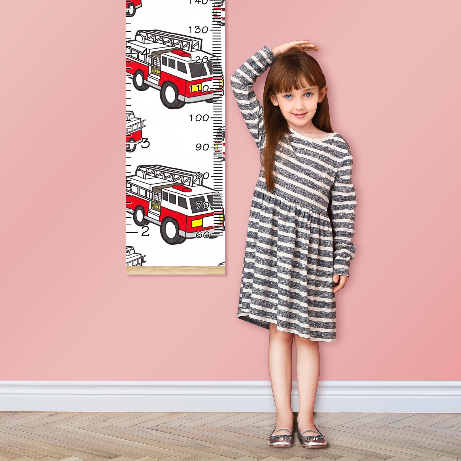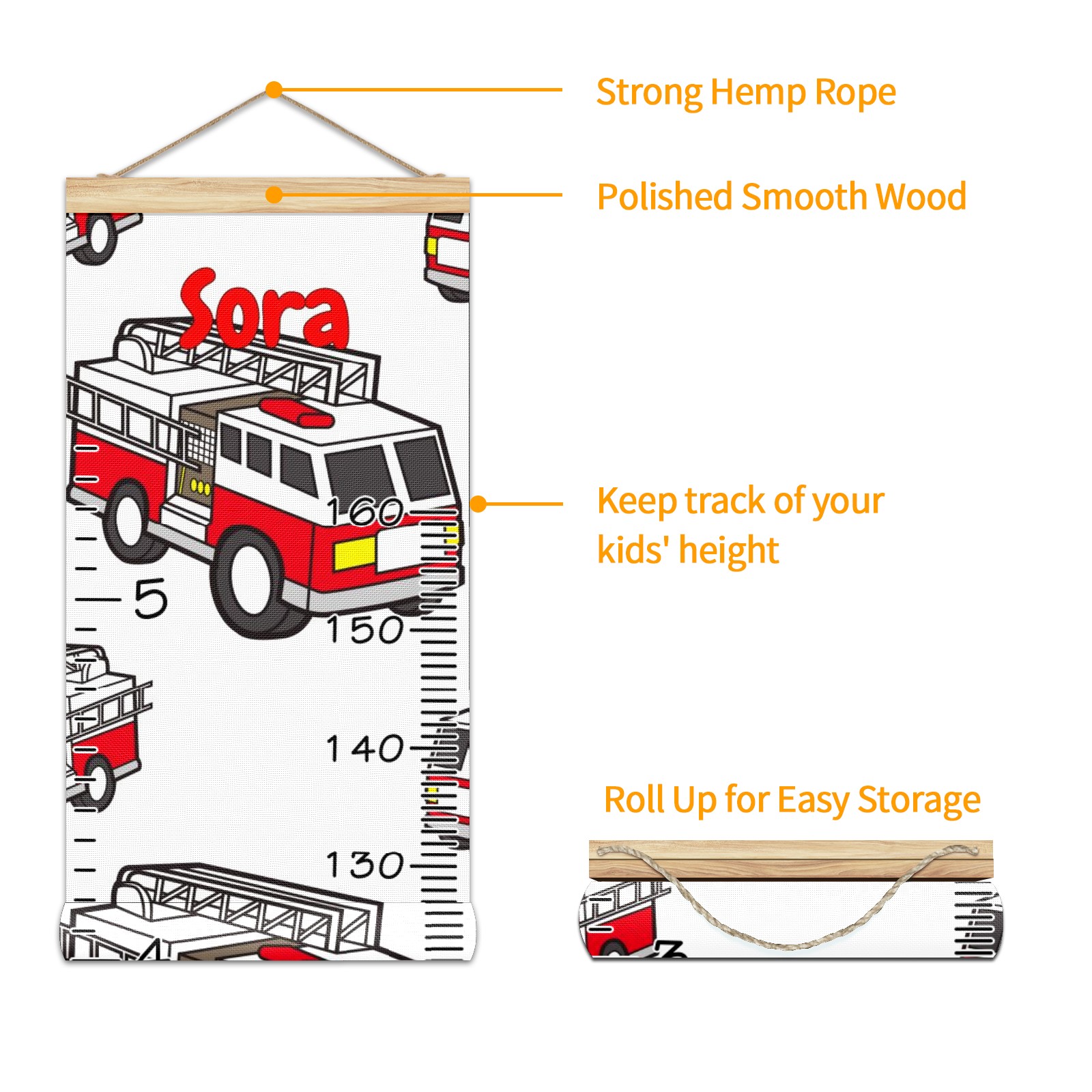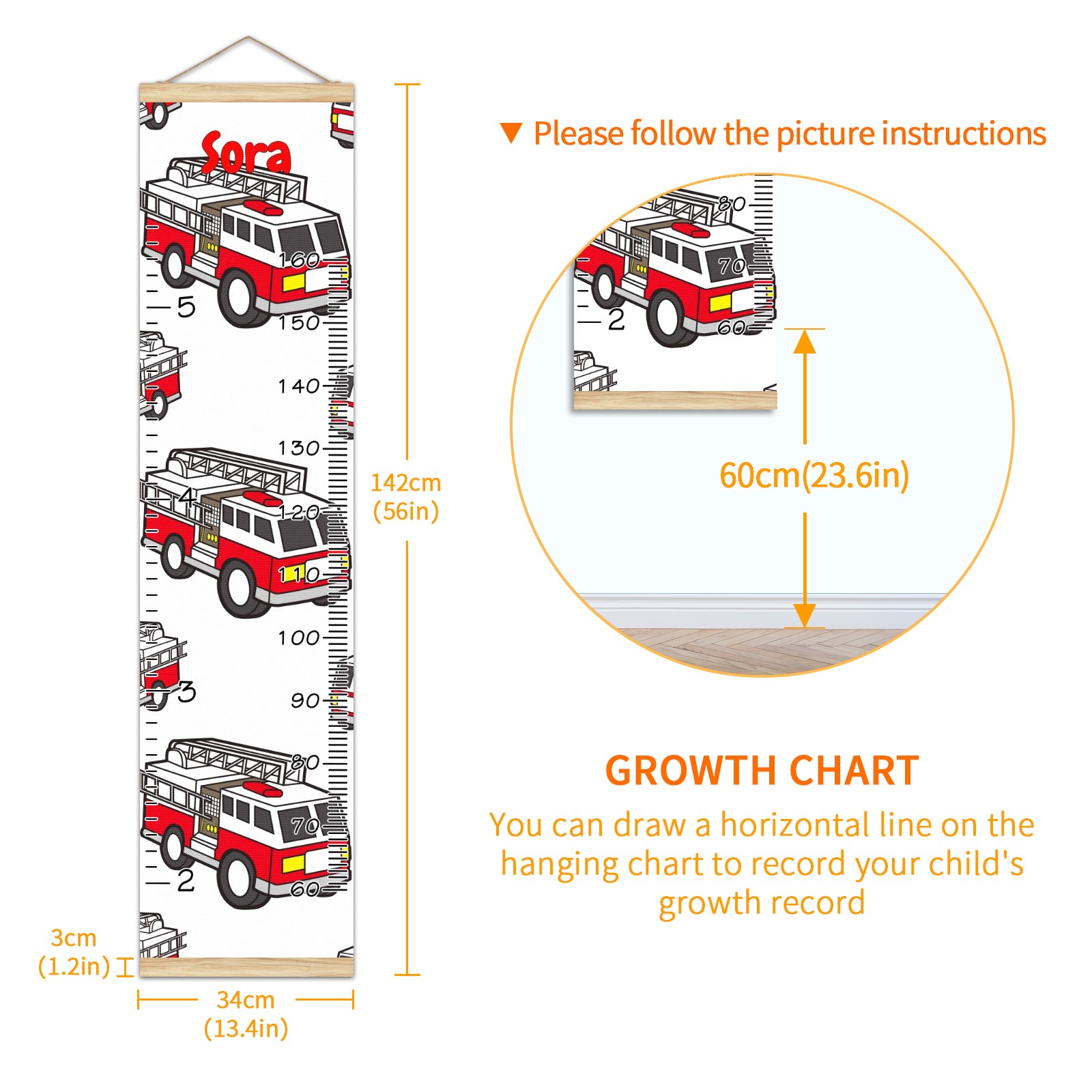 Personalized Kids Name Growth Chart Ruler for Wall Wood Frame Canvas Height Measure Chart 13.4x56 in Hanging Growth Chart Fire Truck4.7 Boys Girls Room Decor