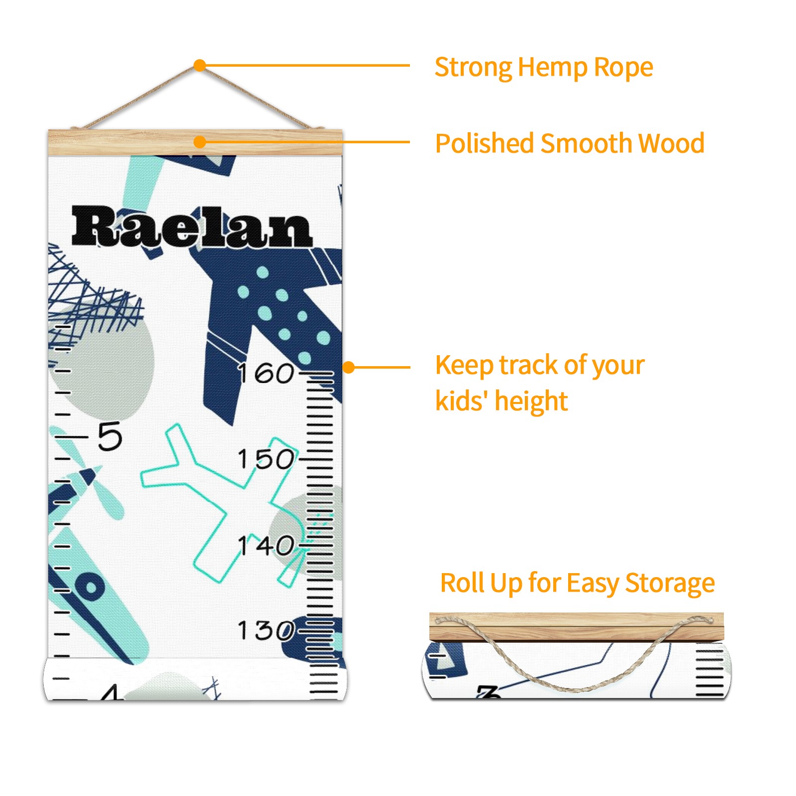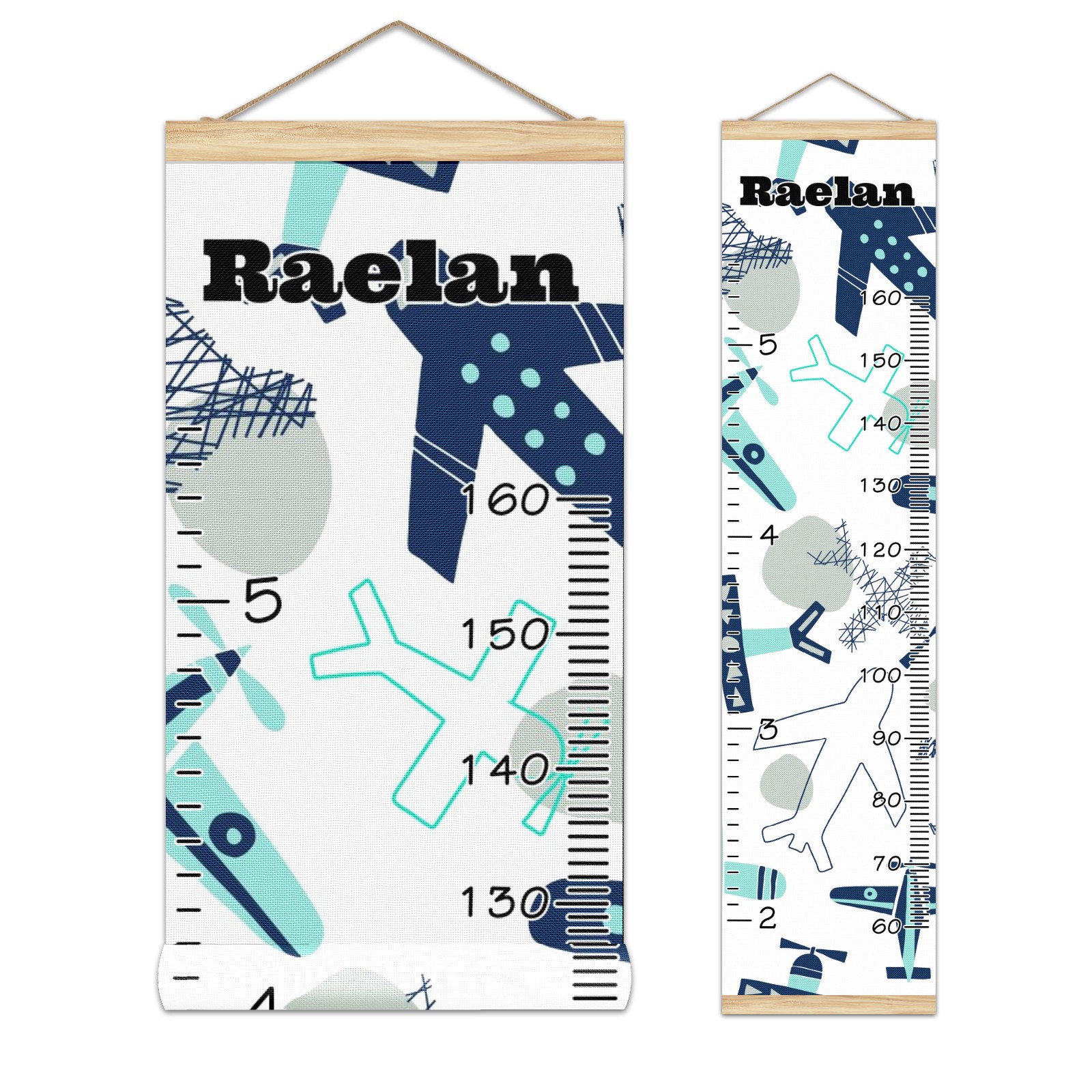Personalized Kids Name Growth Chart Ruler for Wall Wood Frame Canvas Height Measure Chart 13.4x56 in Hanging Growth Chart Airplane Collection4.7 Boys Girls Room Decor