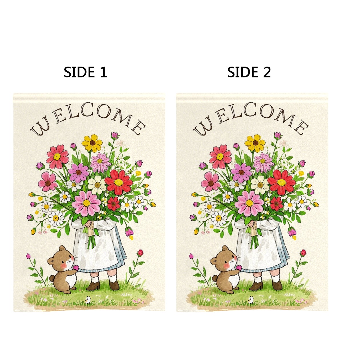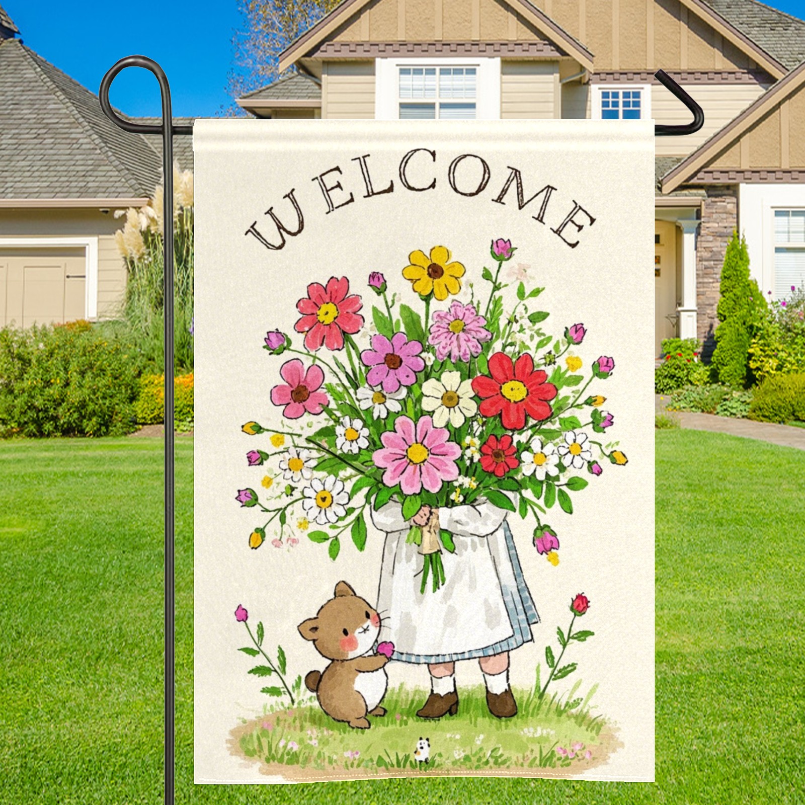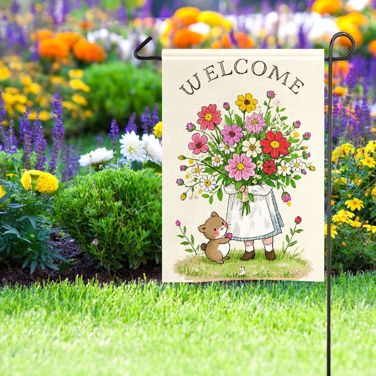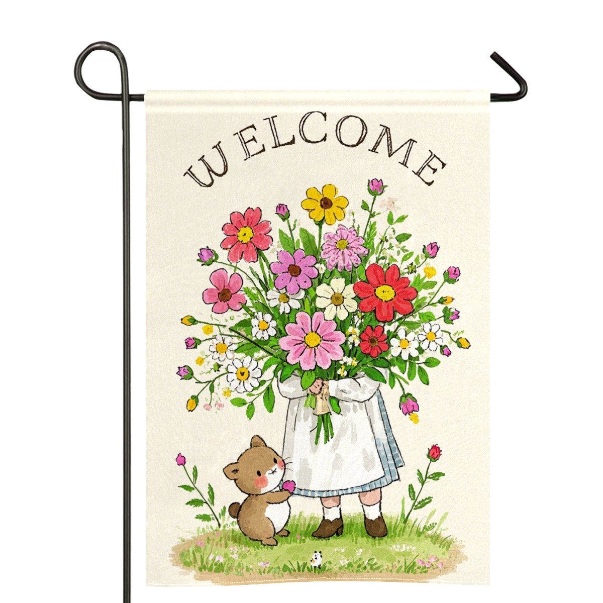 Cute Animal Bouquet Waterproof Garden Flag for Outdoor Yard, Lawn, Porch Decor - All-Season Holiday Party/Patio Landscape Decoration (12x18 Inch)