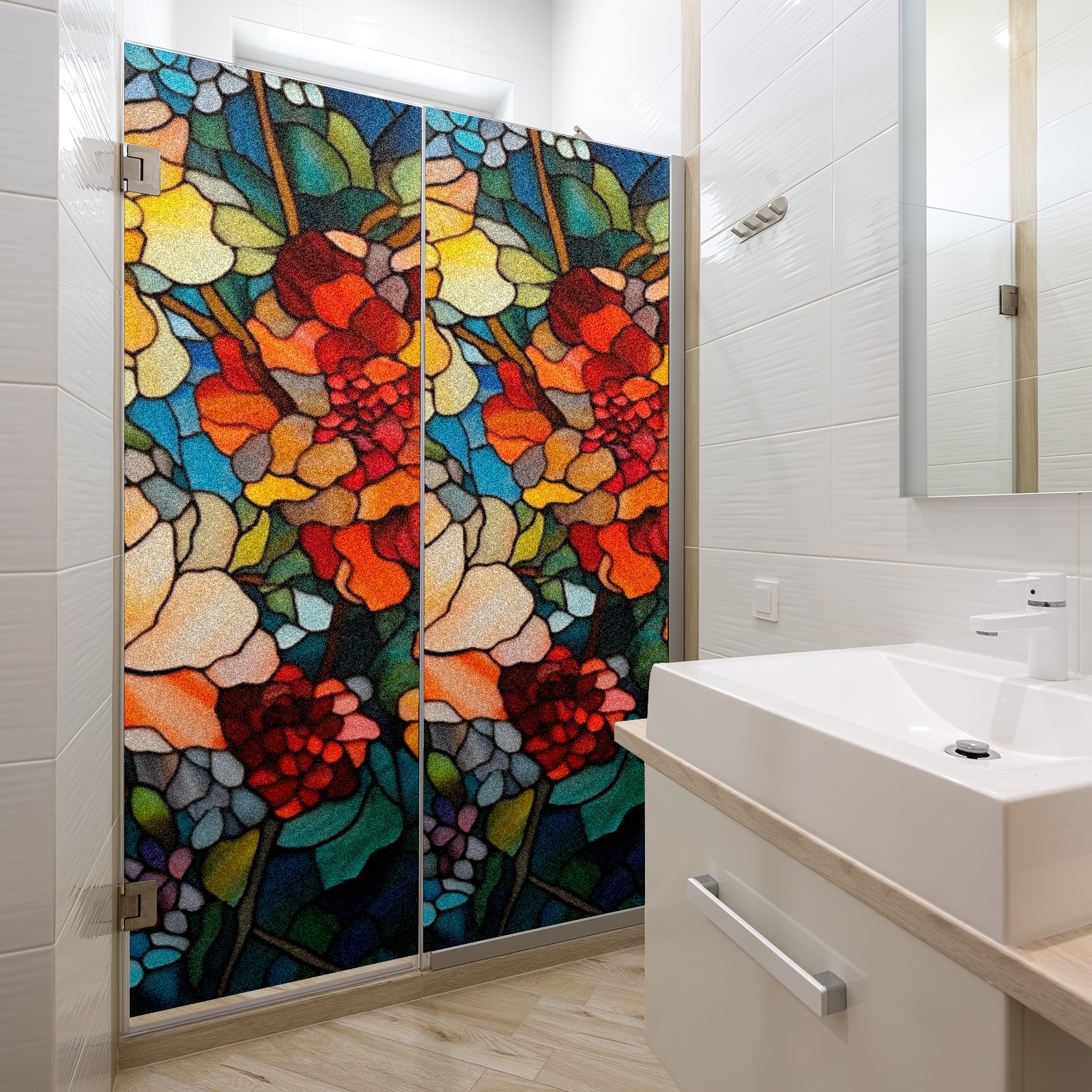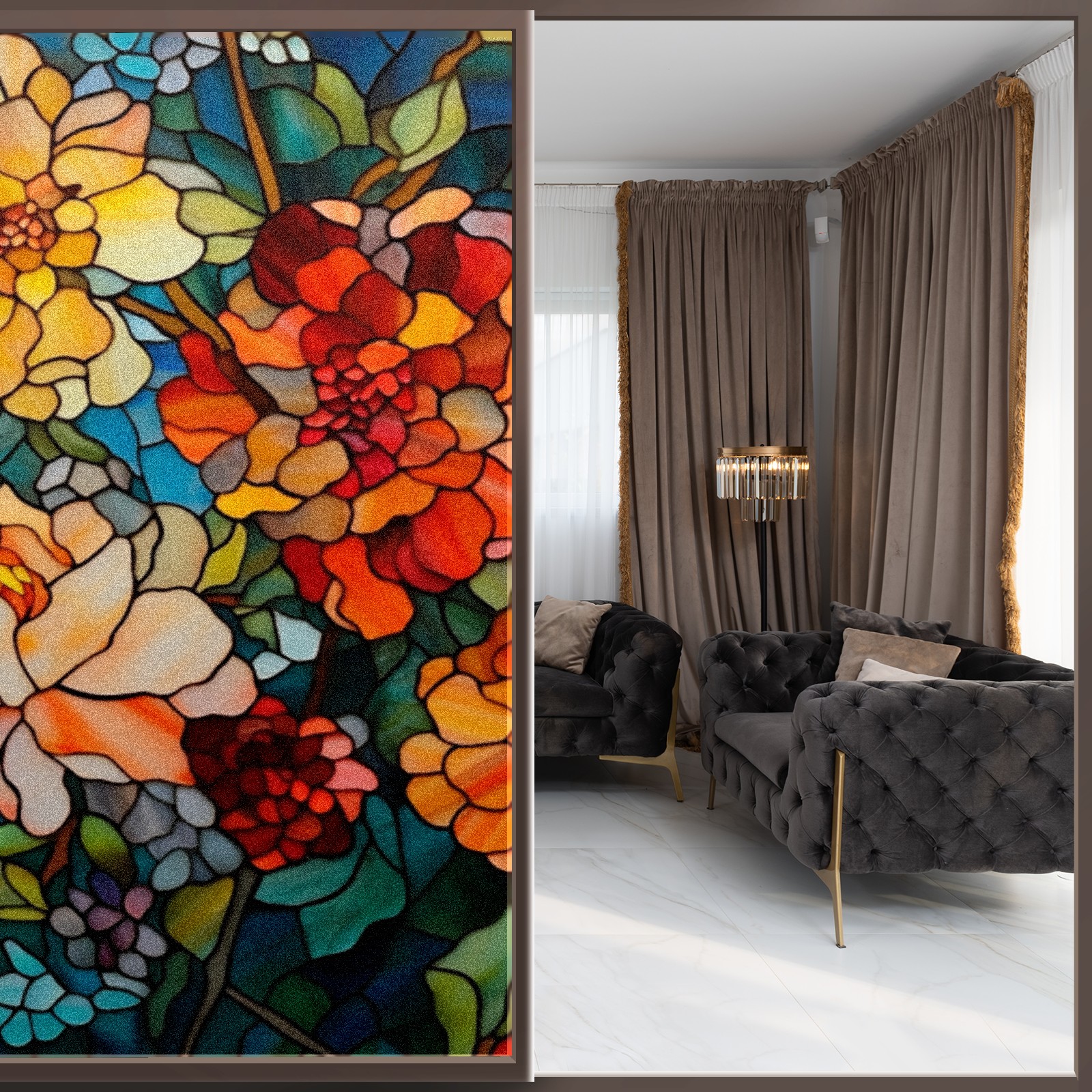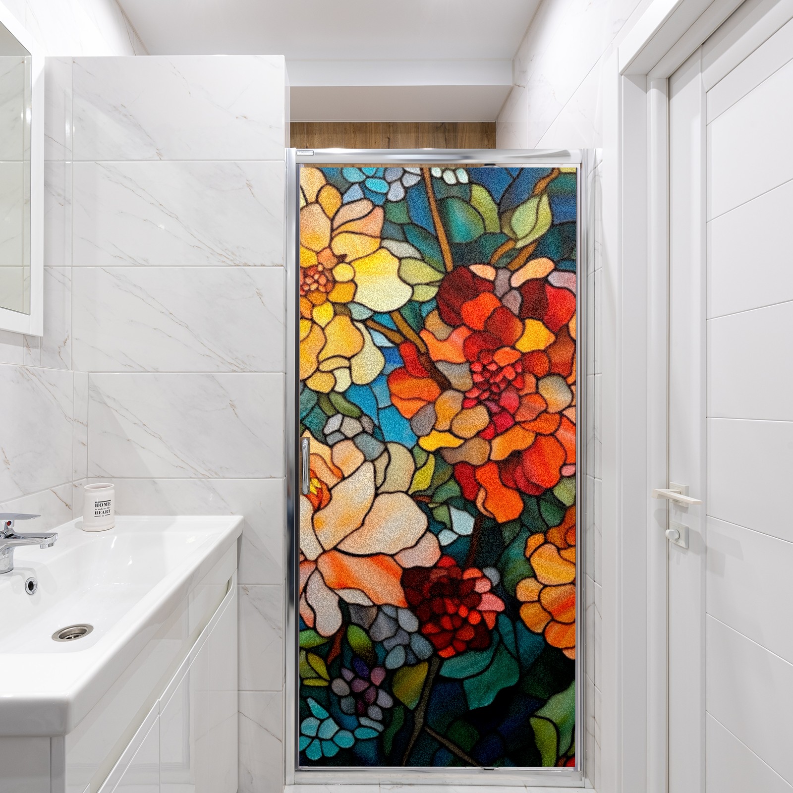 Window Privacy Film Frosted Stained Glass Film Decorative Static Cling for Bathroom Home Office Peel and Stick Window Film Art Glass Flower(17.7x23.6in)