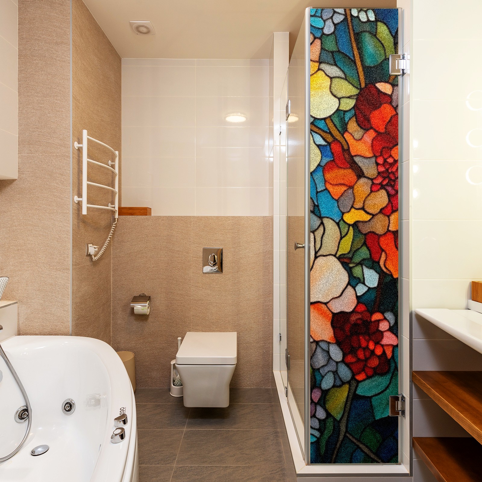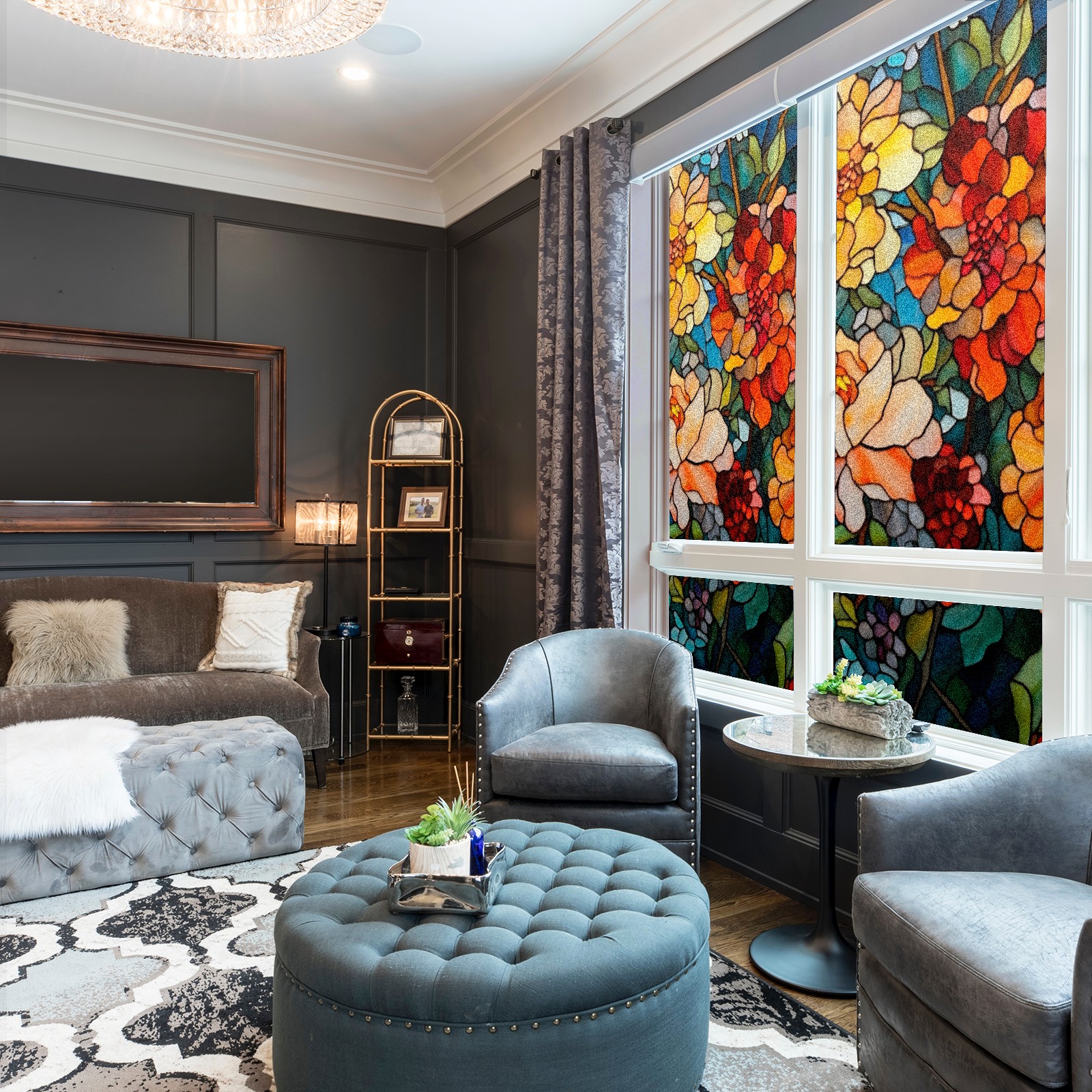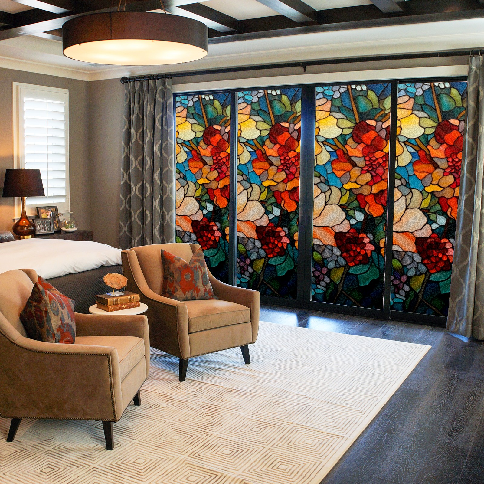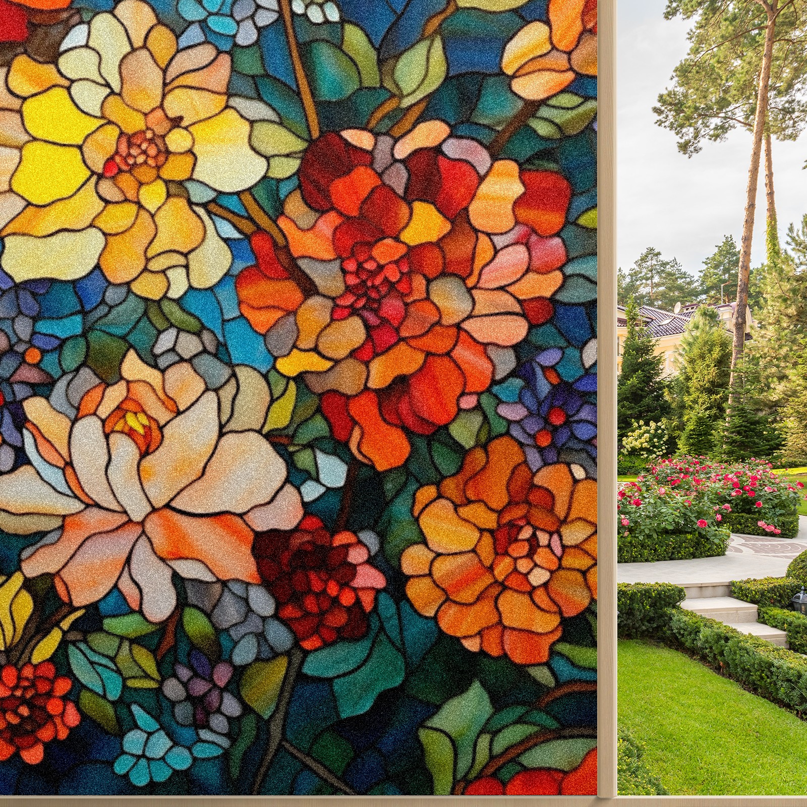 Window Privacy Film Frosted Stained Glass Film Decorative Static Cling for Bathroom Home Office Peel and Stick Window Film Art Glass Flower(17.7x23.6in)
