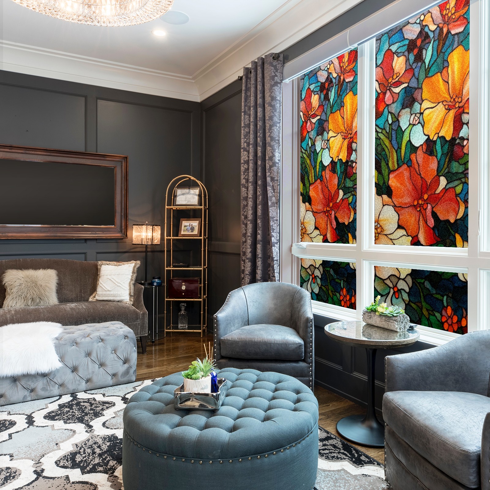 <p><b>Privacy Protection with Aesthetic Design</b></p><p>The frosted privacy window film protection for bathrooms, bedrooms, offices, and storefronts. Its light-diffusing texture maintains natural daylight while blocking 95% of UV rays and external visibility. Our window glass films offers excellent sun blocking capabilities, effectively reducing heat and glare, give privacy while still allowing natural soft light in.This window glass films with graphic printings, bright and vivid color, long term non fading</p><p><b>Effortless Installation &amp; Versatile Application</b></p><p>This frosted window film works perfectly for bathroom glass partitions, bedroom bay windows, kitchen sliding doors, office dividers, and storefront windows. With a 3-step installation process (clean, spray, smooth), it takes just 10 minutes to transform any glass surface. The film is trimmable for custom sizes and shapes, compatible with curved or unique glass designs.&nbsp;</p><p><b>We have various sizes and patterns, and there is always one that meets your preferences. Welcome to purchase Counullo frosted glass sticker.</b></p>