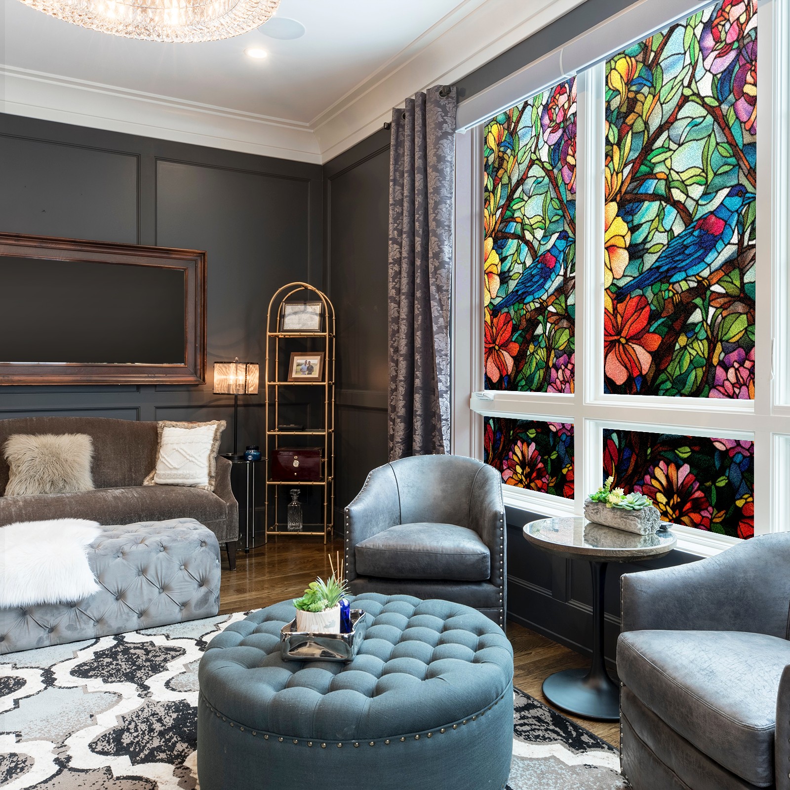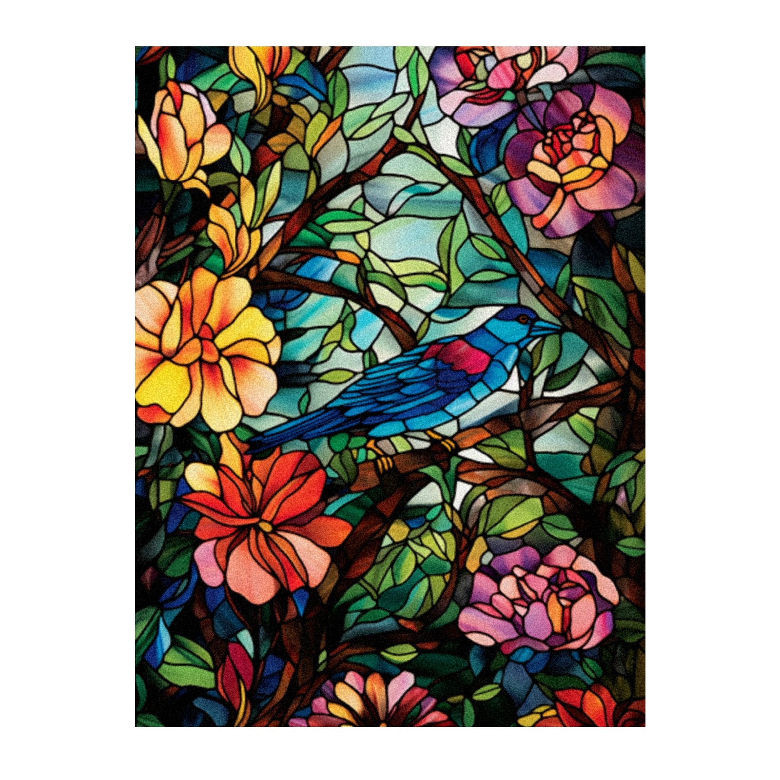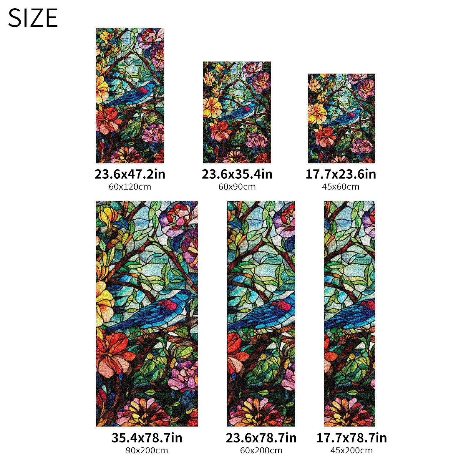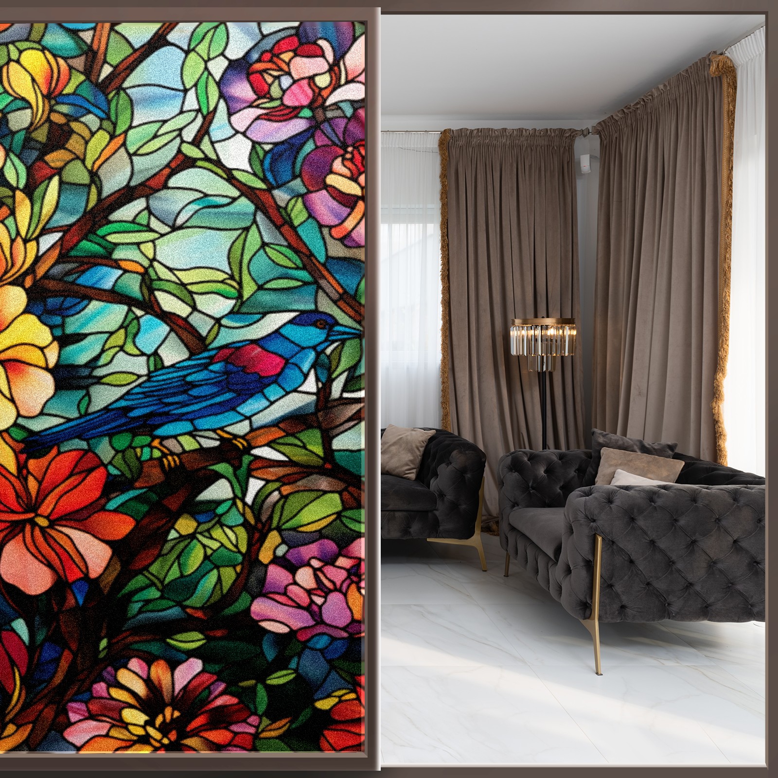 Window Privacy Film Frosted Stained Glass Film Decorative Static Cling for Bathroom Home Office Peel and Stick Window Film Flowers And Bird(17.7x23.6in)
