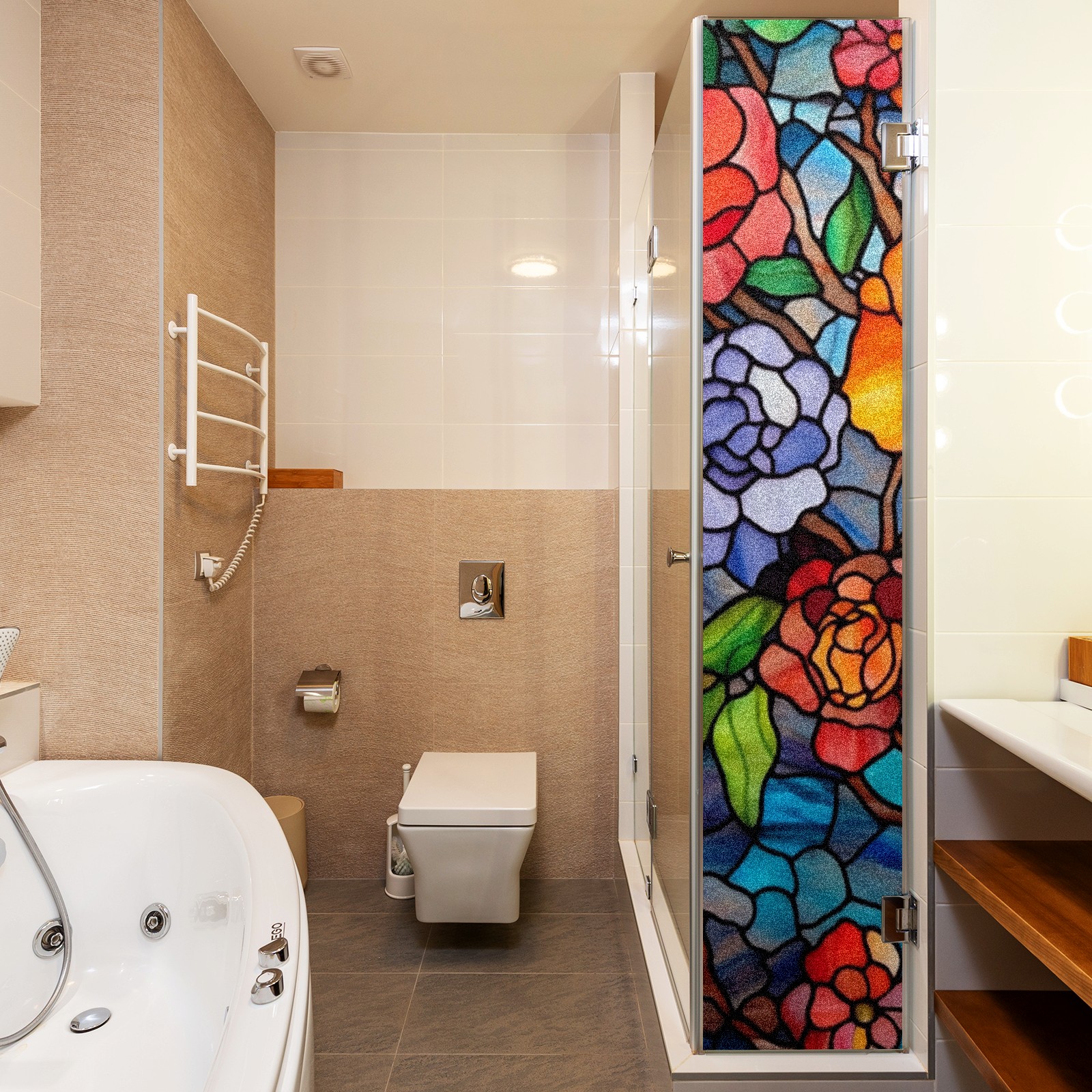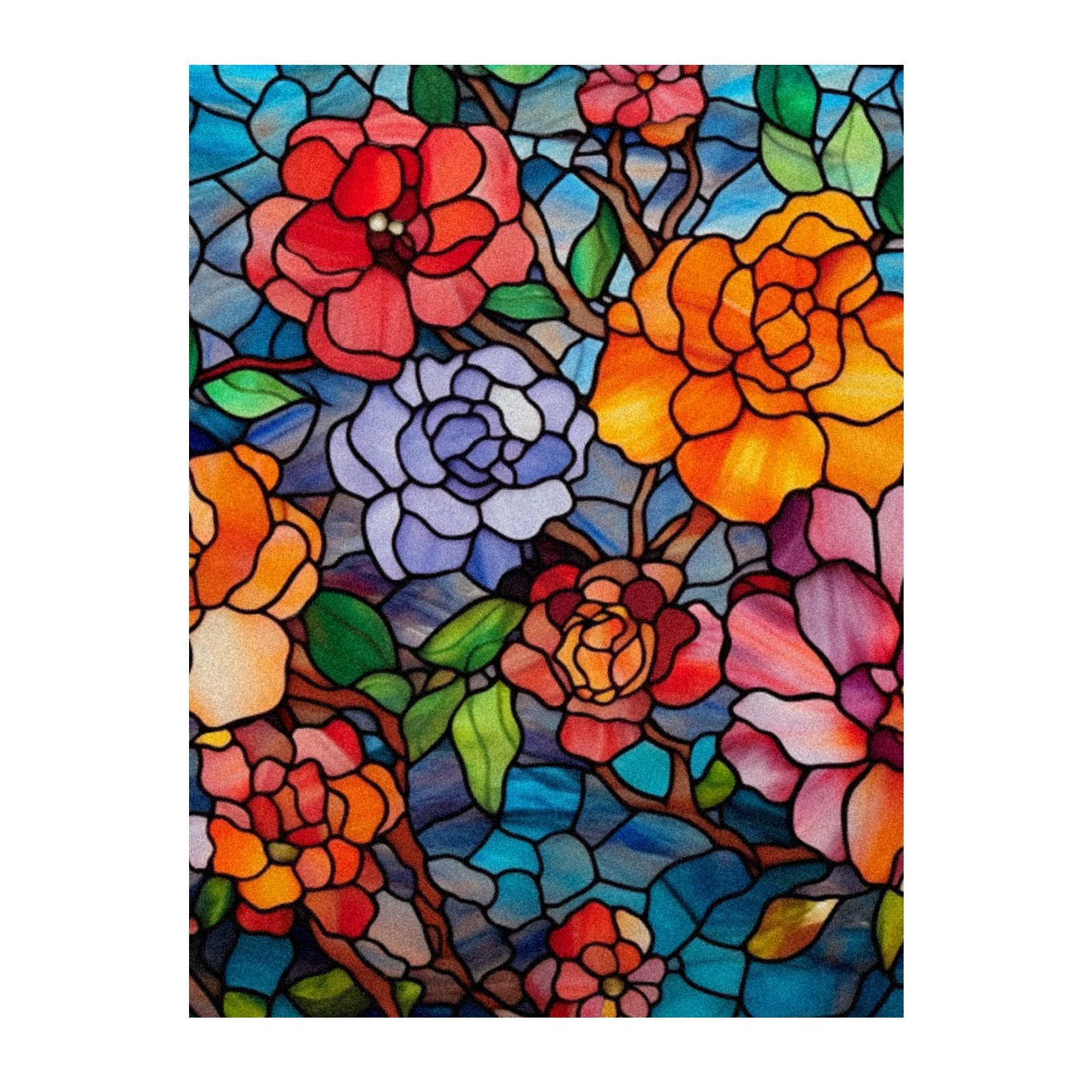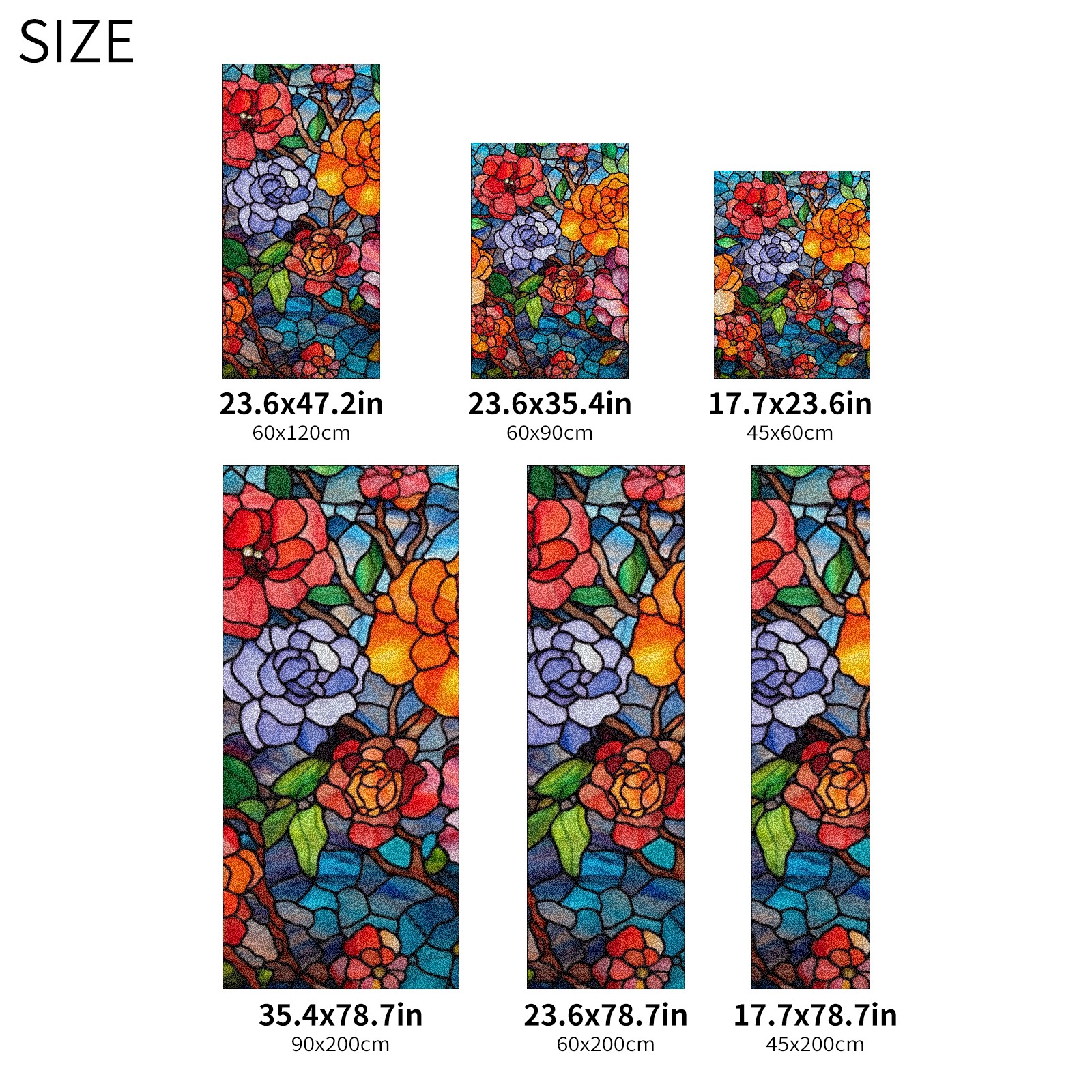 Window Privacy Film Frosted Stained Glass Film Decorative Static Cling for Bathroom Home Office Peel and Stick Window Film Colorful Flowers(17.7x23.6in)