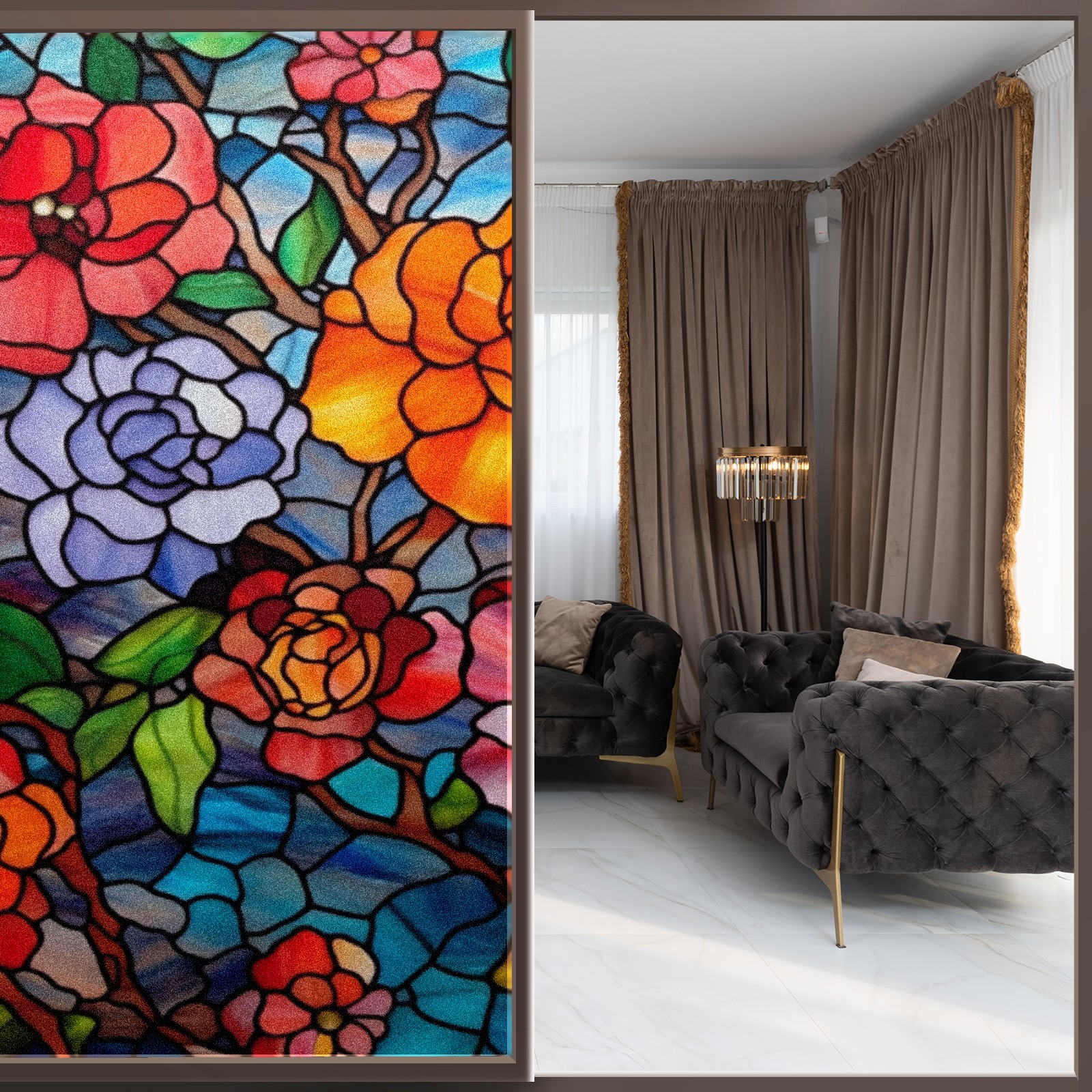 • <p><b>Privacy Protection with Aesthetic Design</b></p><p>The frosted privacy window film protection for bathrooms, bedrooms, offices, and storefronts. Its light-diffusing texture maintains natural daylight while blocking 95% of UV rays and external visibility. Our window glass films offers excellent sun blocking capabilities, effectively reducing heat and glare, give privacy while still allowing natural soft light in.This window glass films with graphic printings, bright and vivid color, long term non fading</p><p><b>Effortless Installation &amp; Versatile Application</b></p><p>This frosted window film works perfectly for bathroom glass partitions, bedroom bay windows, kitchen sliding doors, office dividers, and storefront windows. With a 3-step installation process (clean, spray, smooth), it takes just 10 minutes to transform any glass surface. The film is trimmable for custom sizes and shapes, compatible with curved or unique glass designs.&nbsp;</p><p><b>We have various sizes and patterns, and there is always one that meets your preferences. Welcome to purchase Counullo frosted glass sticker.</b></p>