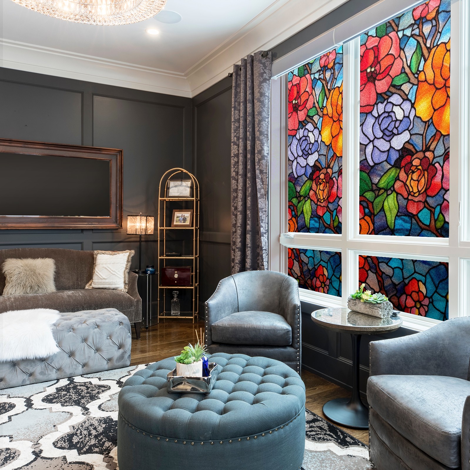 <p><b>Privacy Protection with Aesthetic Design</b></p><p>The frosted privacy window film protection for bathrooms, bedrooms, offices, and storefronts. Its light-diffusing texture maintains natural daylight while blocking 95% of UV rays and external visibility. Our window glass films offers excellent sun blocking capabilities, effectively reducing heat and glare, give privacy while still allowing natural soft light in.This window glass films with graphic printings, bright and vivid color, long term non fading</p><p><b>Effortless Installation &amp; Versatile Application</b></p><p>This frosted window film works perfectly for bathroom glass partitions, bedroom bay windows, kitchen sliding doors, office dividers, and storefront windows. With a 3-step installation process (clean, spray, smooth), it takes just 10 minutes to transform any glass surface. The film is trimmable for custom sizes and shapes, compatible with curved or unique glass designs.&nbsp;</p><p><b>We have various sizes and patterns, and there is always one that meets your preferences. Welcome to purchase Counullo frosted glass sticker.</b></p>