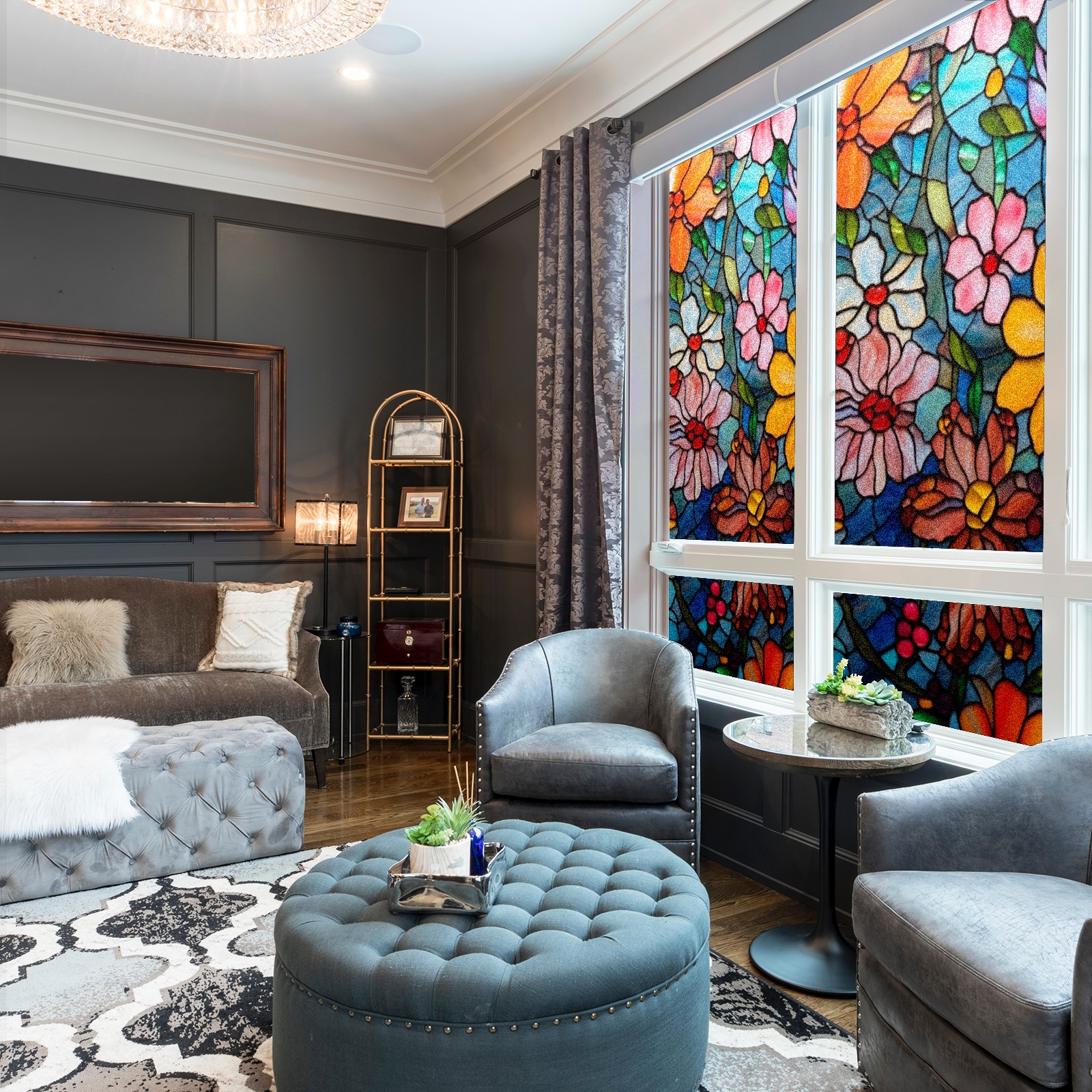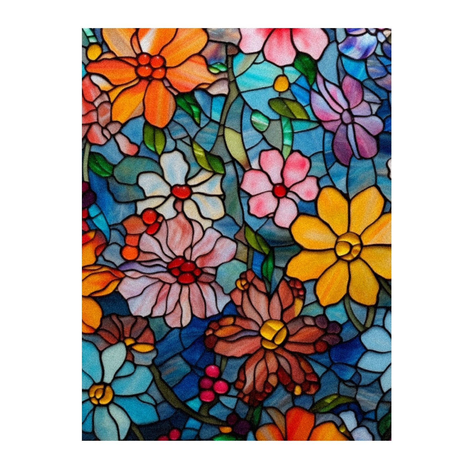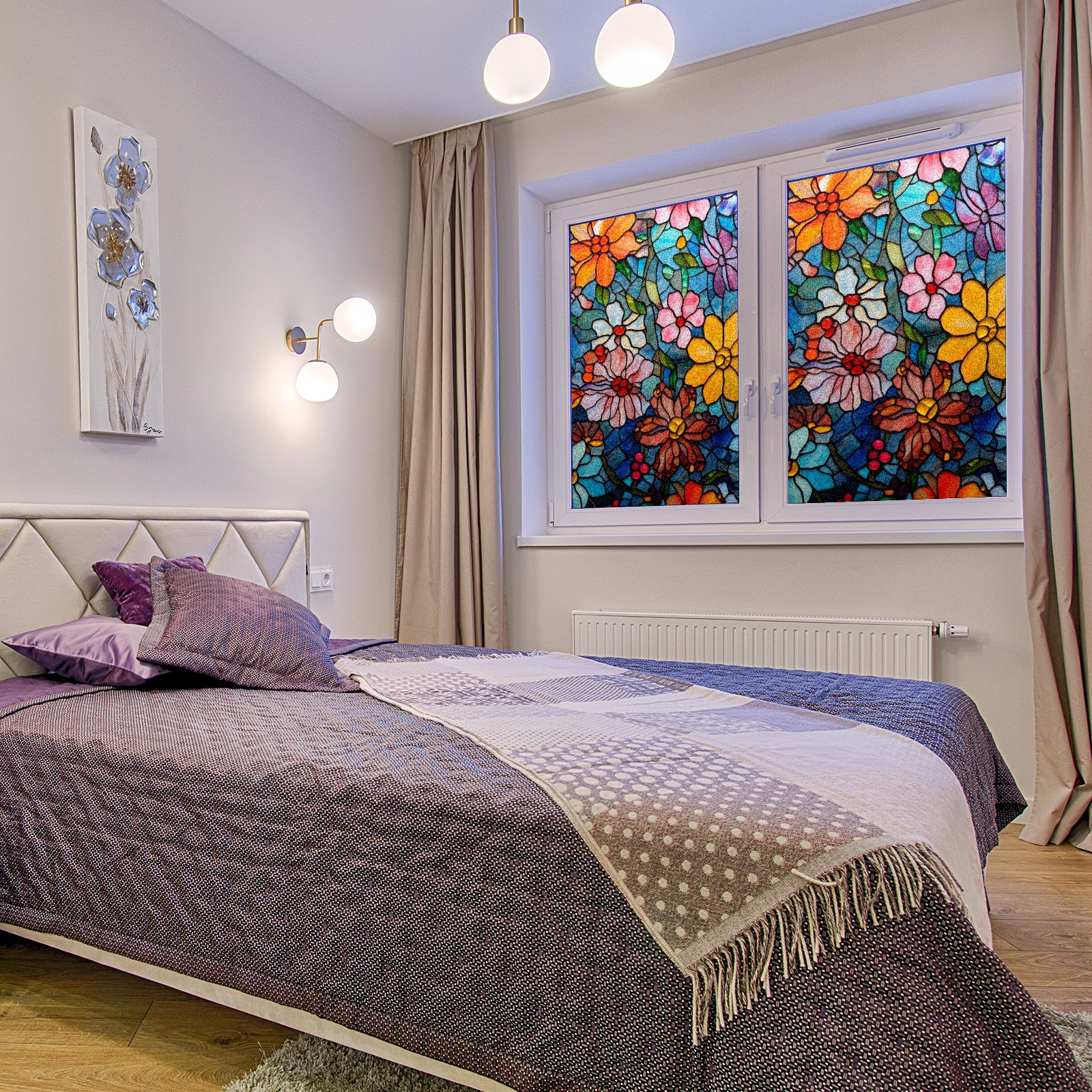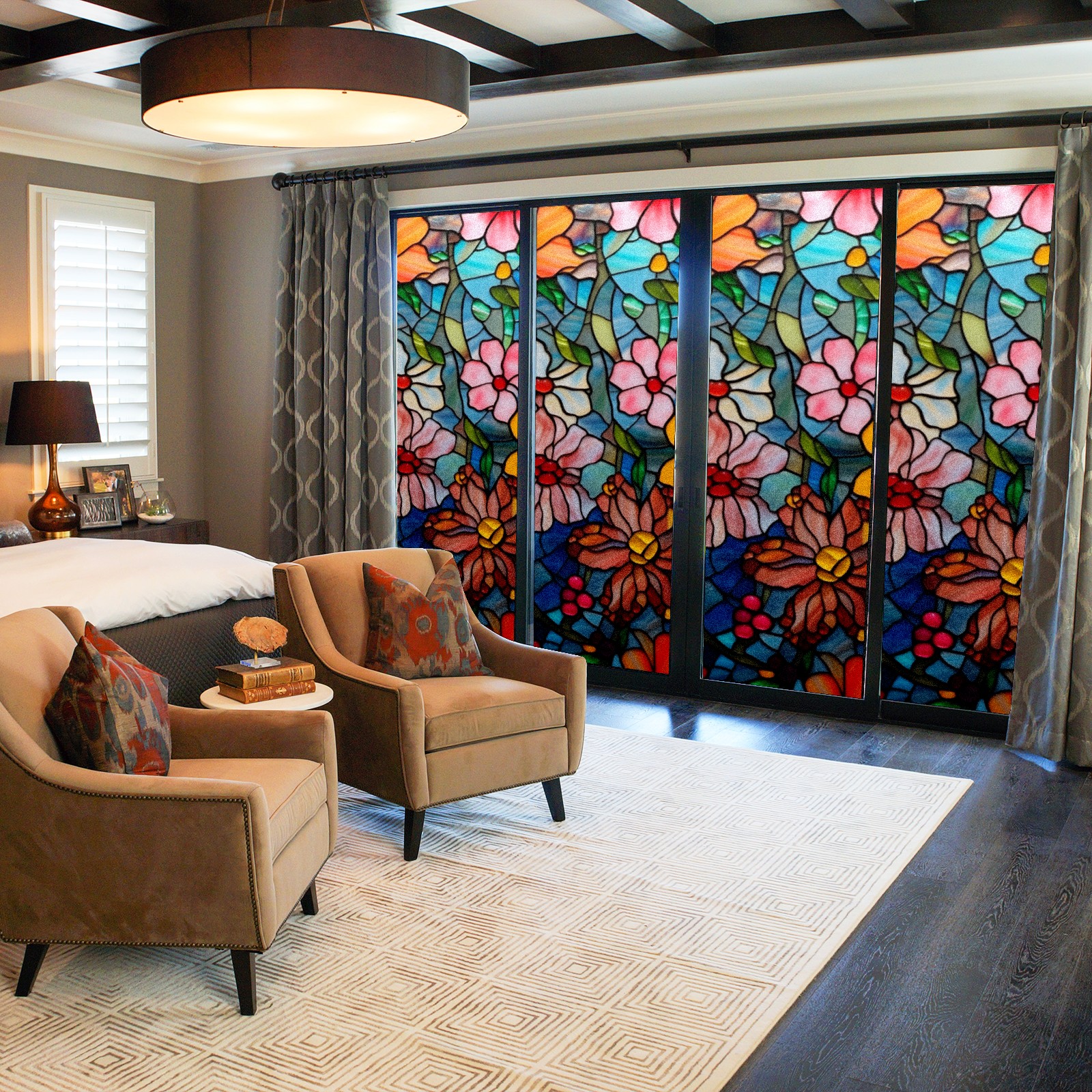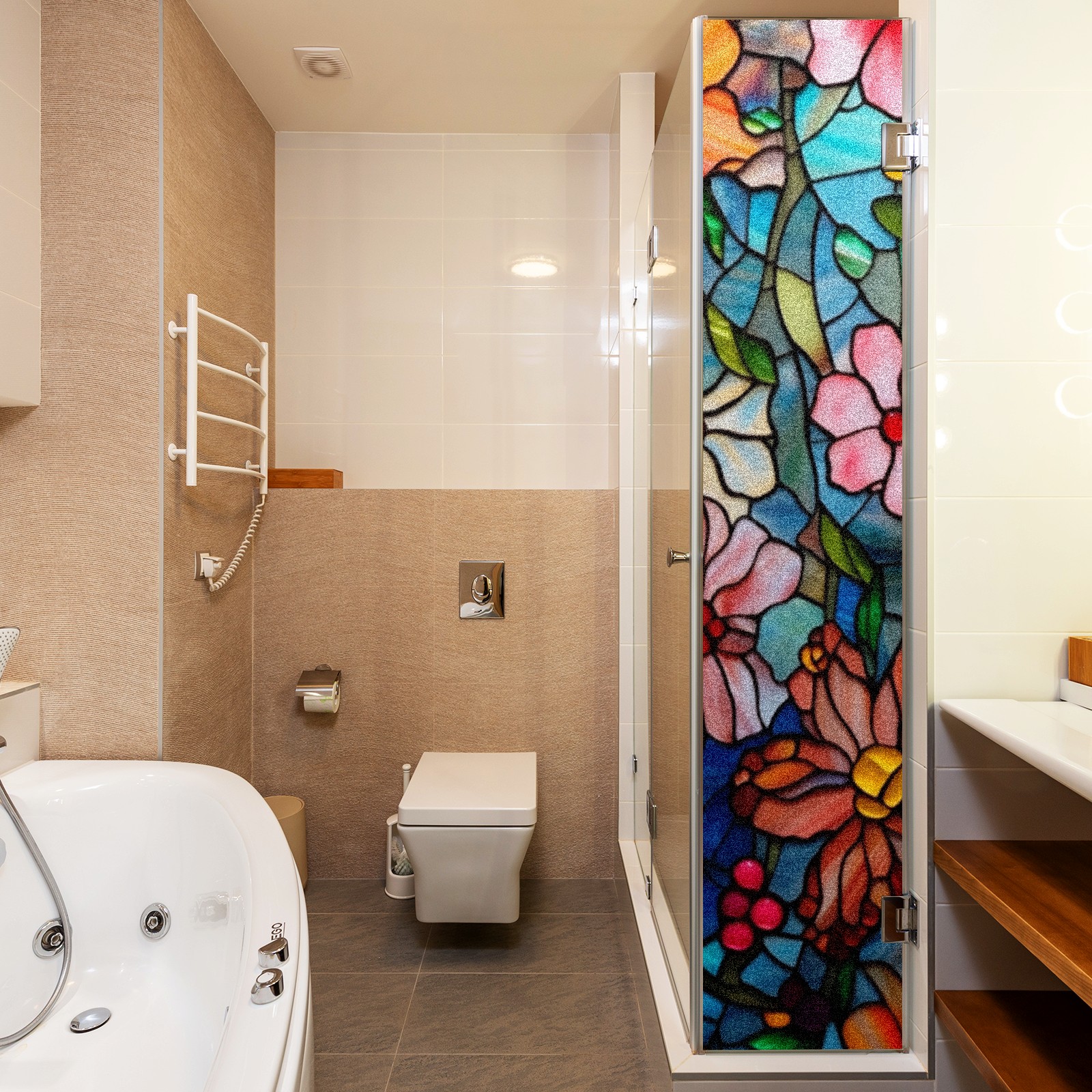 Window Privacy Film Frosted Stained Glass Film Decorative Static Cling for Bathroom Home Office Peel and Stick Window Film Colorful Geometric Flowers(17.7x23.6in)