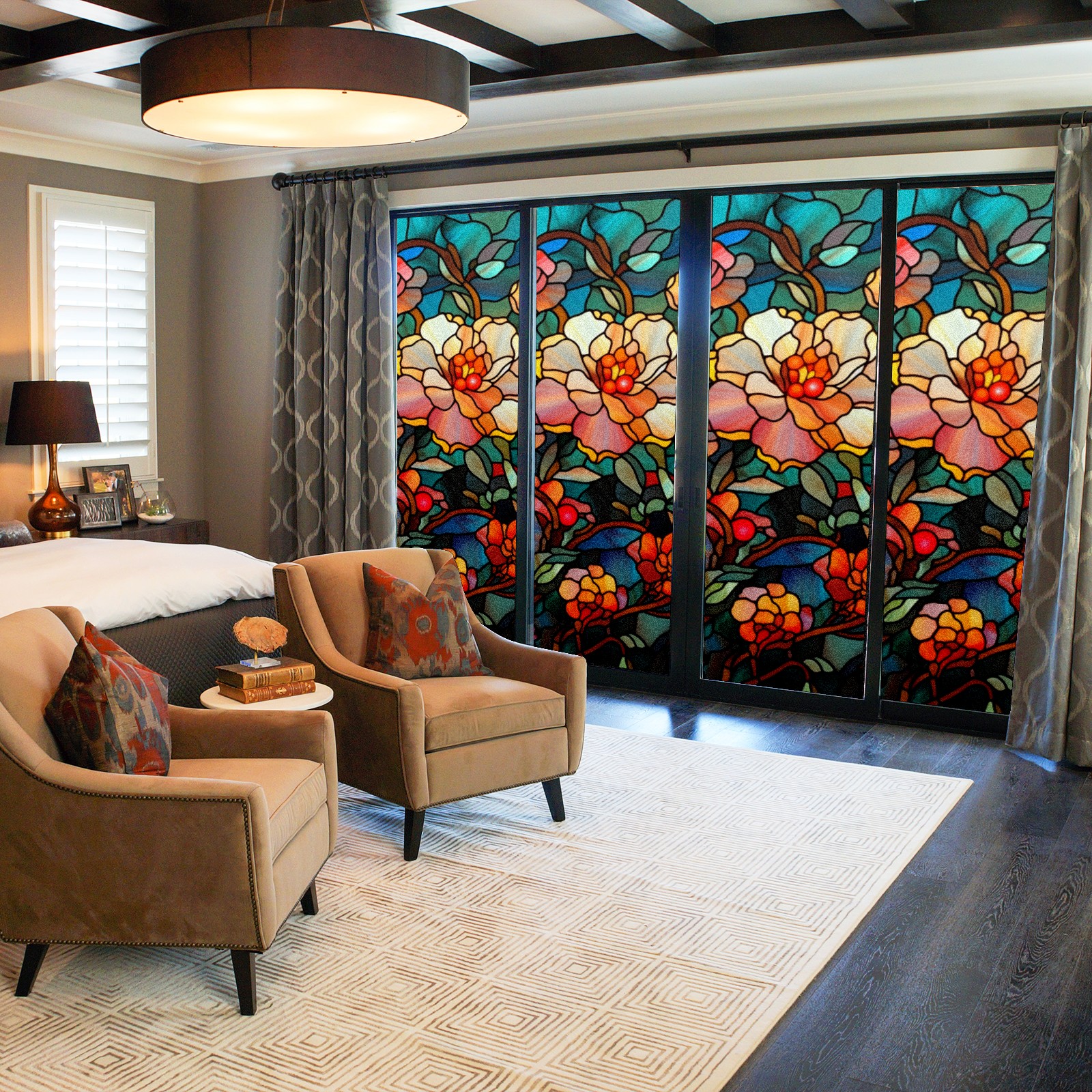 • <p><b>Privacy Protection with Aesthetic Design</b></p><p>The frosted privacy window film protection for bathrooms, bedrooms, offices, and storefronts. Its light-diffusing texture maintains natural daylight while blocking 95% of UV rays and external visibility. Our window glass films offers excellent sun blocking capabilities, effectively reducing heat and glare, give privacy while still allowing natural soft light in.This window glass films with graphic printings, bright and vivid color, long term non fading</p><p><b>Effortless Installation &amp; Versatile Application</b></p><p>This frosted window film works perfectly for bathroom glass partitions, bedroom bay windows, kitchen sliding doors, office dividers, and storefront windows. With a 3-step installation process (clean, spray, smooth), it takes just 10 minutes to transform any glass surface. The film is trimmable for custom sizes and shapes, compatible with curved or unique glass designs.&nbsp;</p><p><b>We have various sizes and patterns, and there is always one that meets your preferences. Welcome to purchase Counullo frosted glass sticker.</b></p>
