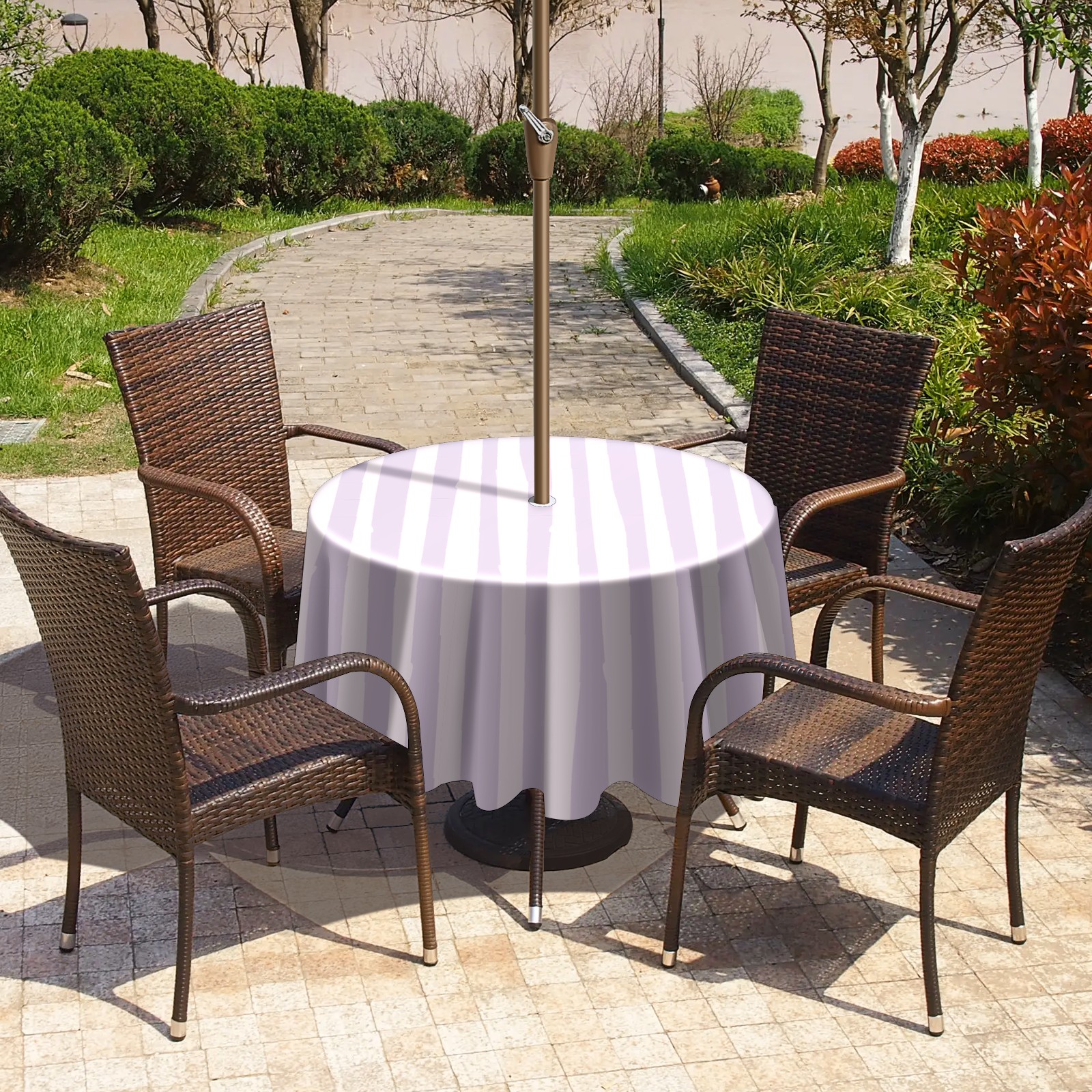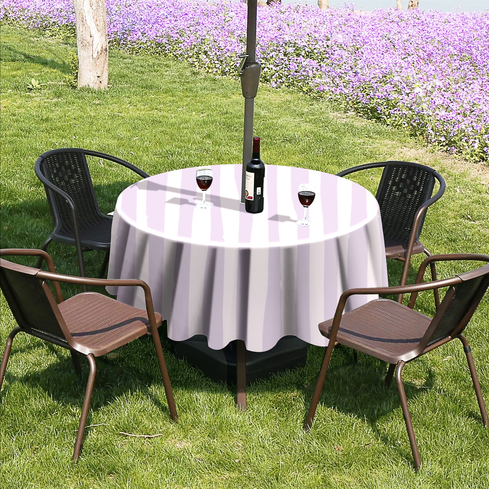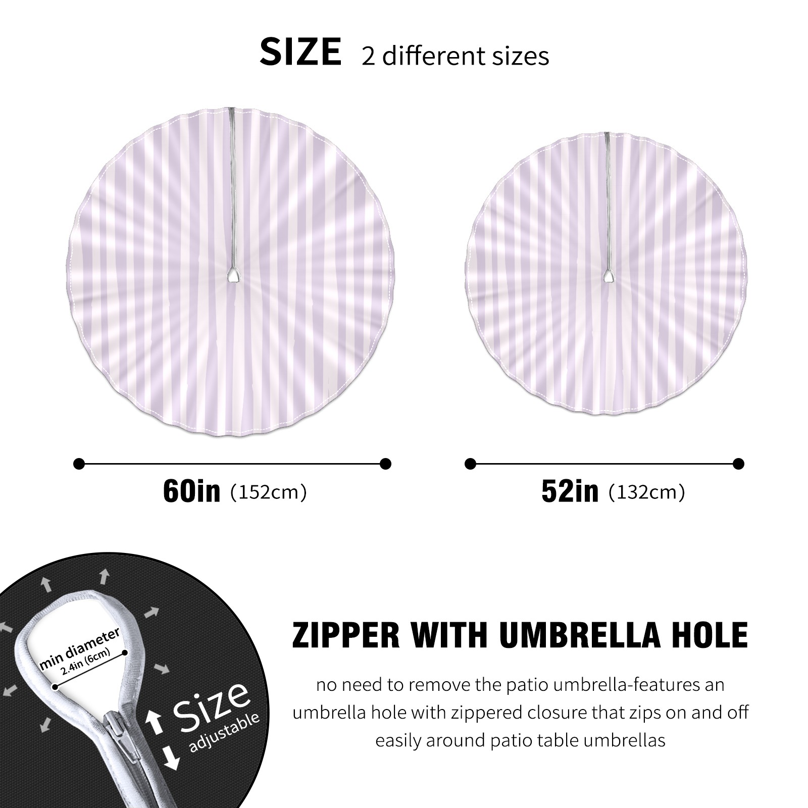 Round Tablecloth with Adjustable Zippered Hole - Durable Polyester for Patio, Restaurant & Outdoor Dining Purple Striped Lovely (60in)