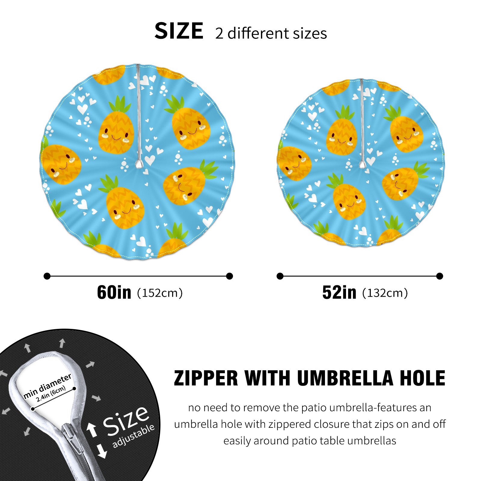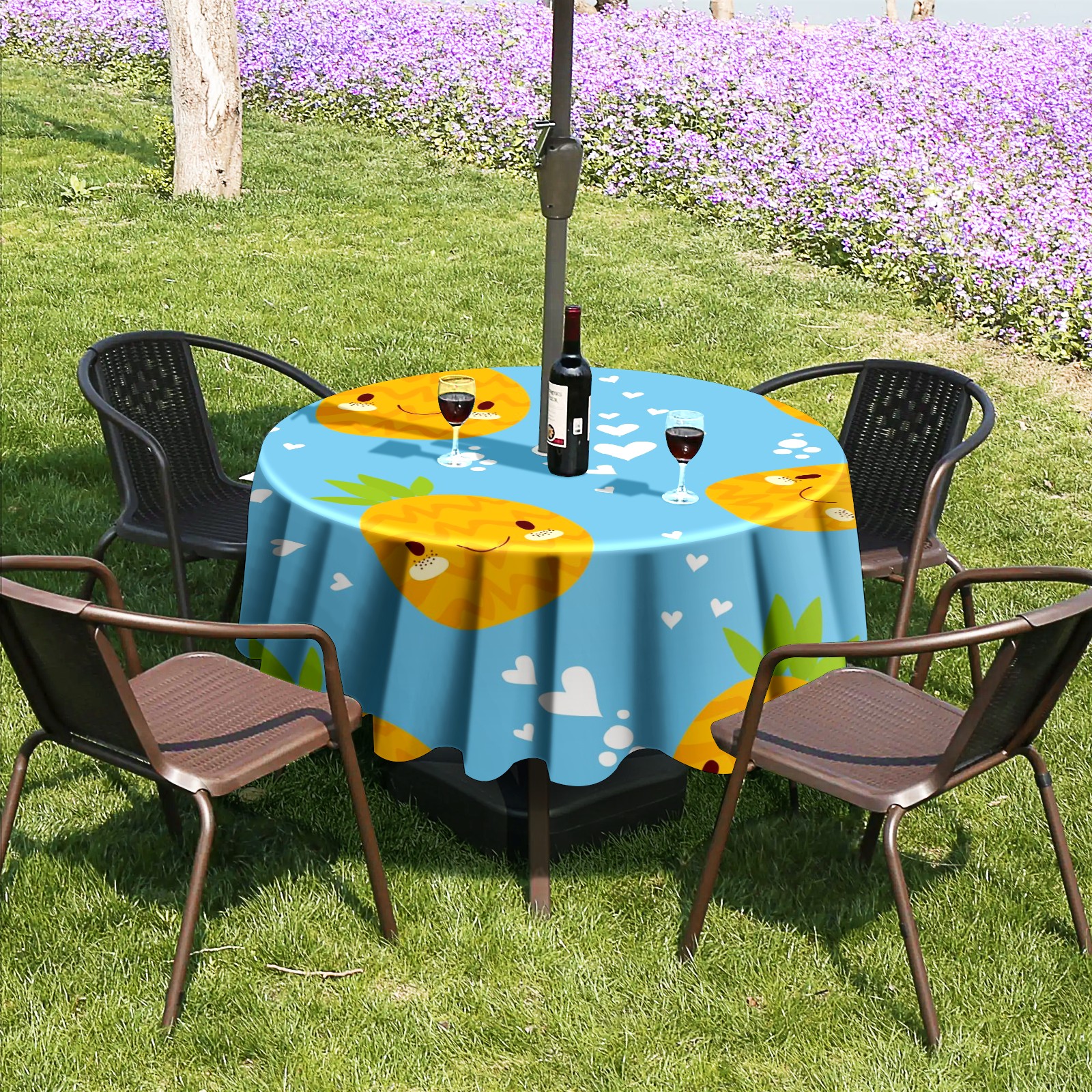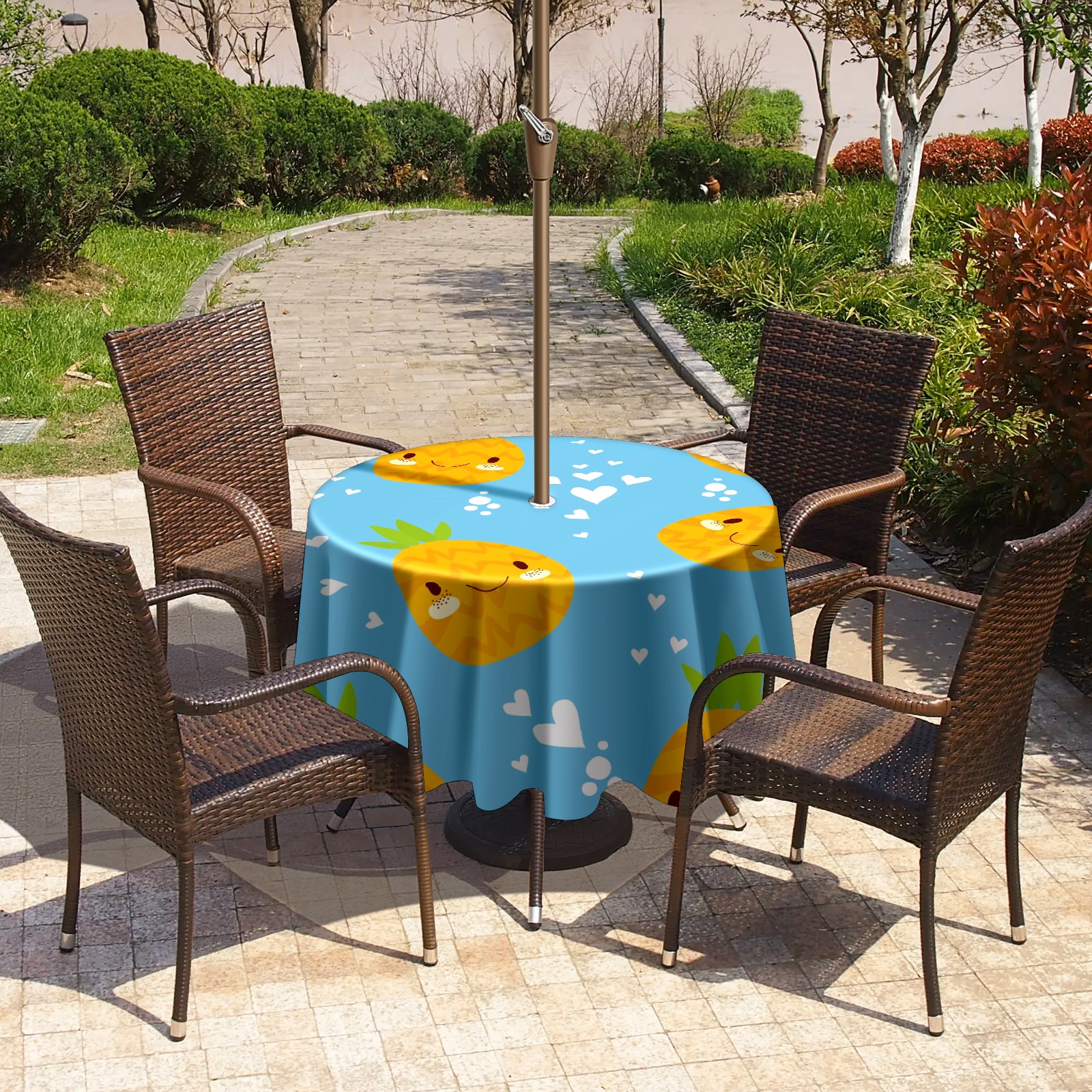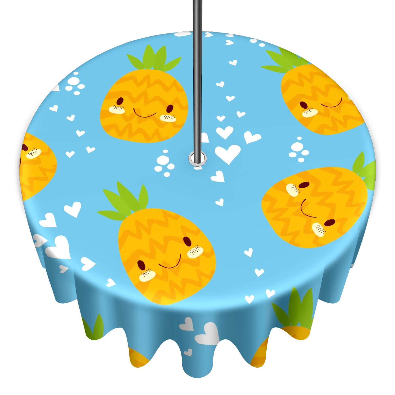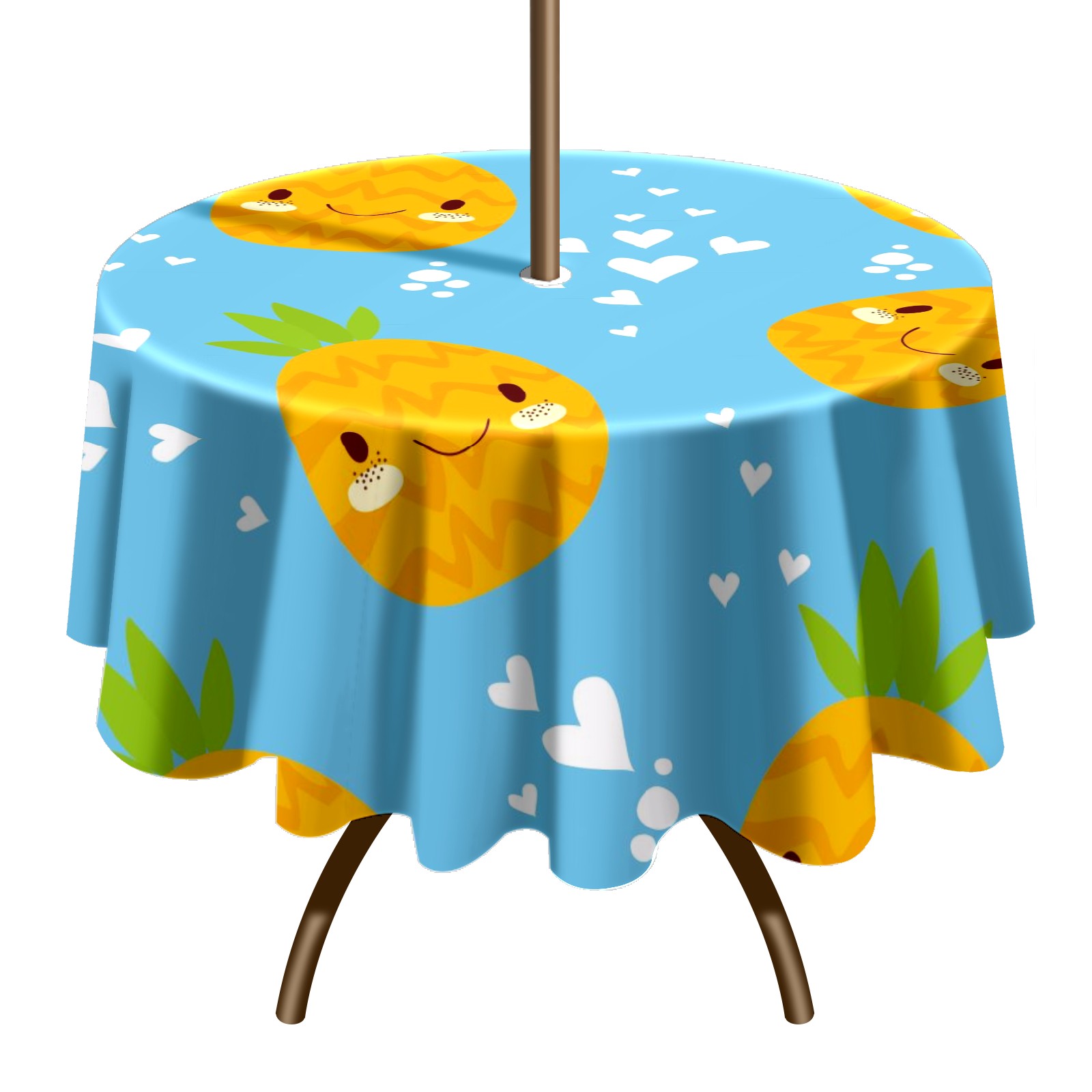 Round Tablecloth with Adjustable Zippered Hole - Durable Polyester for Patio, Restaurant & Outdoor Dining Cute Pineapple (60in)