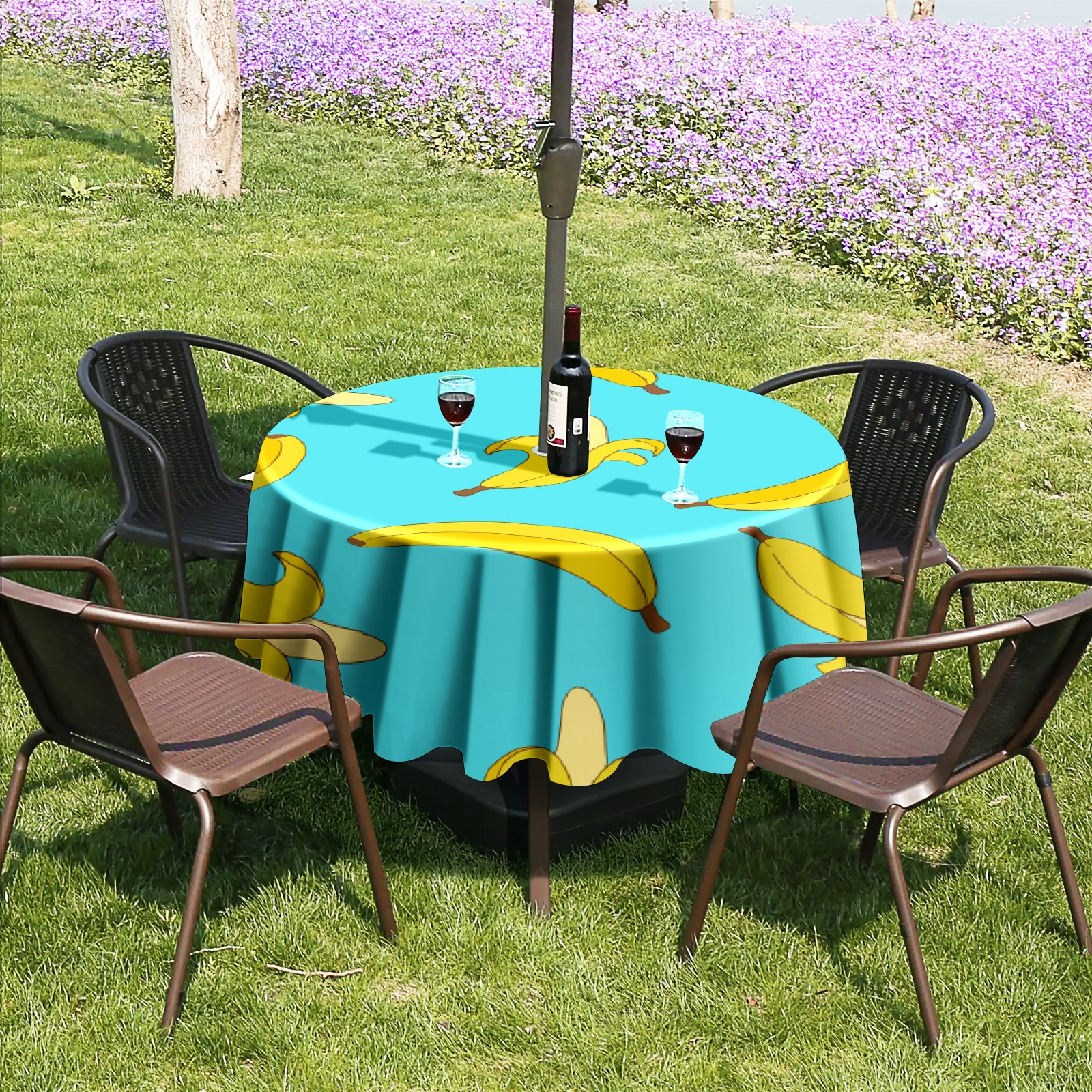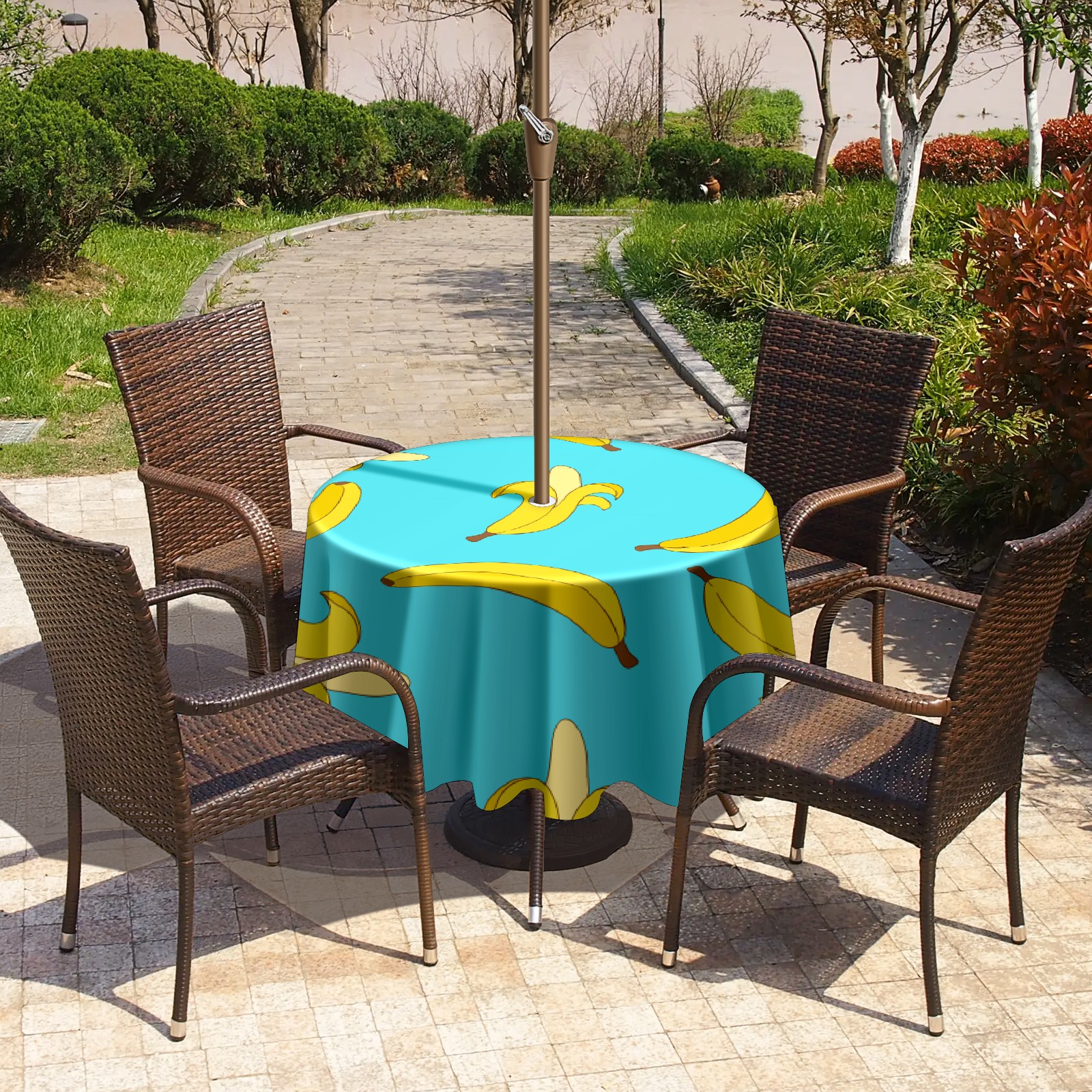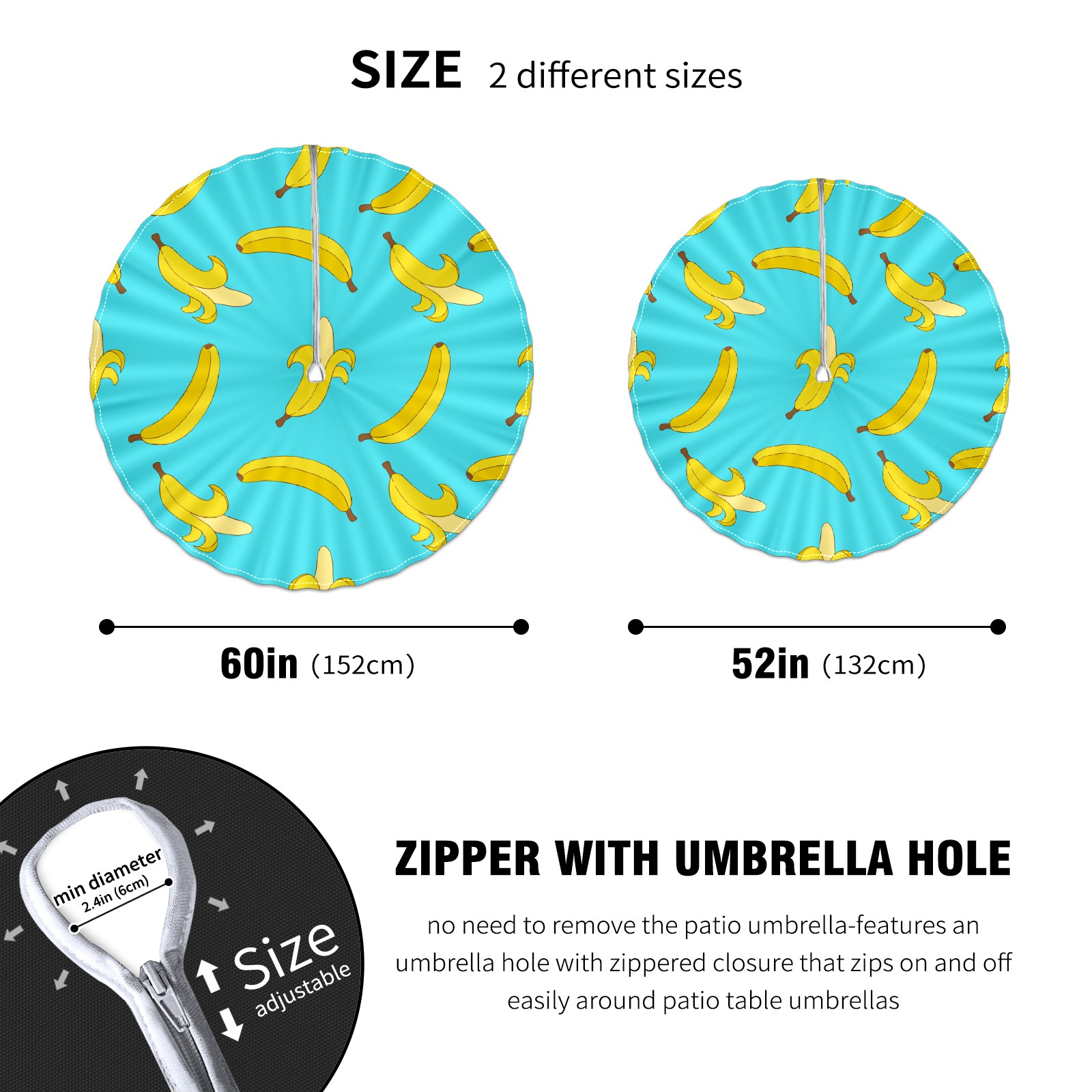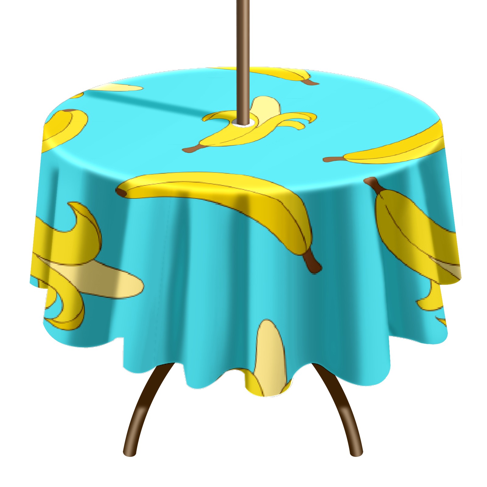 Round Tablecloth with Adjustable Zippered Hole - Durable Polyester for Patio, Restaurant & Outdoor Dining Cute Banana (60in)
