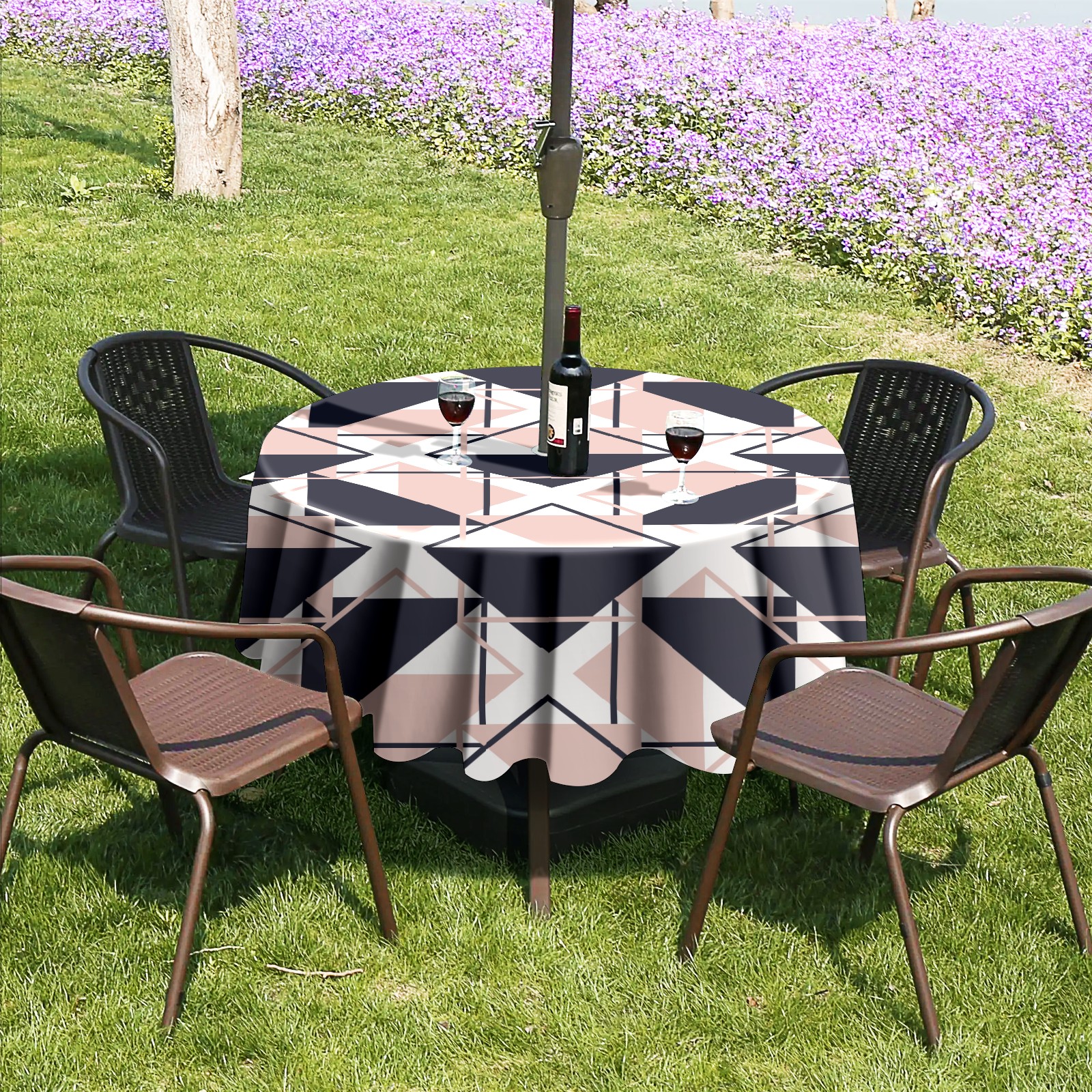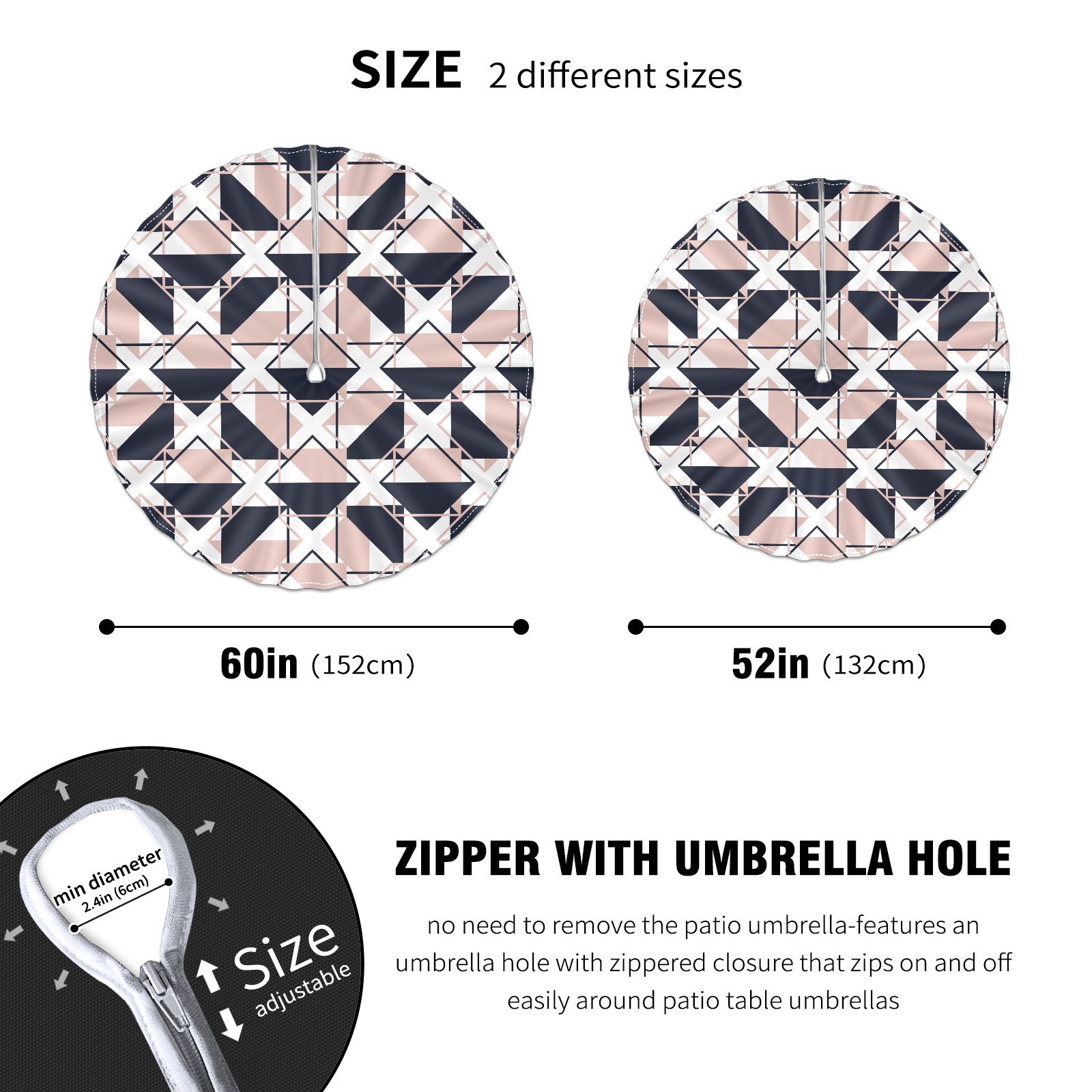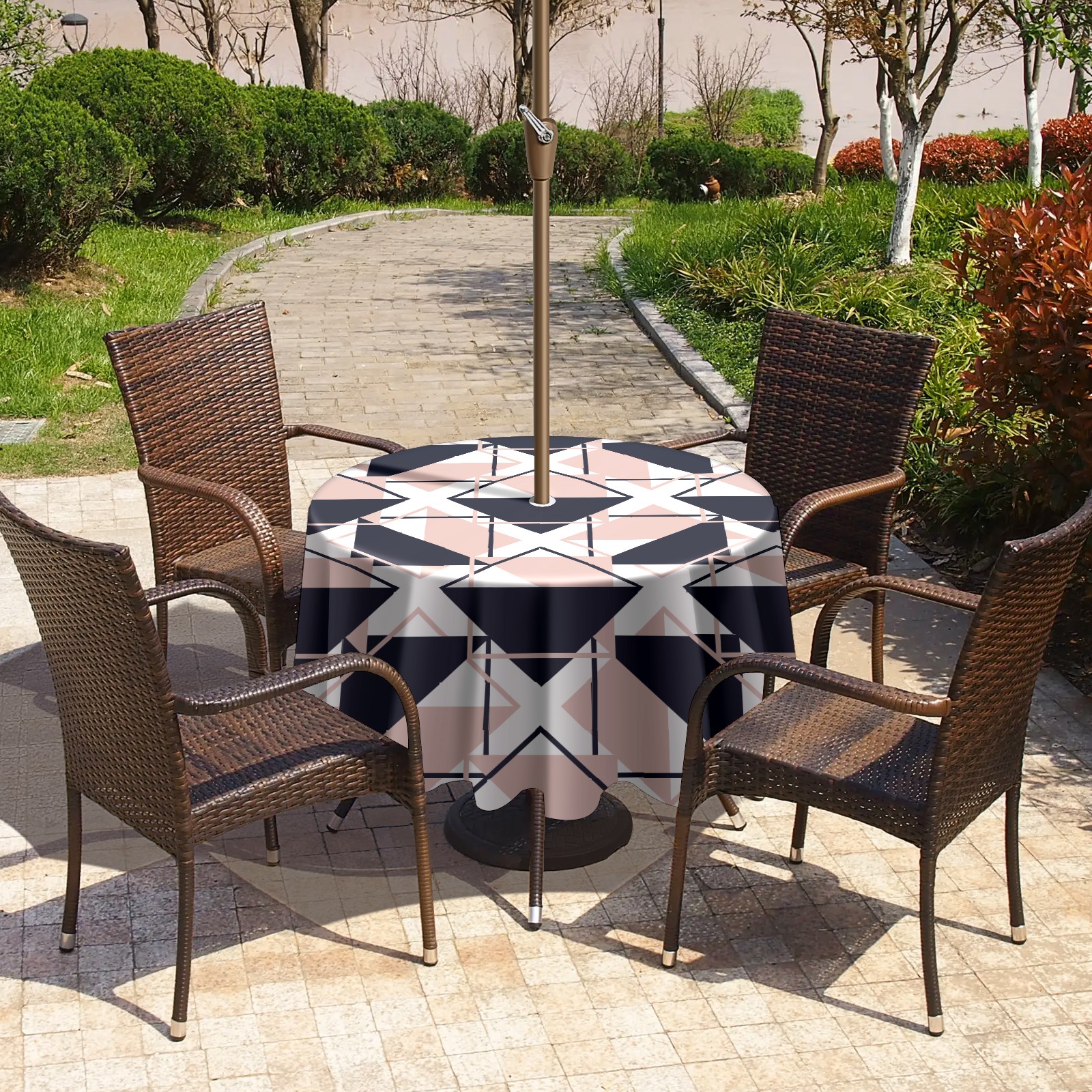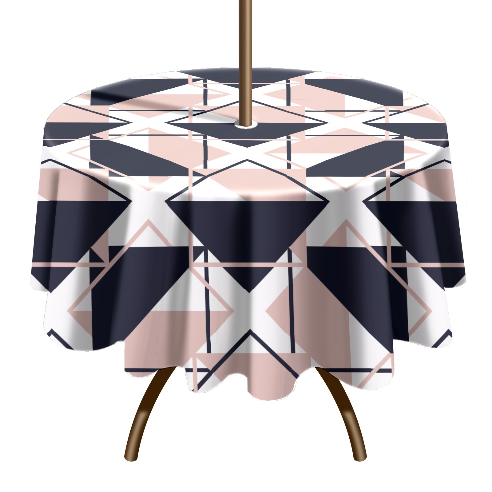 Round Tablecloth with Adjustable Zippered Hole - Durable Polyester for Patio, Restaurant & Outdoor Dining Triangle Geometric (60in)
