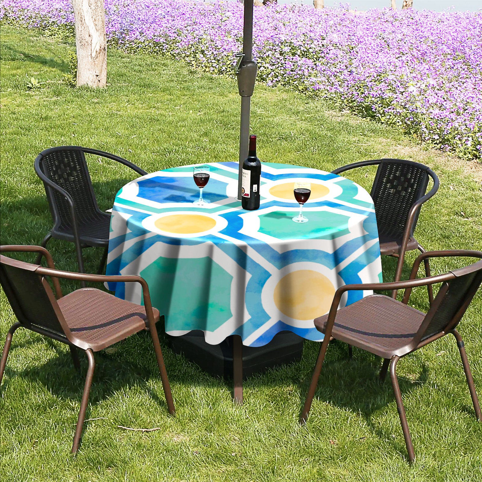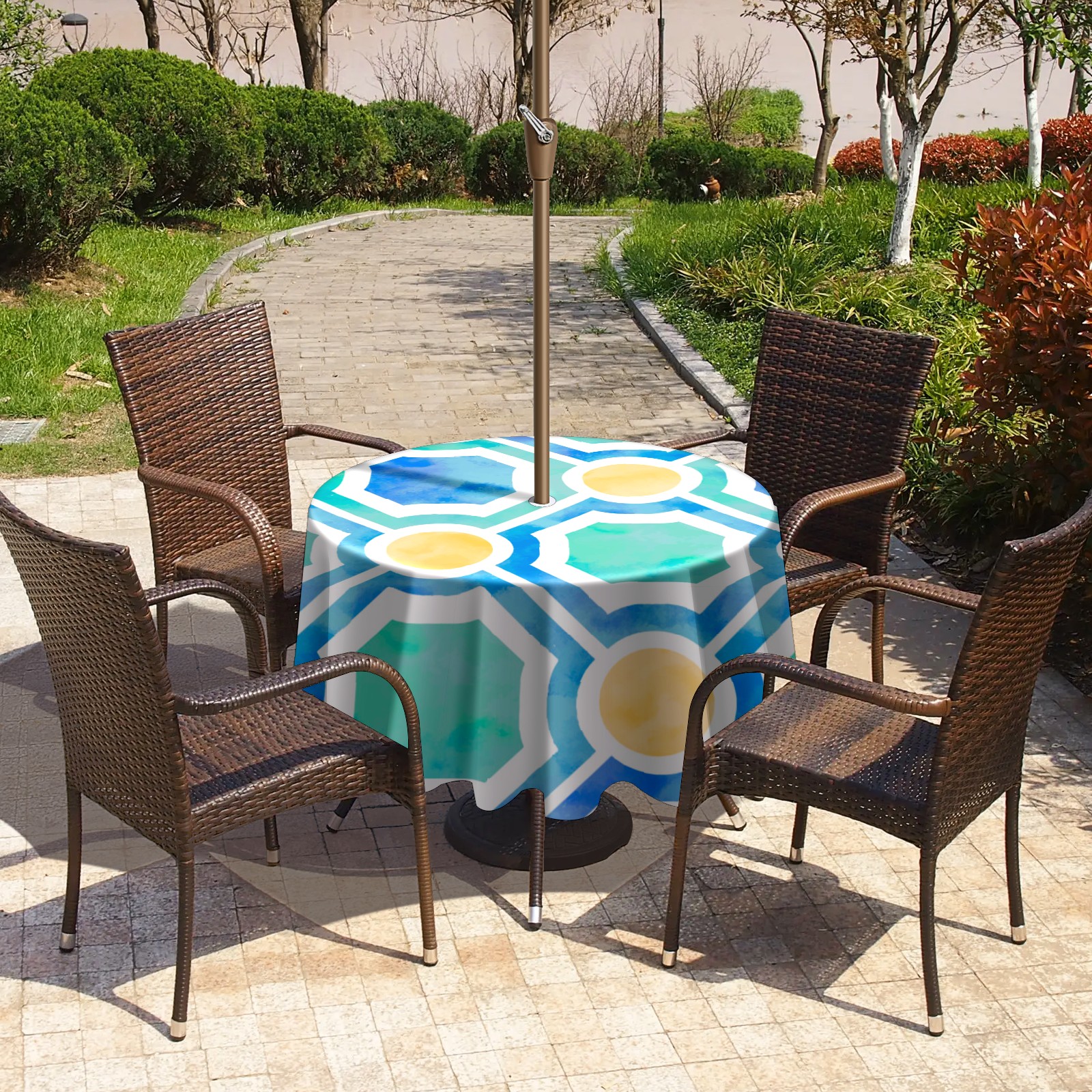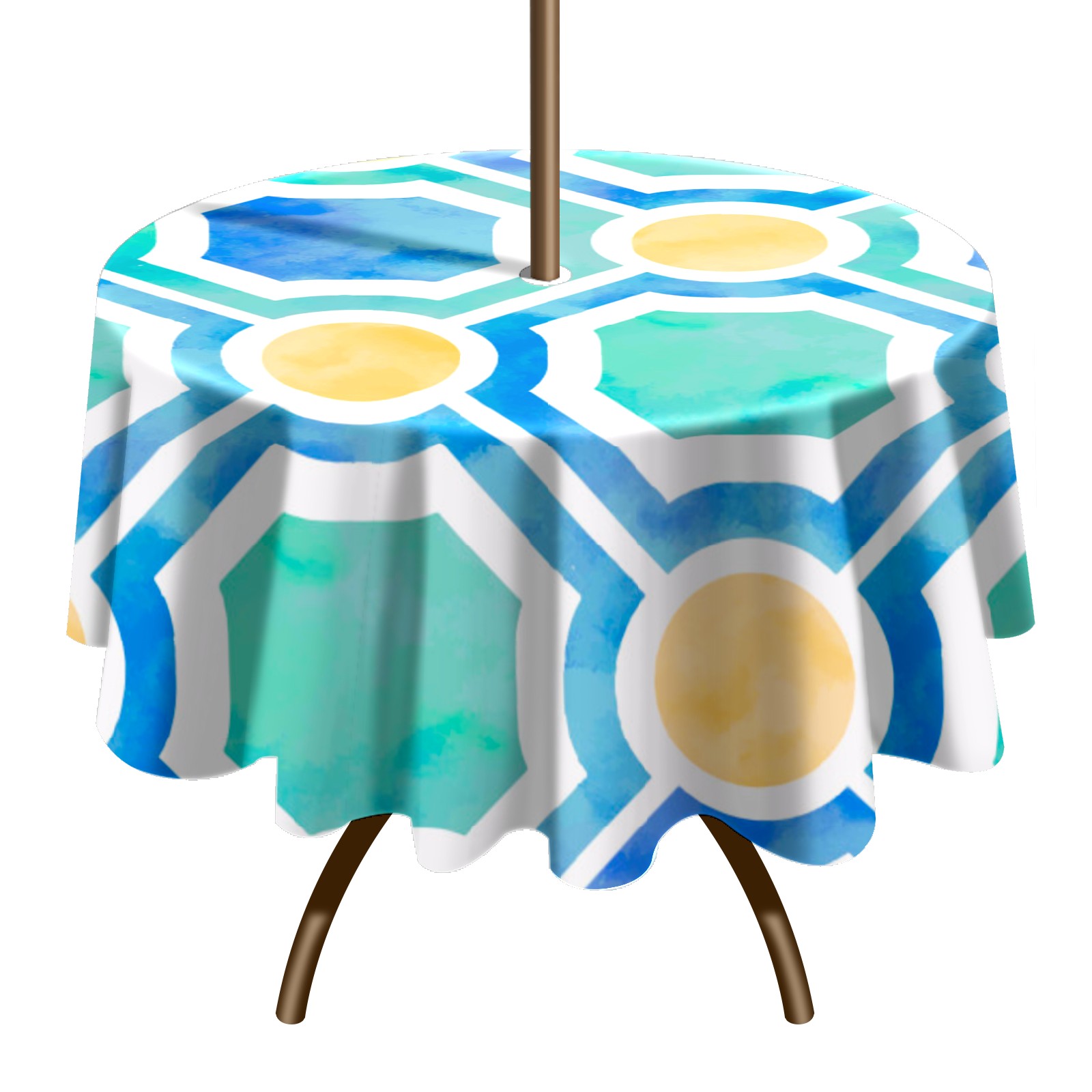 Round Tablecloth with Adjustable Zippered Hole - Durable Polyester for Patio, Restaurant & Outdoor Dining Geometric Blue (60in)