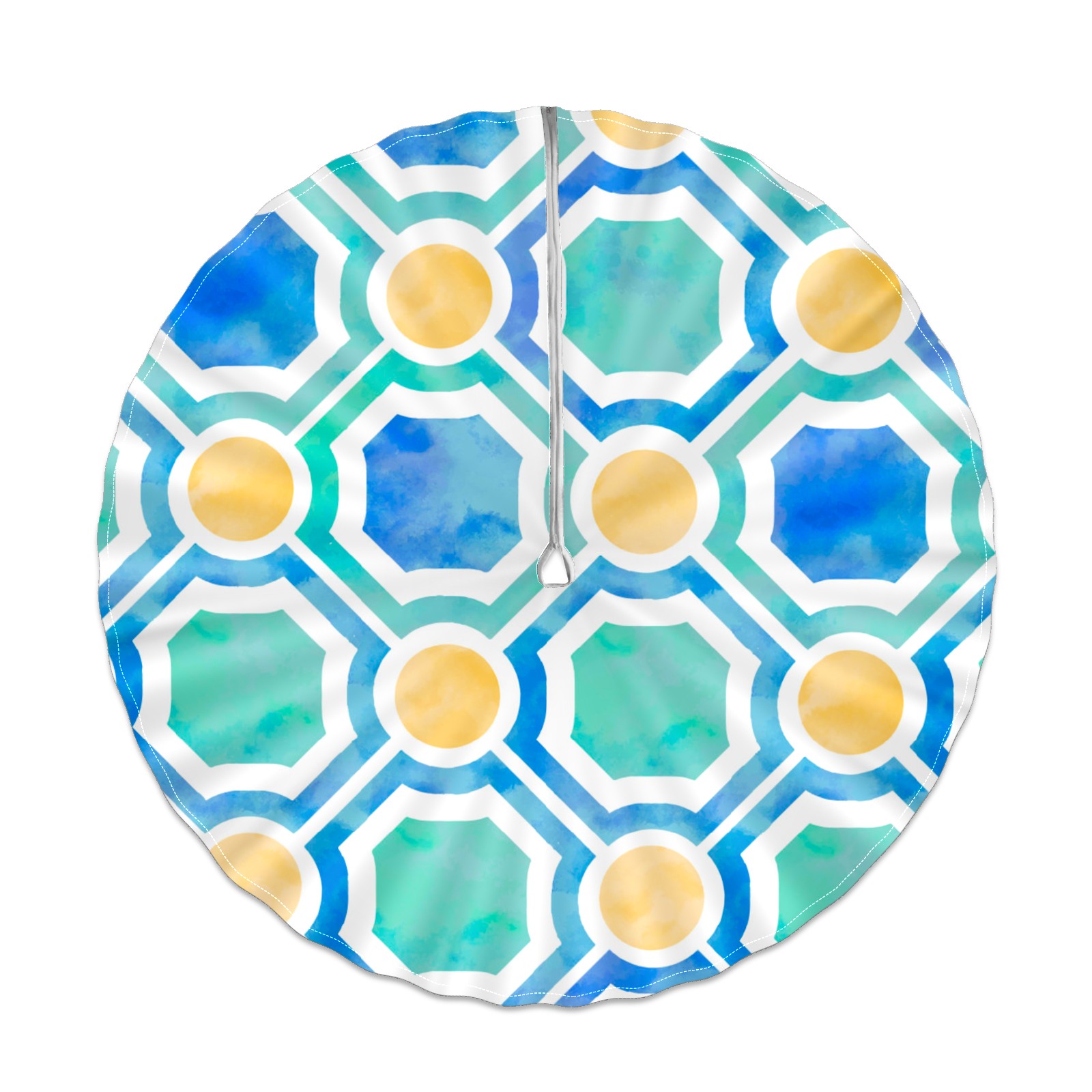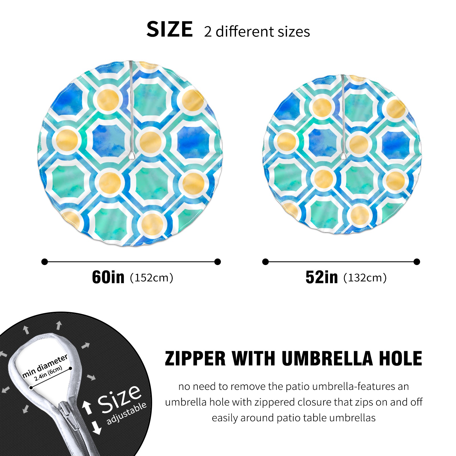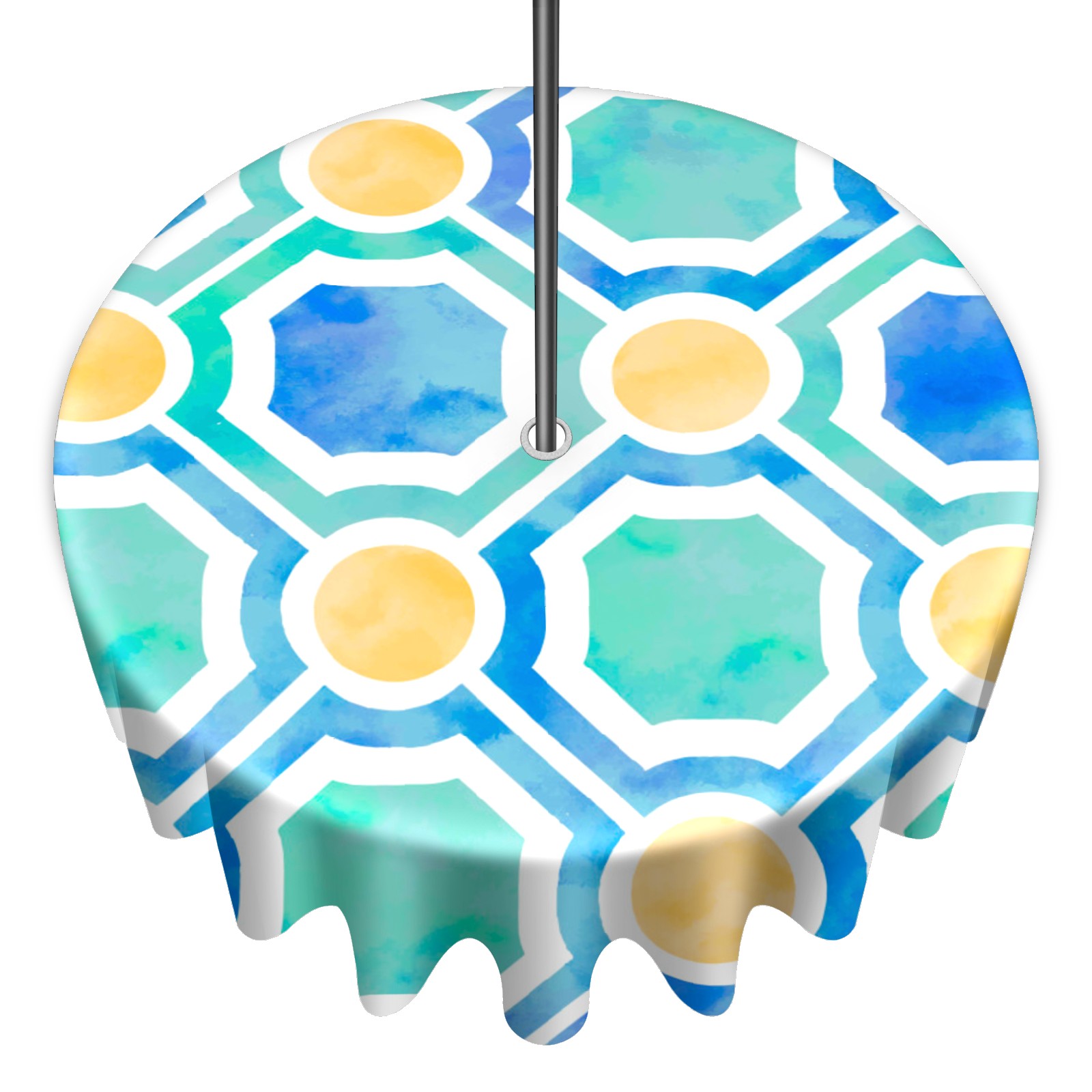 Round Tablecloth with Adjustable Zippered Hole - Durable Polyester for Patio, Restaurant & Outdoor Dining Geometric Blue (60in)