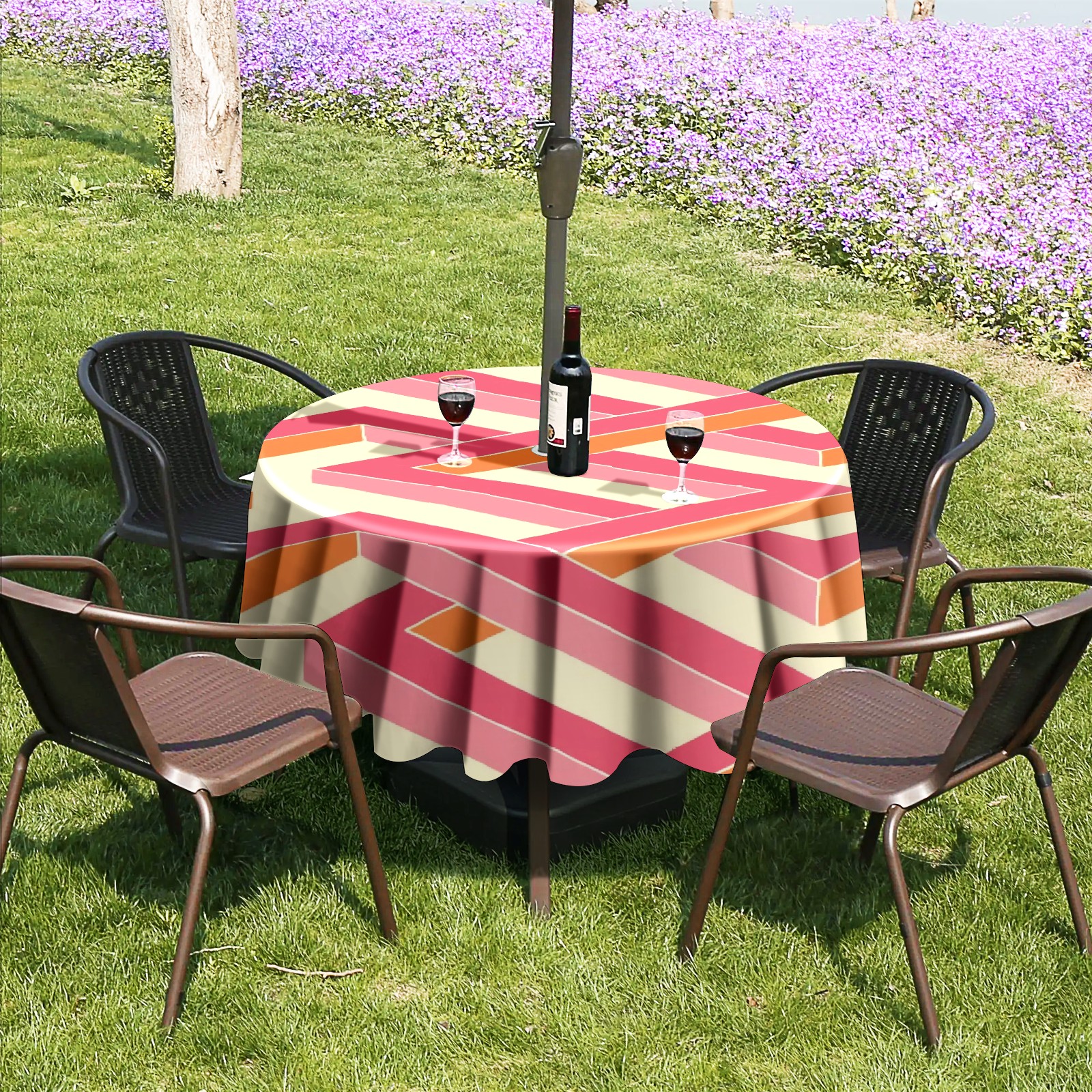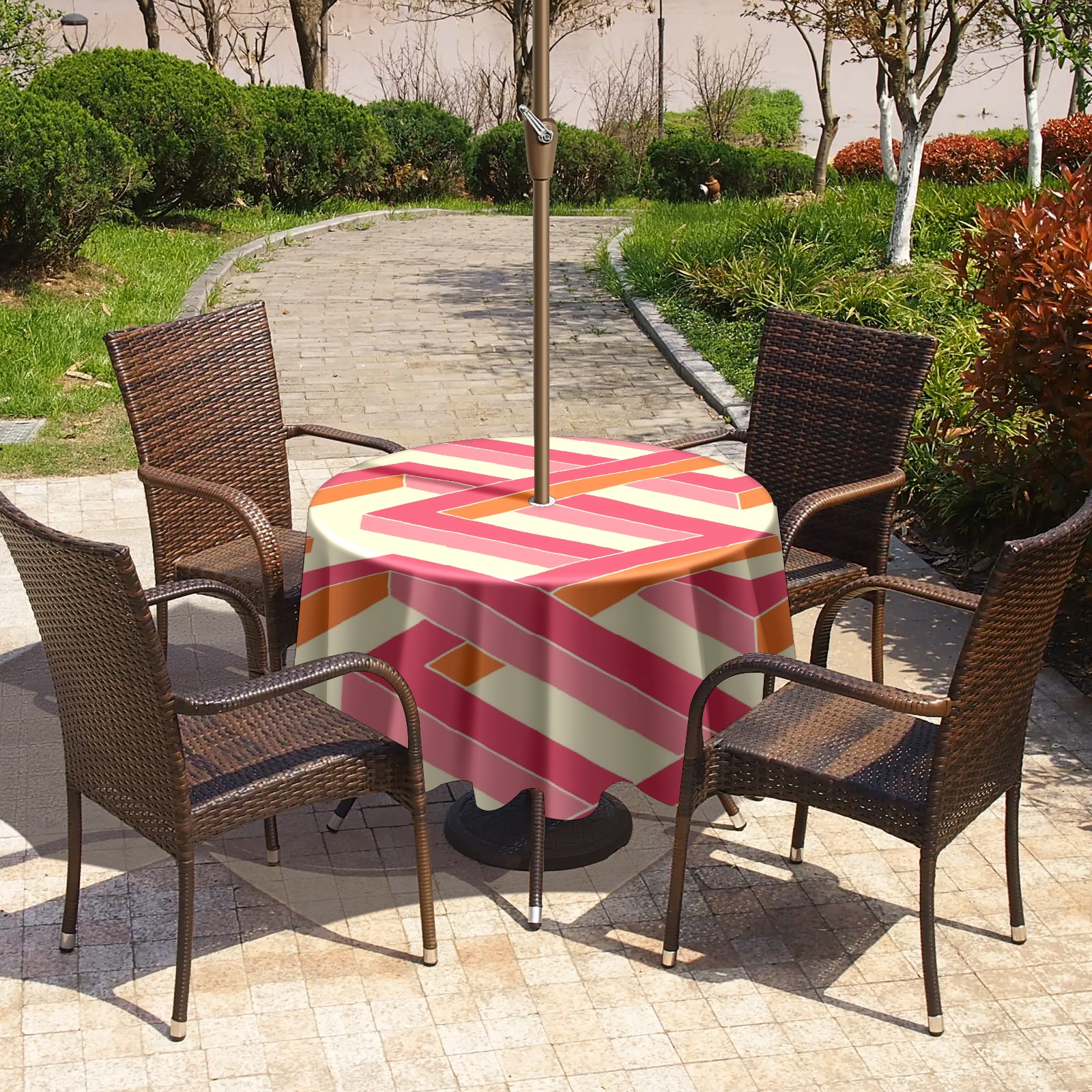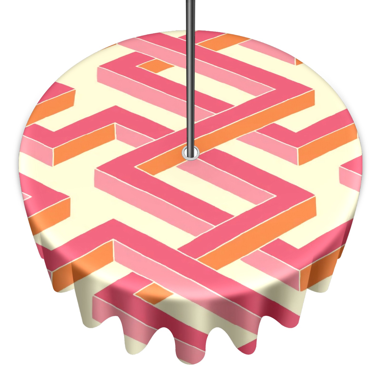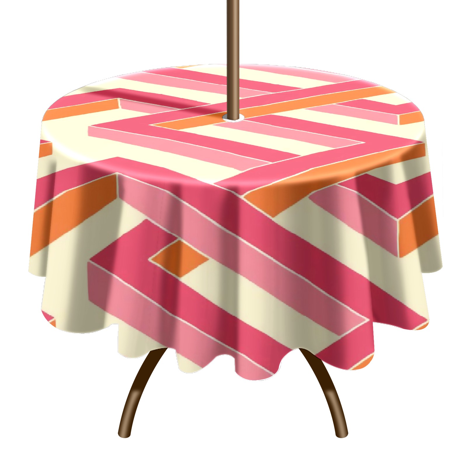 Round Tablecloth with Adjustable Zippered Hole - Durable Polyester for Patio, Restaurant & Outdoor Dining Pink Geometry (60in)