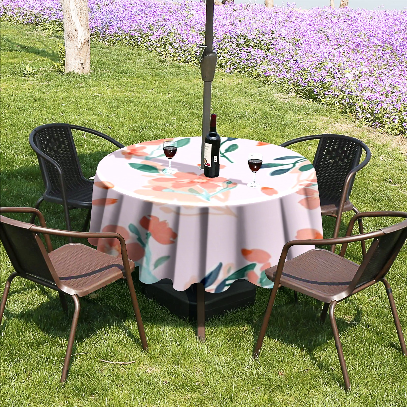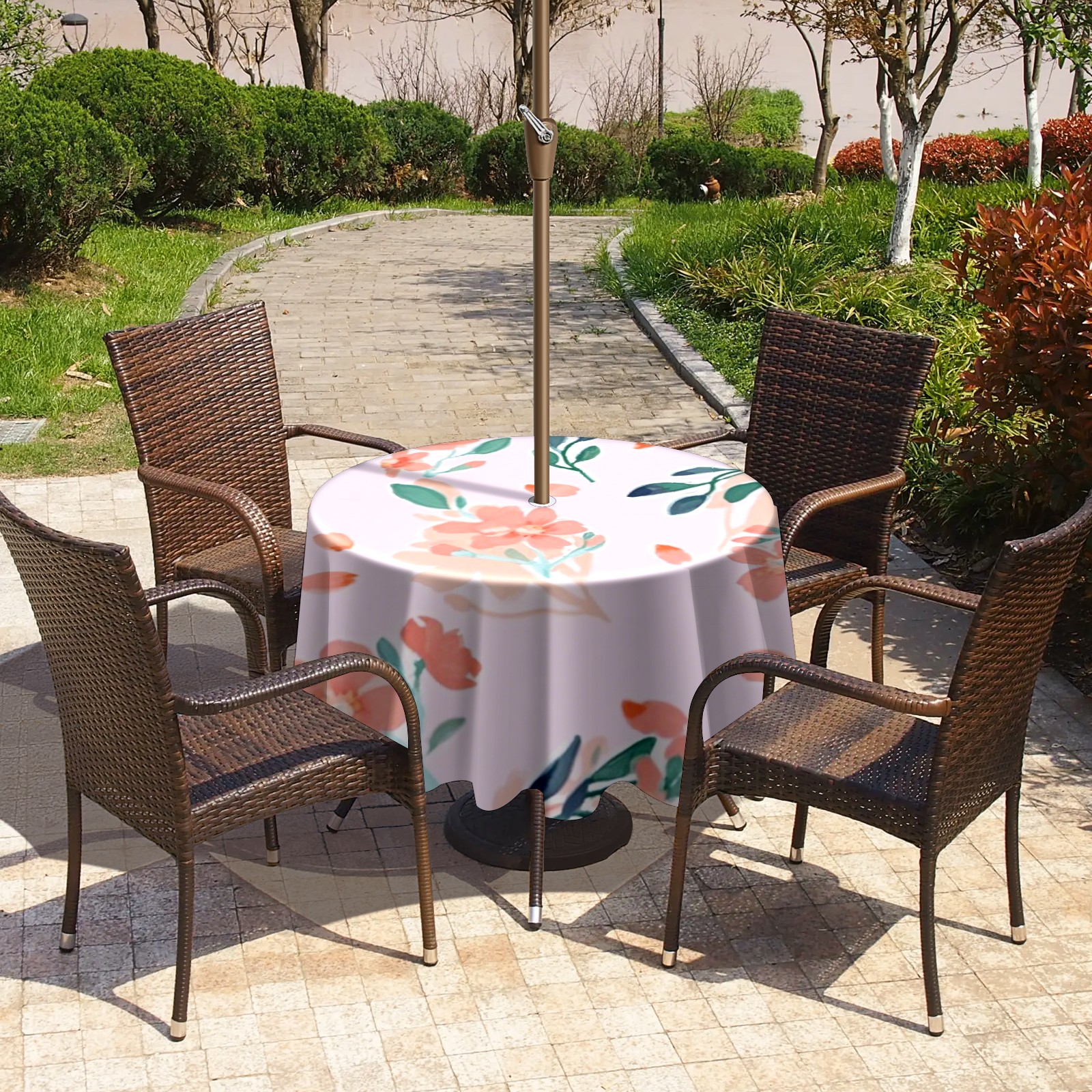 • <p>Constructed with heavy-duty polyester fabric, this tablecloth withstands outdoor wear while maintaining a clean appearance. The adjustable zipper hole accommodates umbrella poles of varying thickness, allowing installation without disassembling the umbrella stand.</p> <p>Ideal for backyard BBQs or cafe patios, this tablecloth elevates table presentation instantly. Available in two classic sizes, the precision circular cut ensures full table coverage. </p> <p>Machine washable in cold water without color fading or shape distortion. The lightweight fabric folds compactly for space-efficient storage between uses.</p>