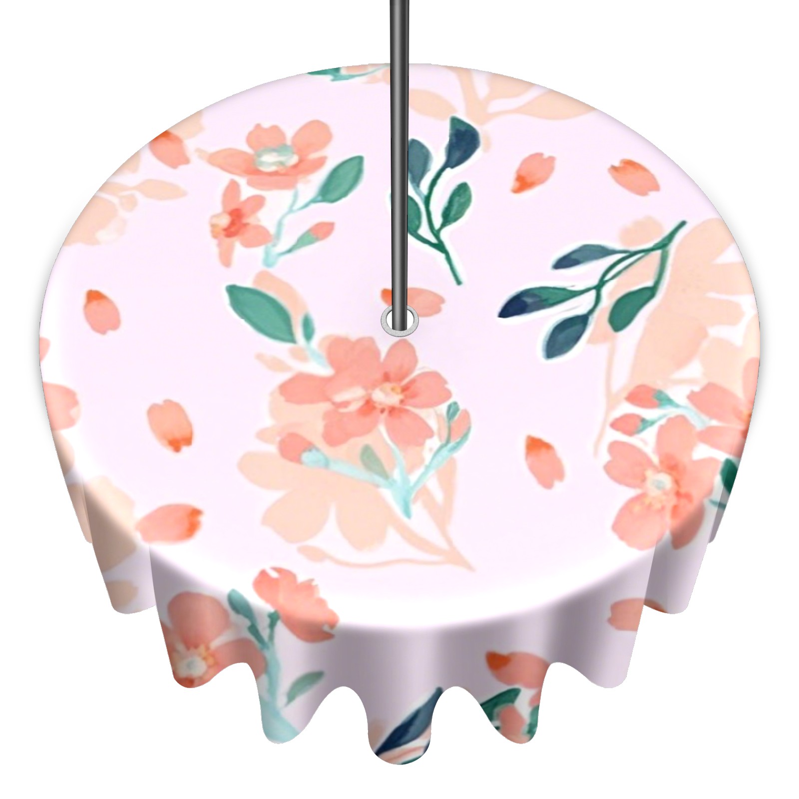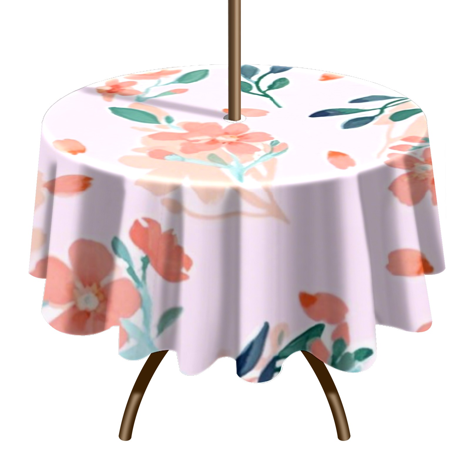 Round Tablecloth with Adjustable Zippered Hole - Durable Polyester for Patio, Restaurant & Outdoor Dining Peach Flowers (60in)