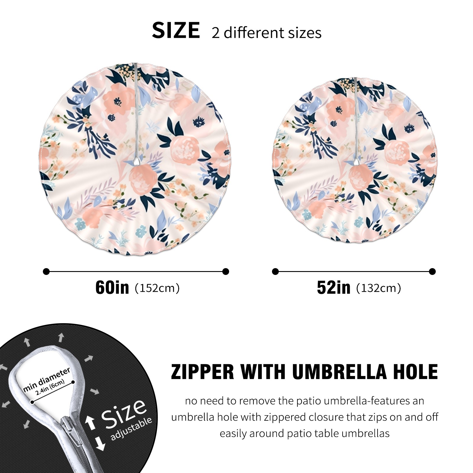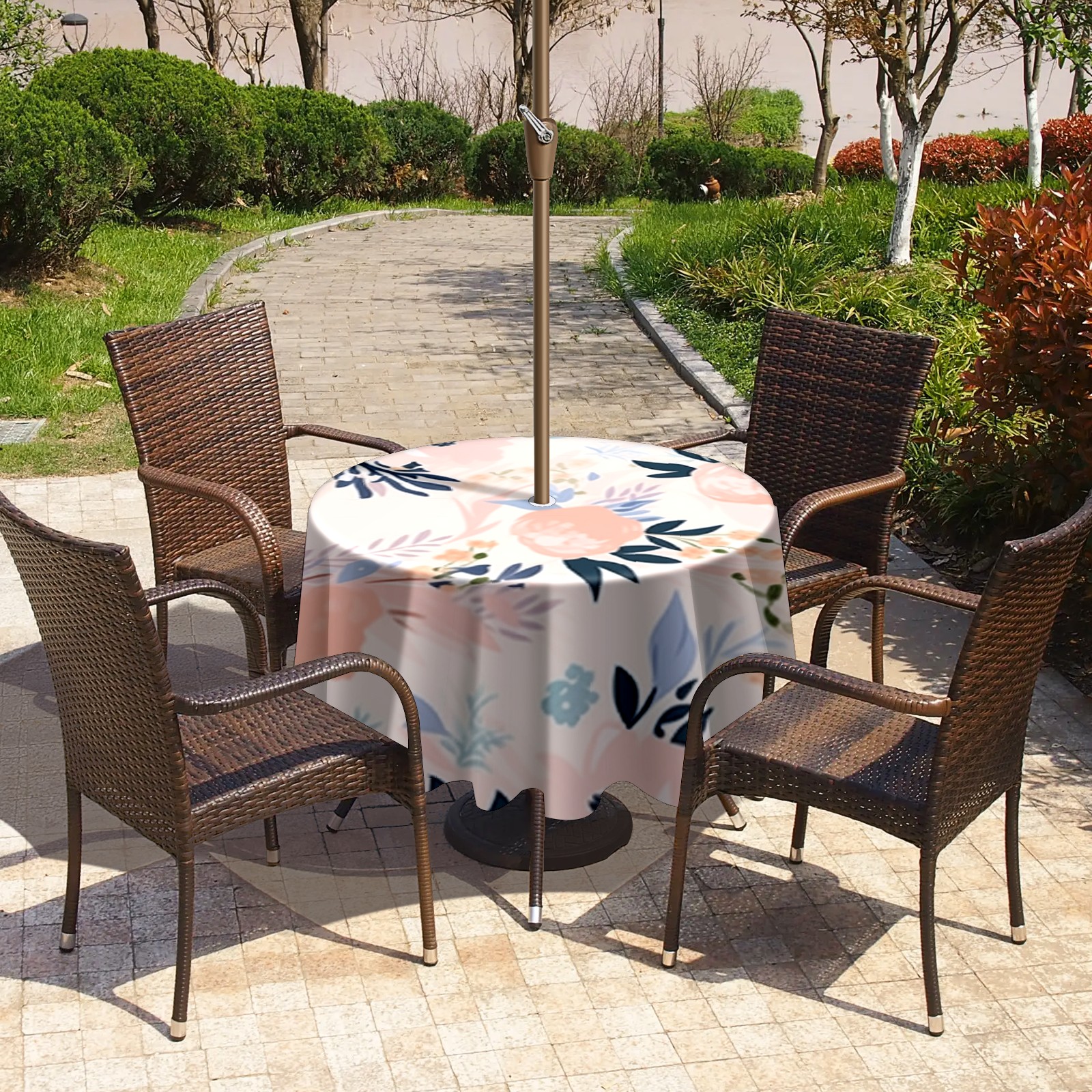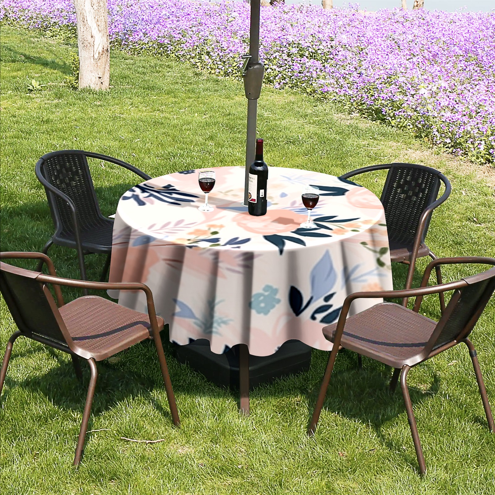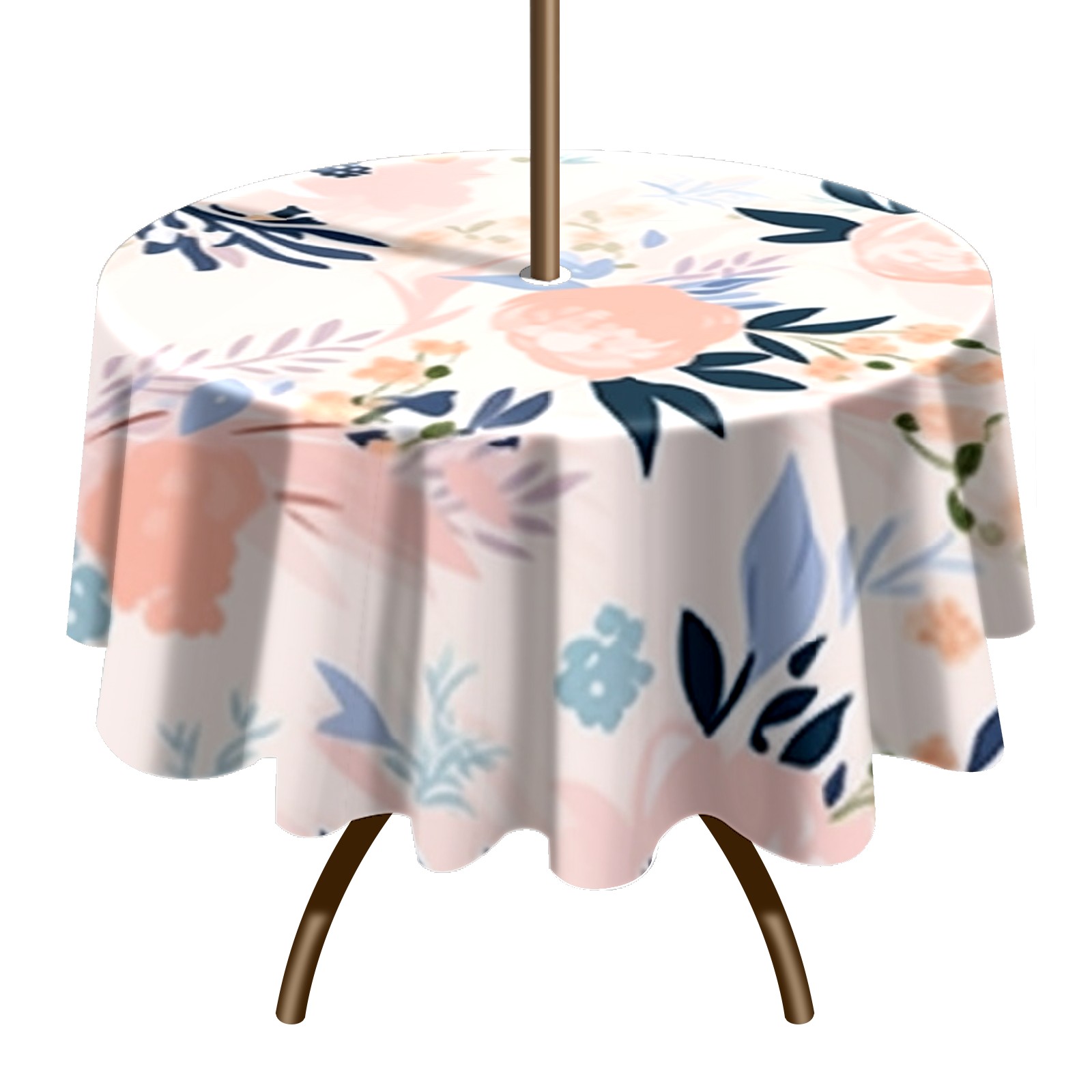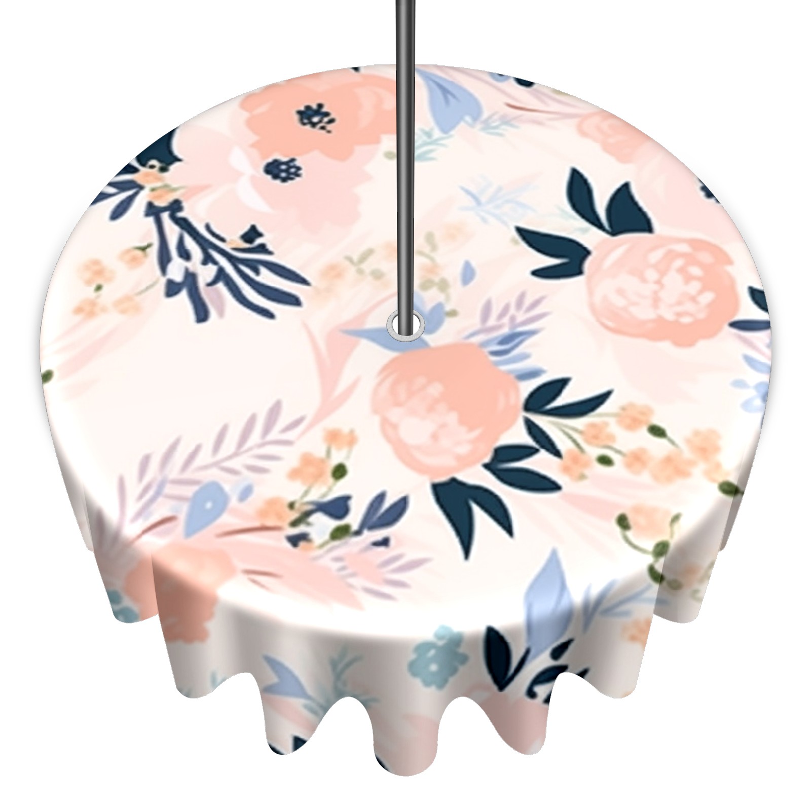 Round Tablecloth with Adjustable Zippered Hole - Durable Polyester for Patio, Restaurant & Outdoor Dining Light Pink Flowers (60in)