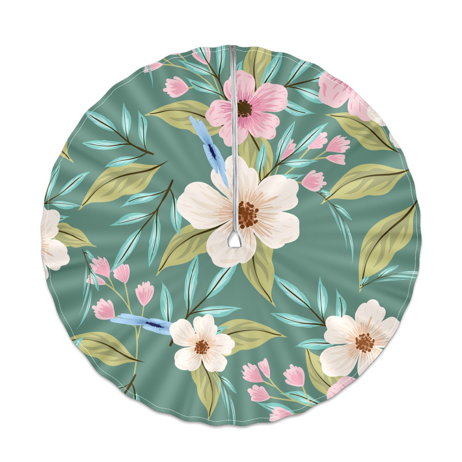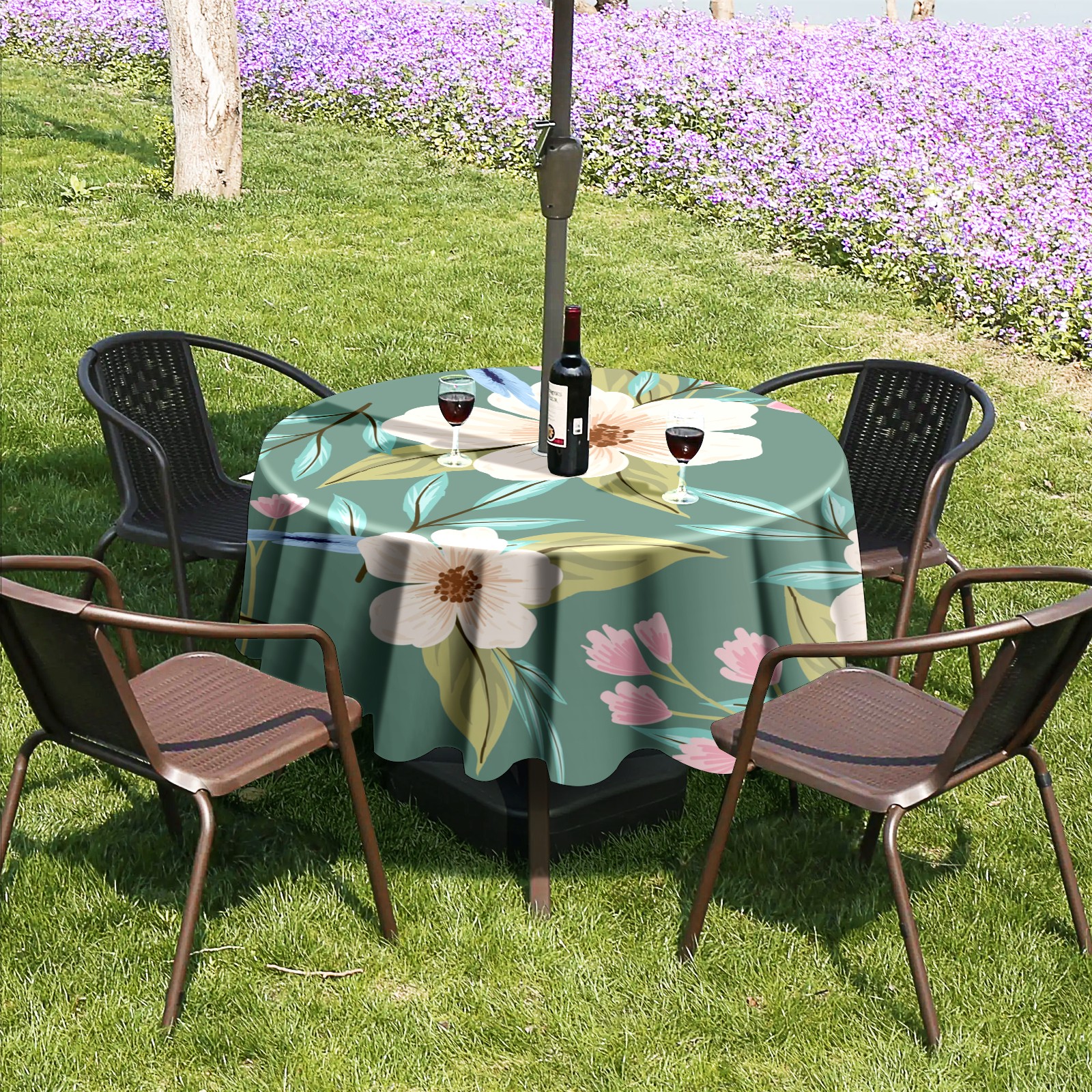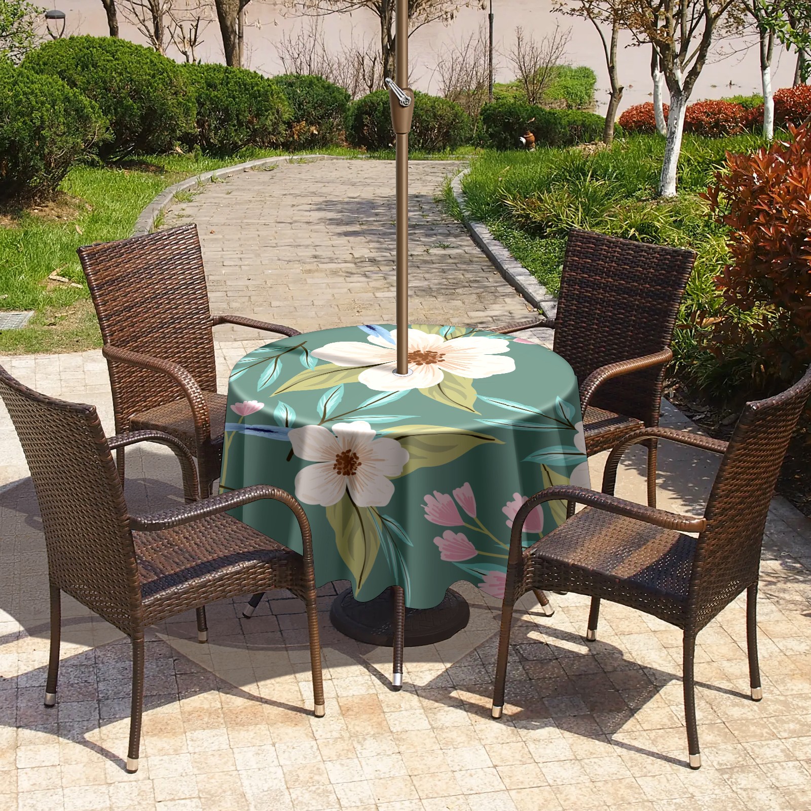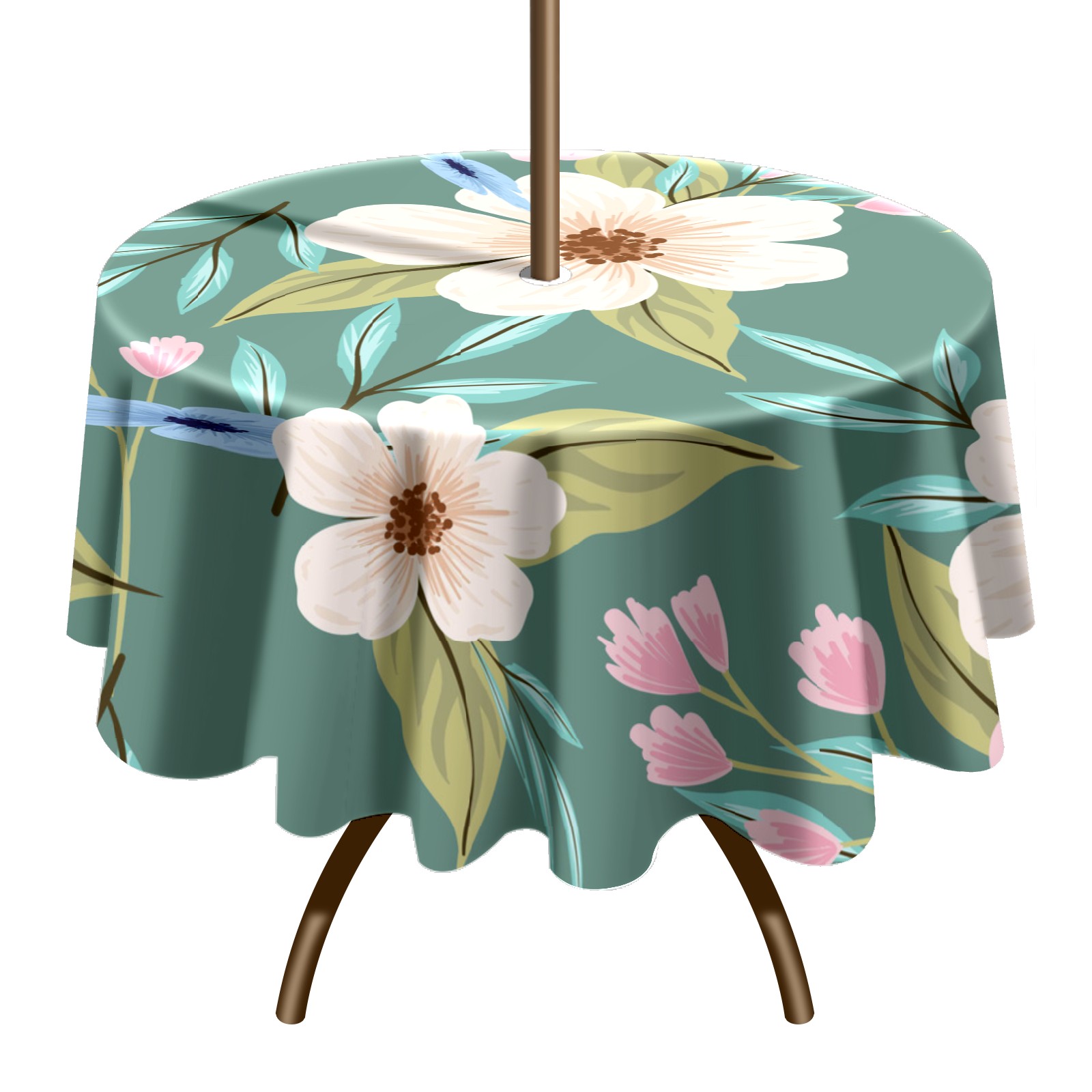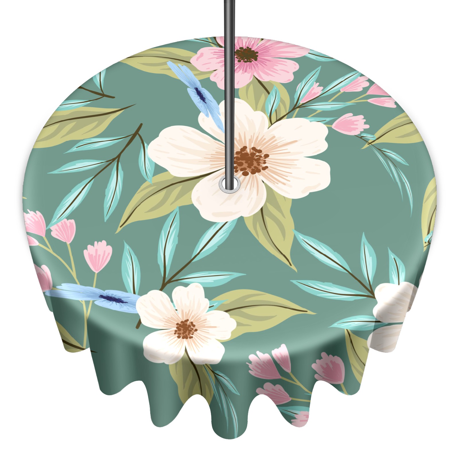 Round Tablecloth with Adjustable Zippered Hole - Durable Polyester for Patio, Restaurant & Outdoor Dining Natural Colorful Painted Flowers (60in)