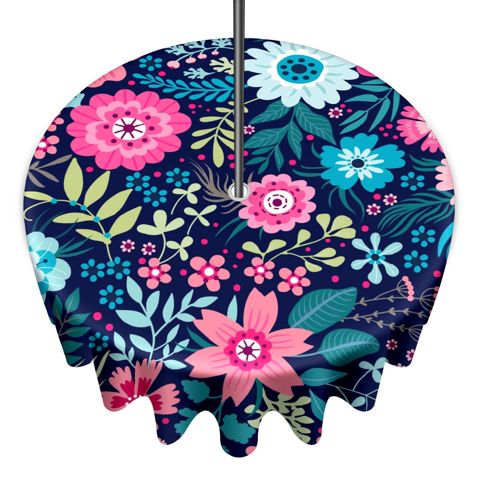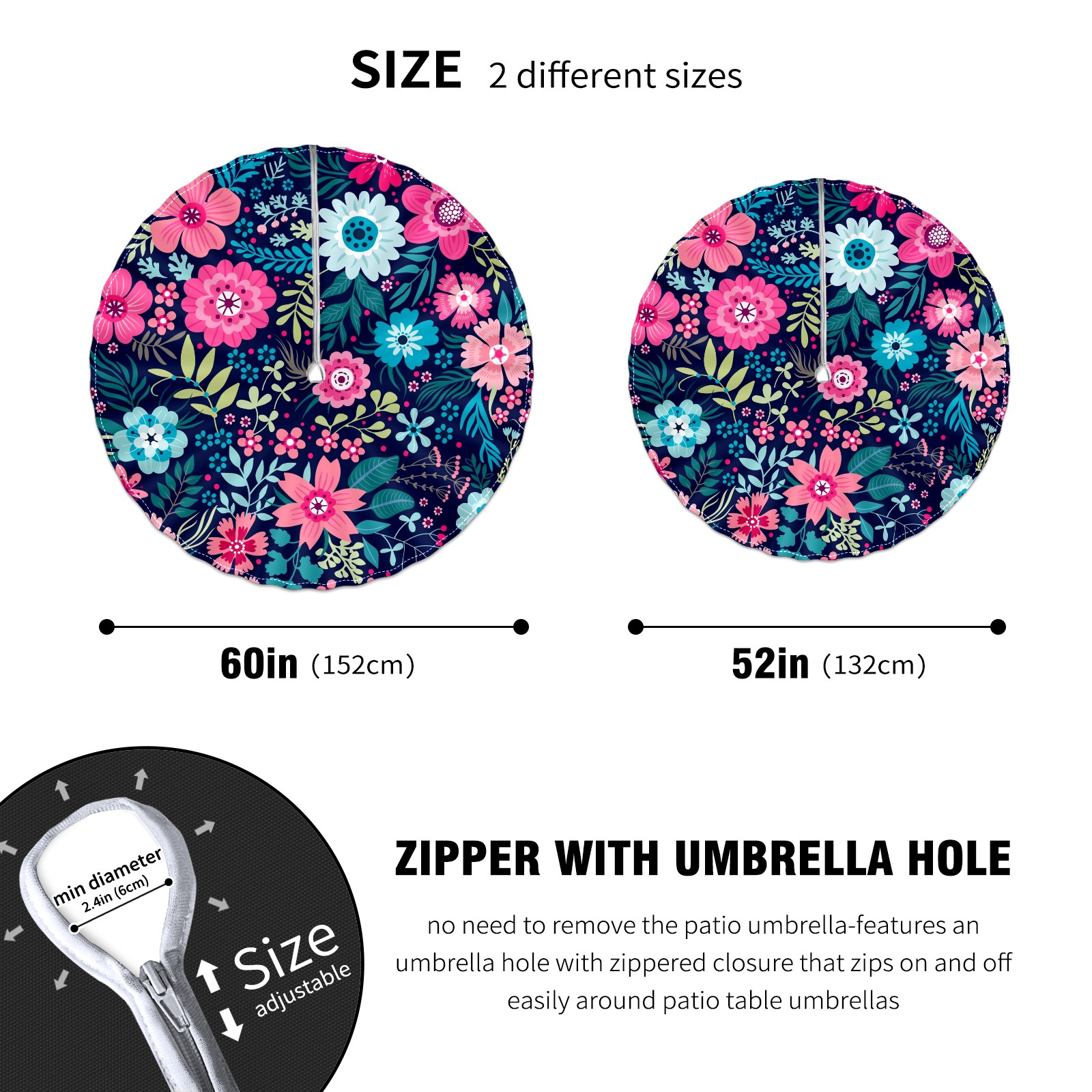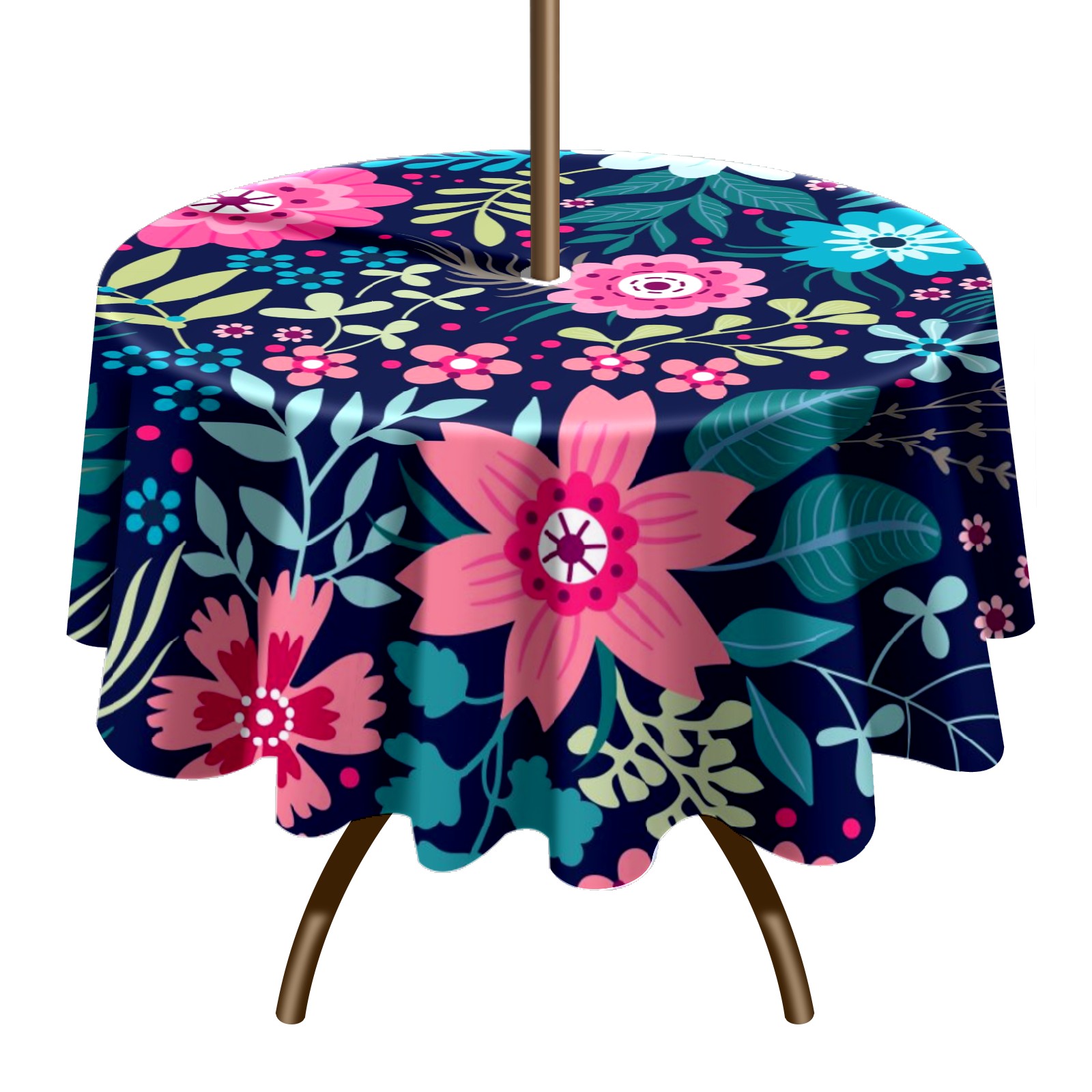 Round Tablecloth with Adjustable Zippered Hole - Durable Polyester for Patio, Restaurant & Outdoor Dining Bright Flowers (60in)