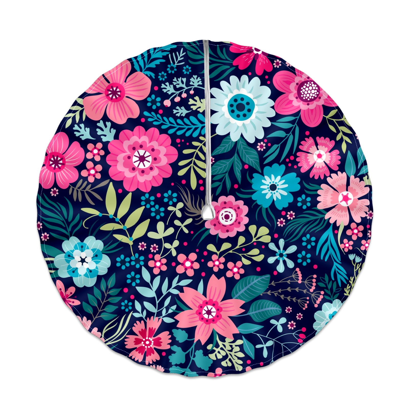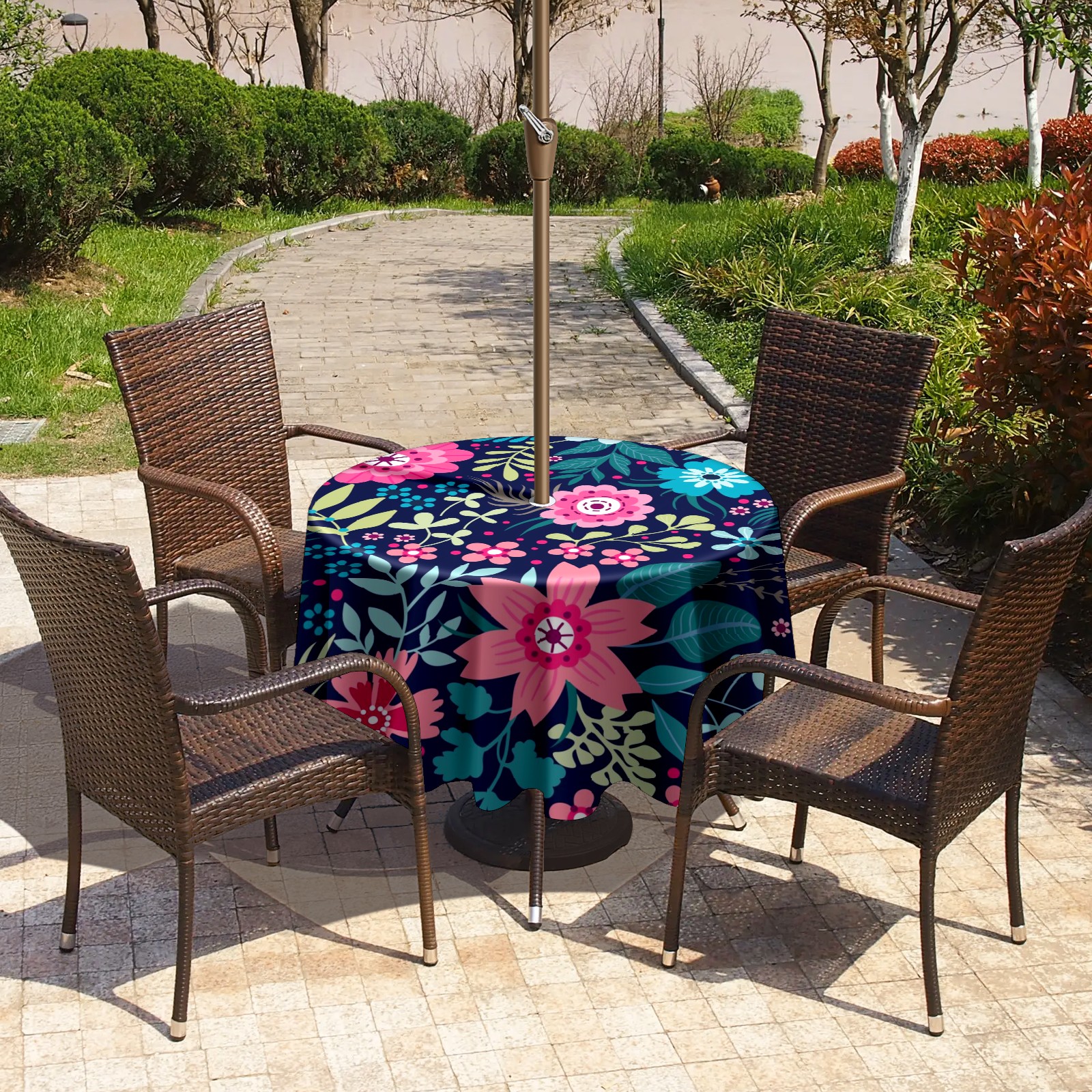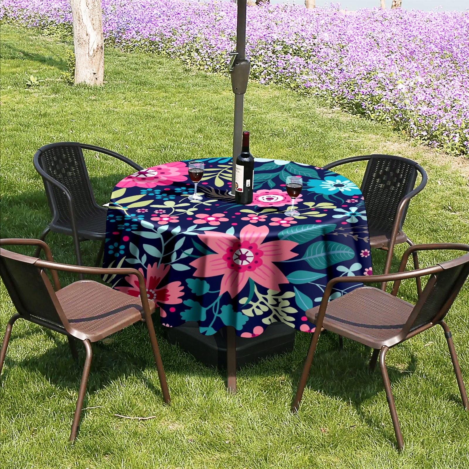 Round Tablecloth with Adjustable Zippered Hole - Durable Polyester for Patio, Restaurant & Outdoor Dining Bright Flowers (60in)