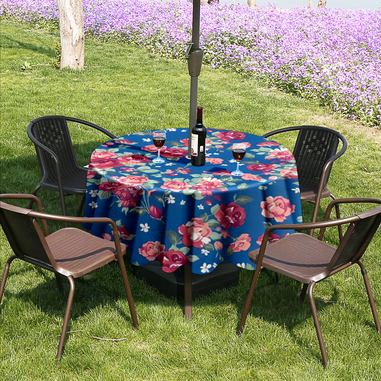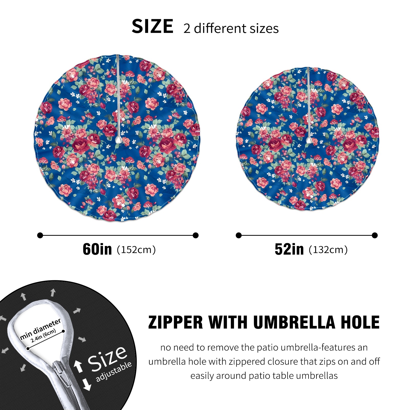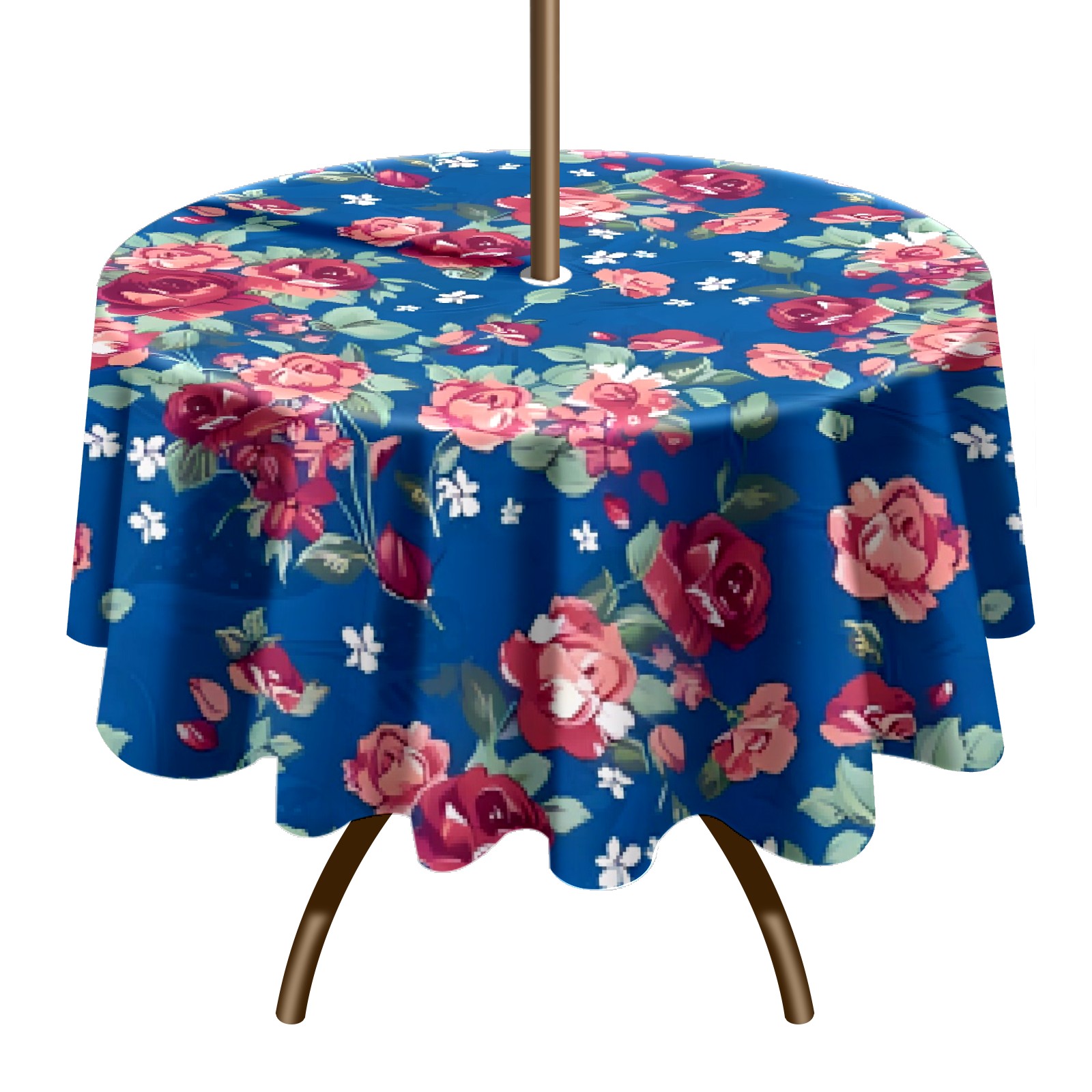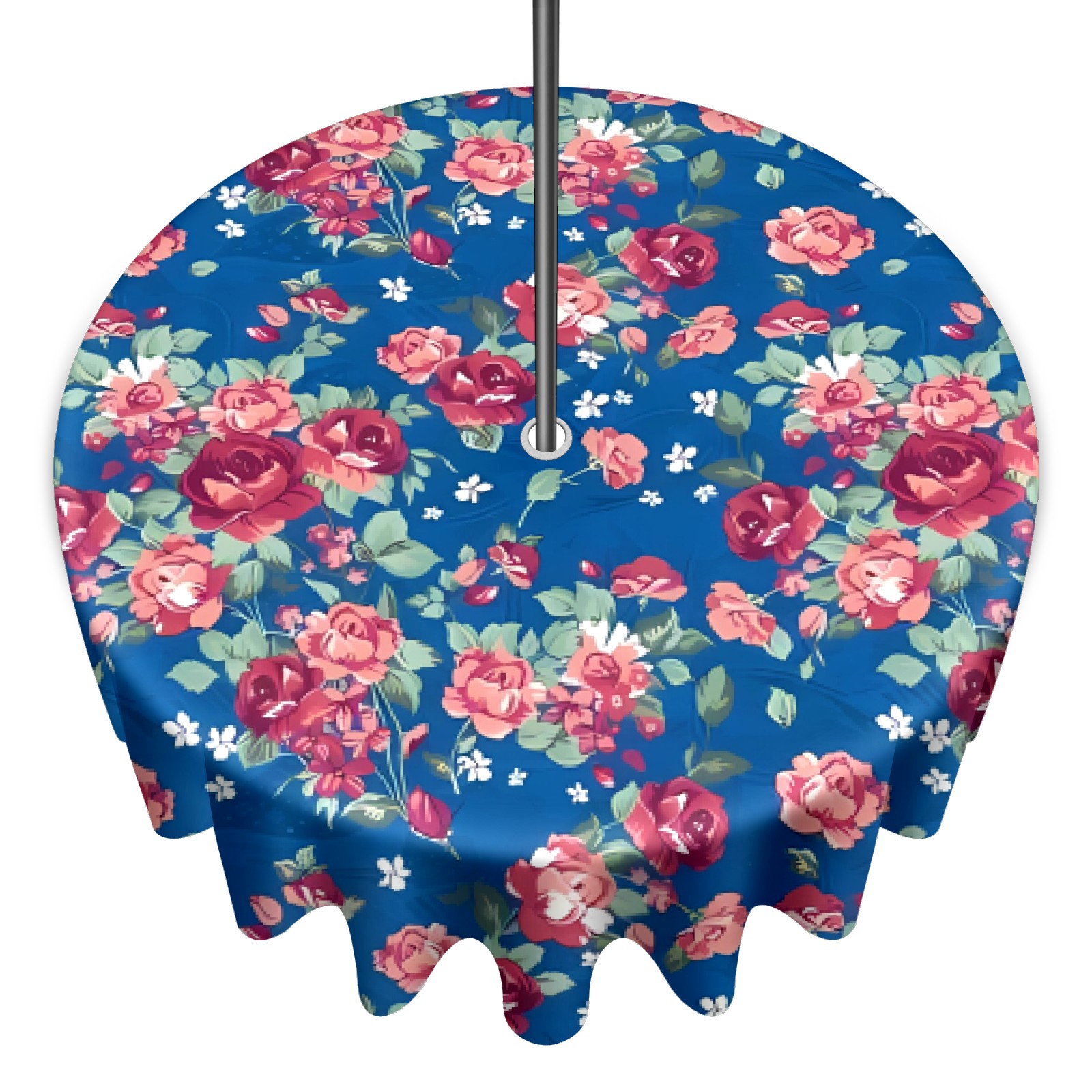 Round Tablecloth with Adjustable Zippered Hole - Durable Polyester for Patio, Restaurant & Outdoor Dining Colorful Flowers (60in)