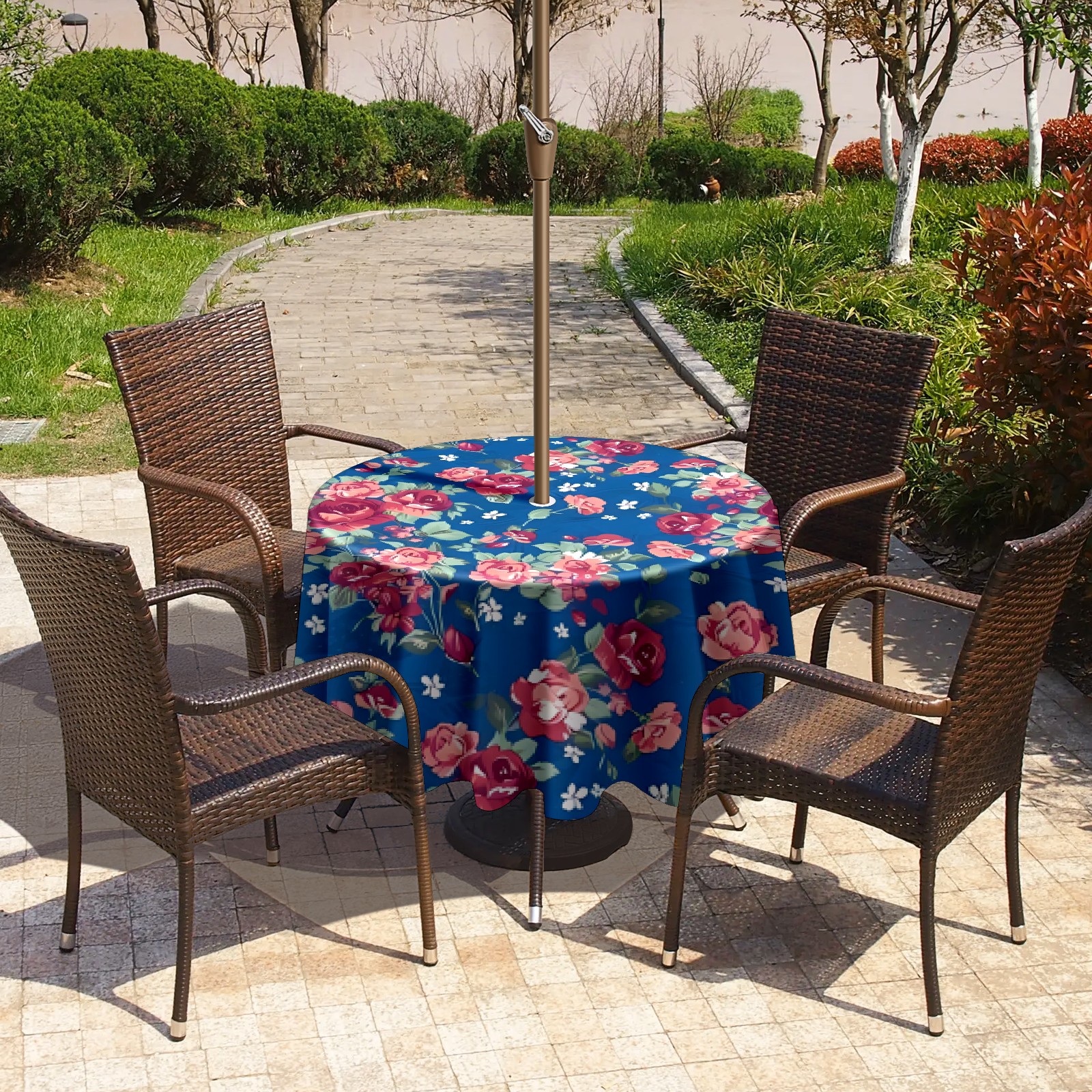 • <p>Constructed with heavy-duty polyester fabric, this tablecloth withstands outdoor wear while maintaining a clean appearance. The adjustable zipper hole accommodates umbrella poles of varying thickness, allowing installation without disassembling the umbrella stand.</p> <p>Ideal for backyard BBQs or cafe patios, this tablecloth elevates table presentation instantly. Available in two classic sizes, the precision circular cut ensures full table coverage. </p> <p>Machine washable in cold water without color fading or shape distortion. The lightweight fabric folds compactly for space-efficient storage between uses.</p>