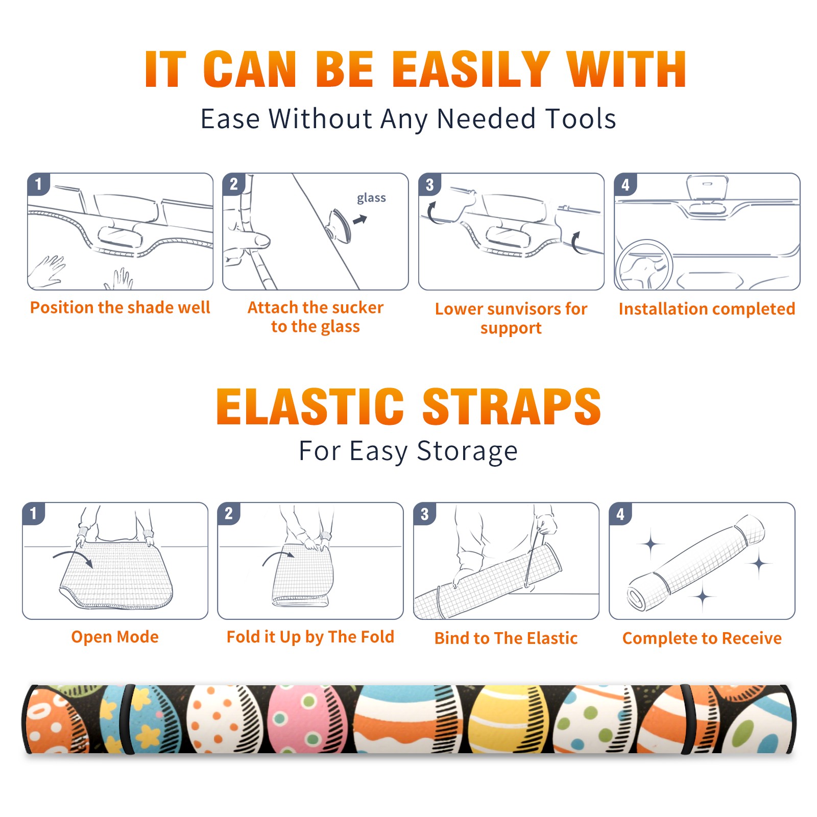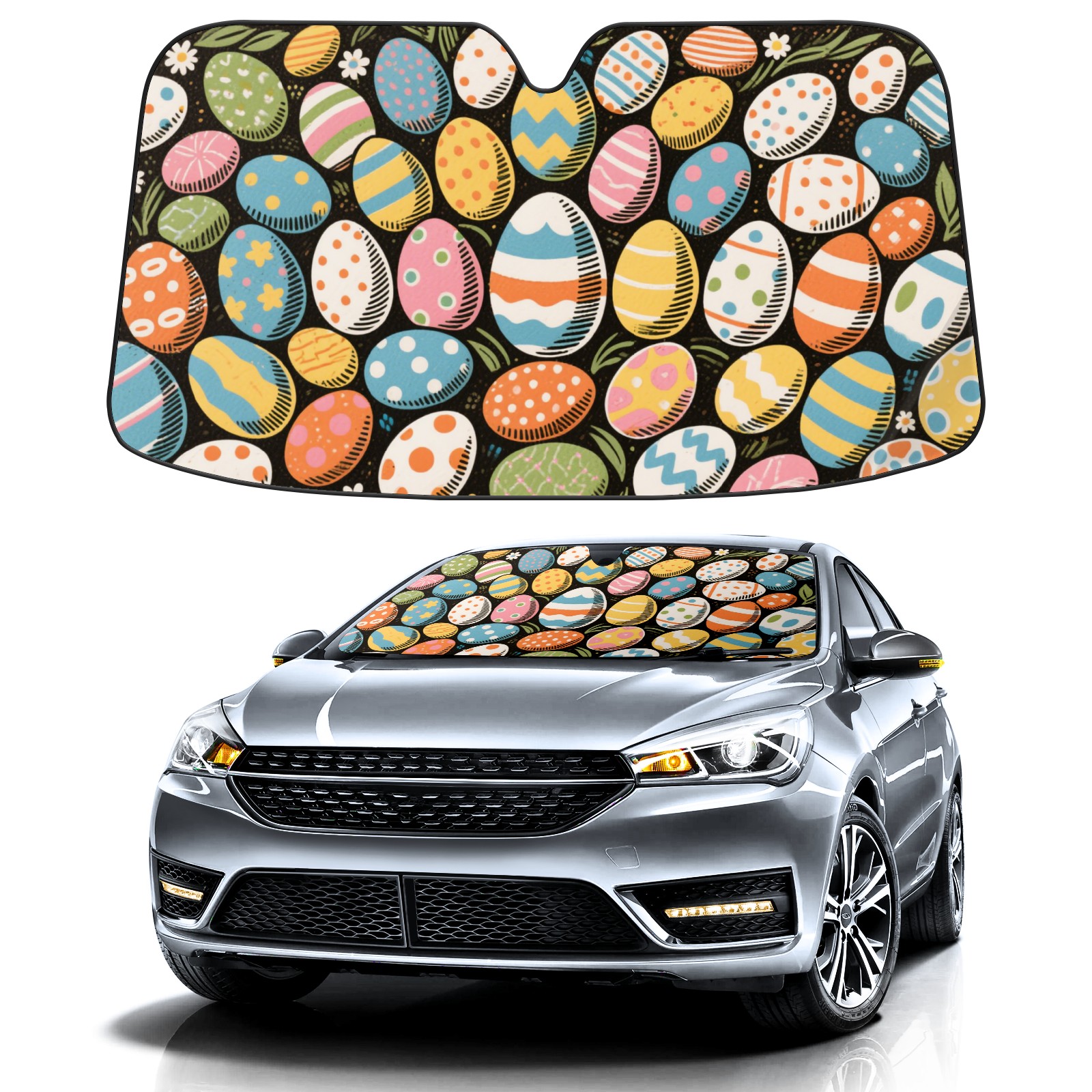 Easter Theme (11) Car Sun Shade UV Protection Foldable Sunshade for Windshield Heat Insulation Portable Sun Shield for Car Interior Protection Automotive Window Protector