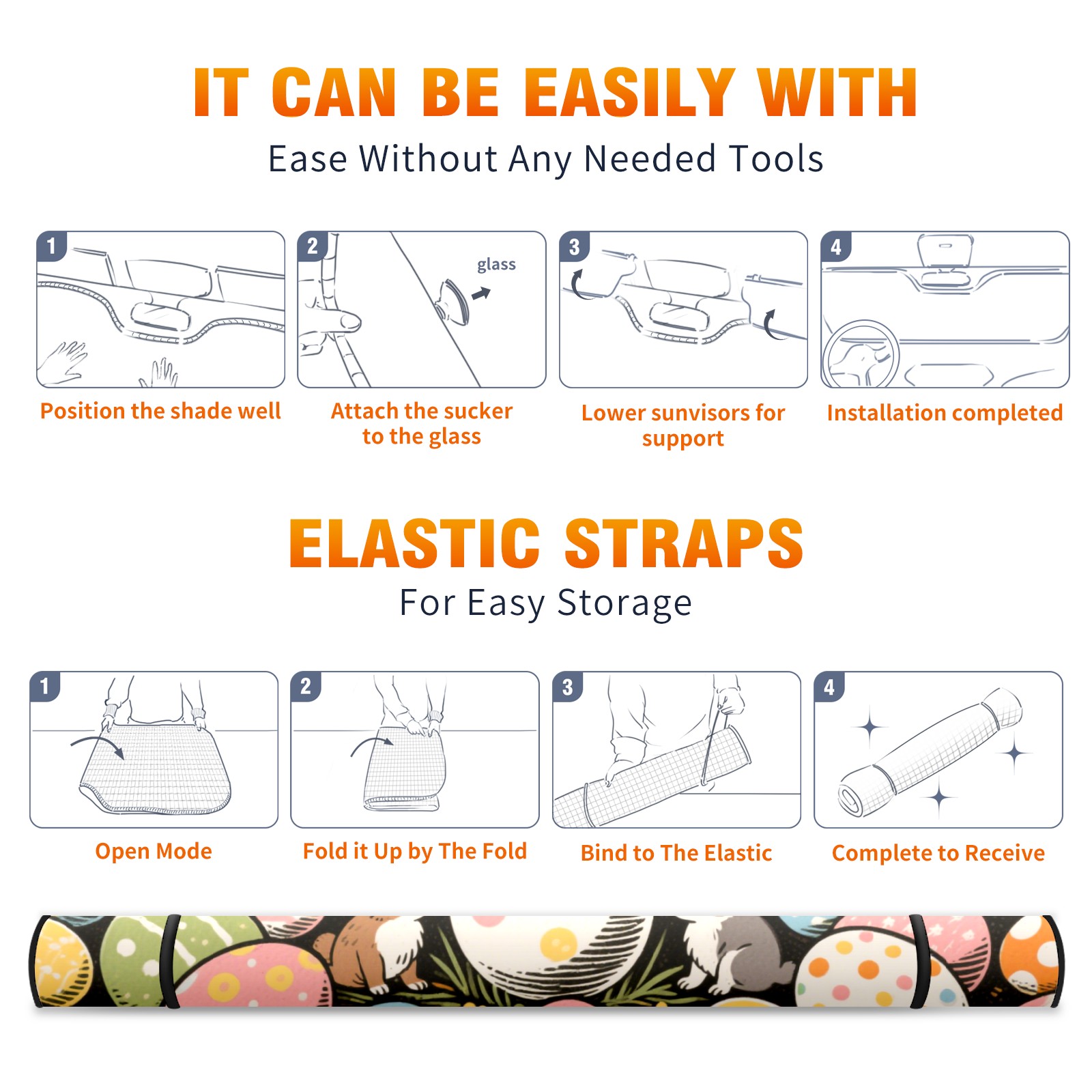 Easter Theme (10) Car Sun Shade UV Protection Foldable Sunshade for Windshield Heat Insulation Portable Sun Shield for Car Interior Protection Automotive Window Protector