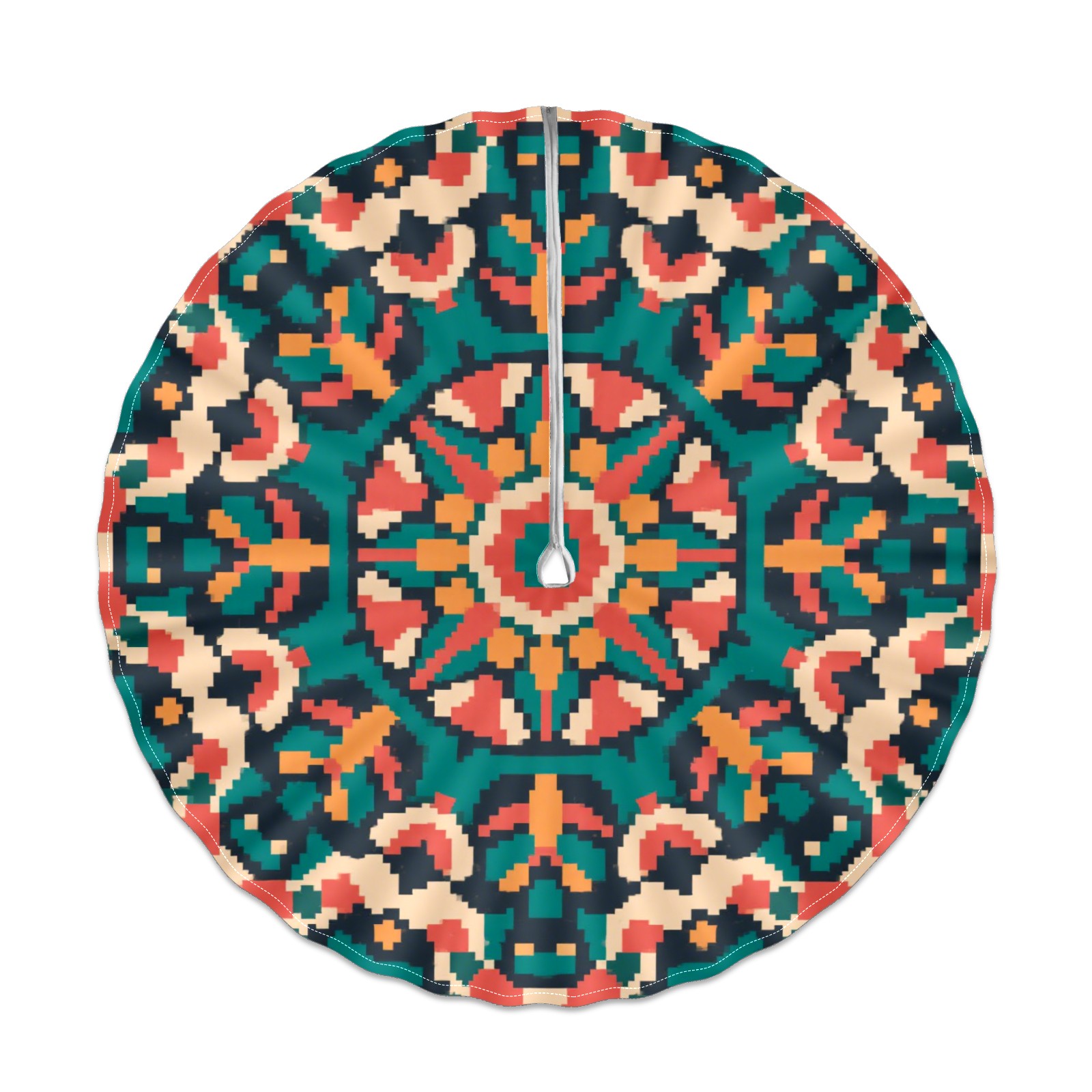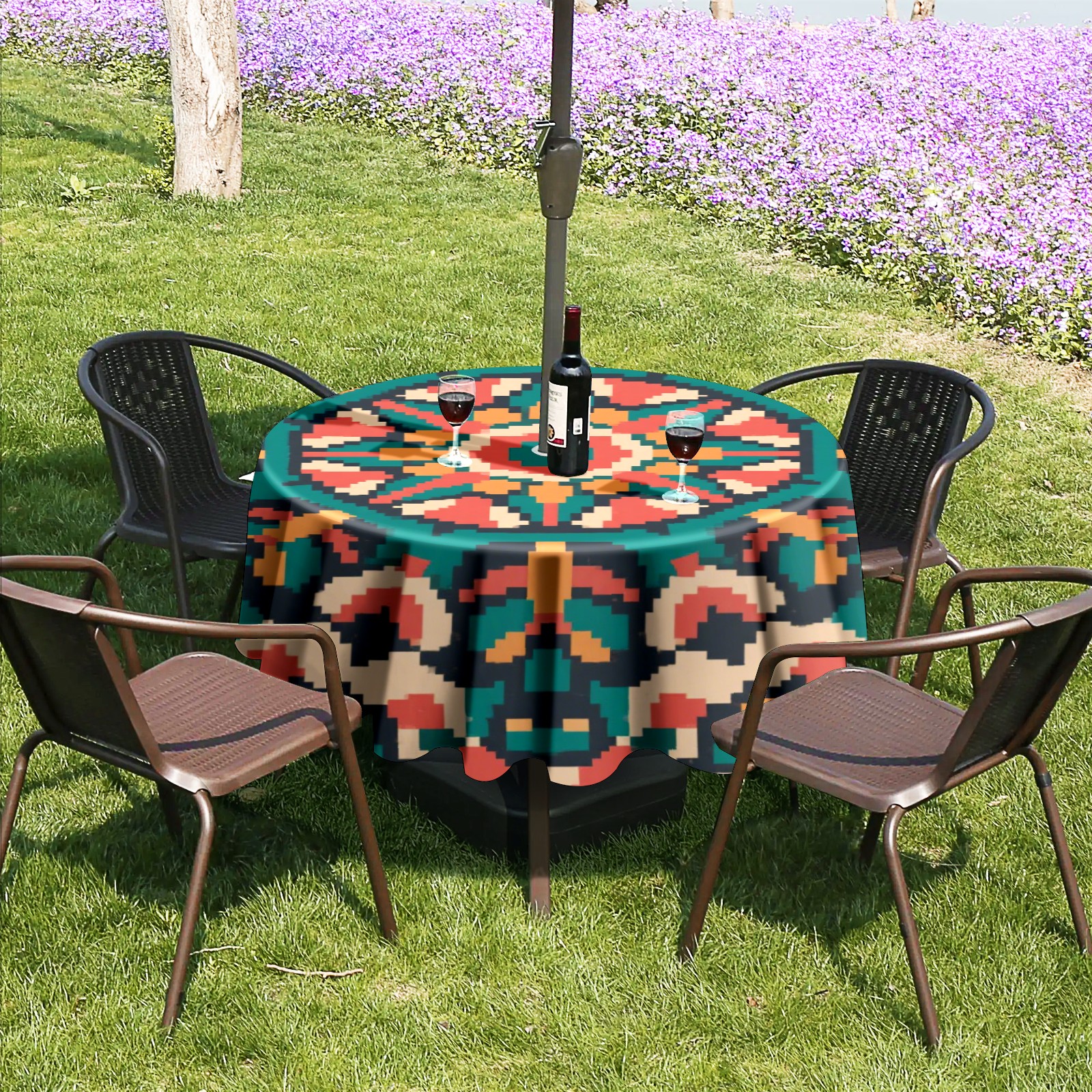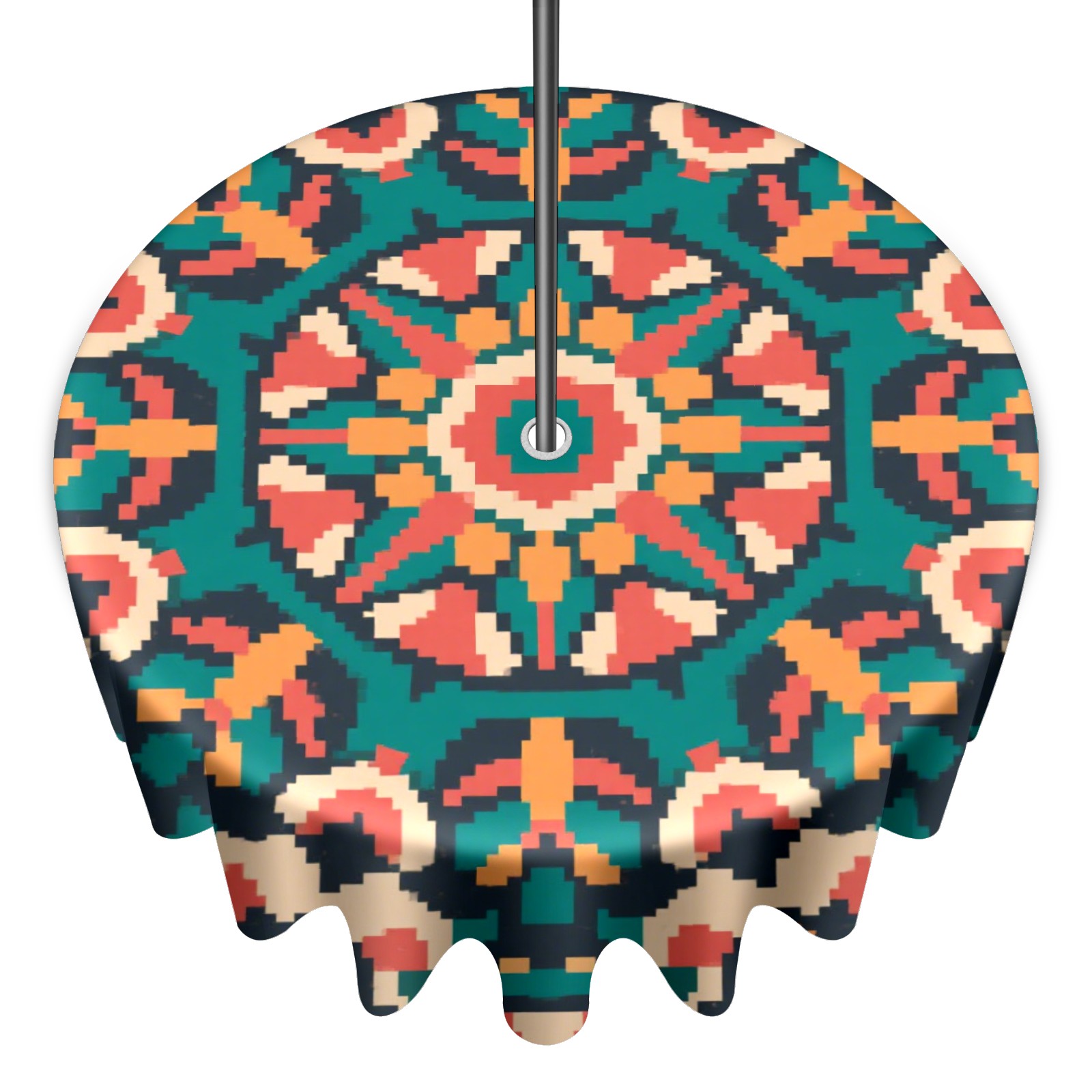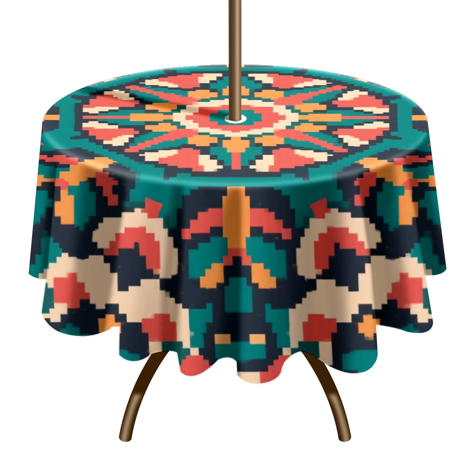Round Tablecloth with Adjustable Zippered Hole - Durable Polyester for Patio, Restaurant & Outdoor Dining Pixel Wind Symmetrical Pattern (60in)