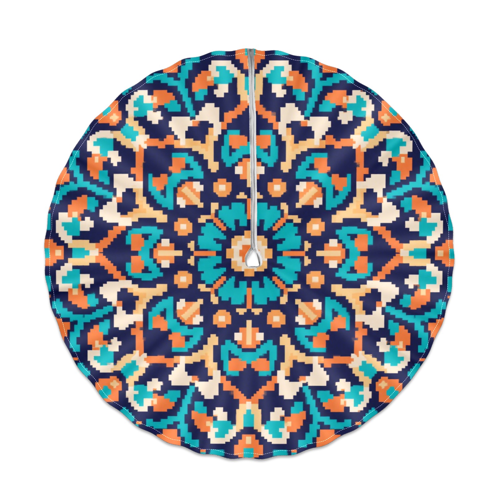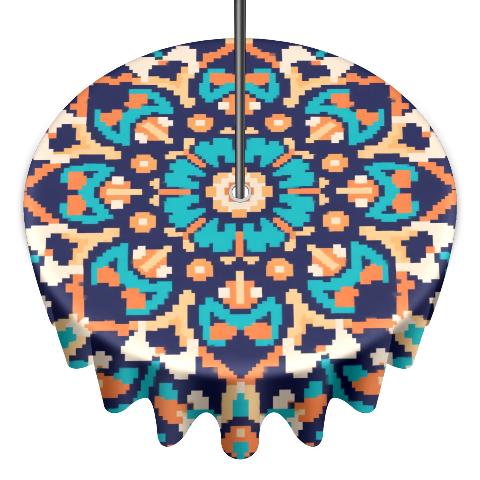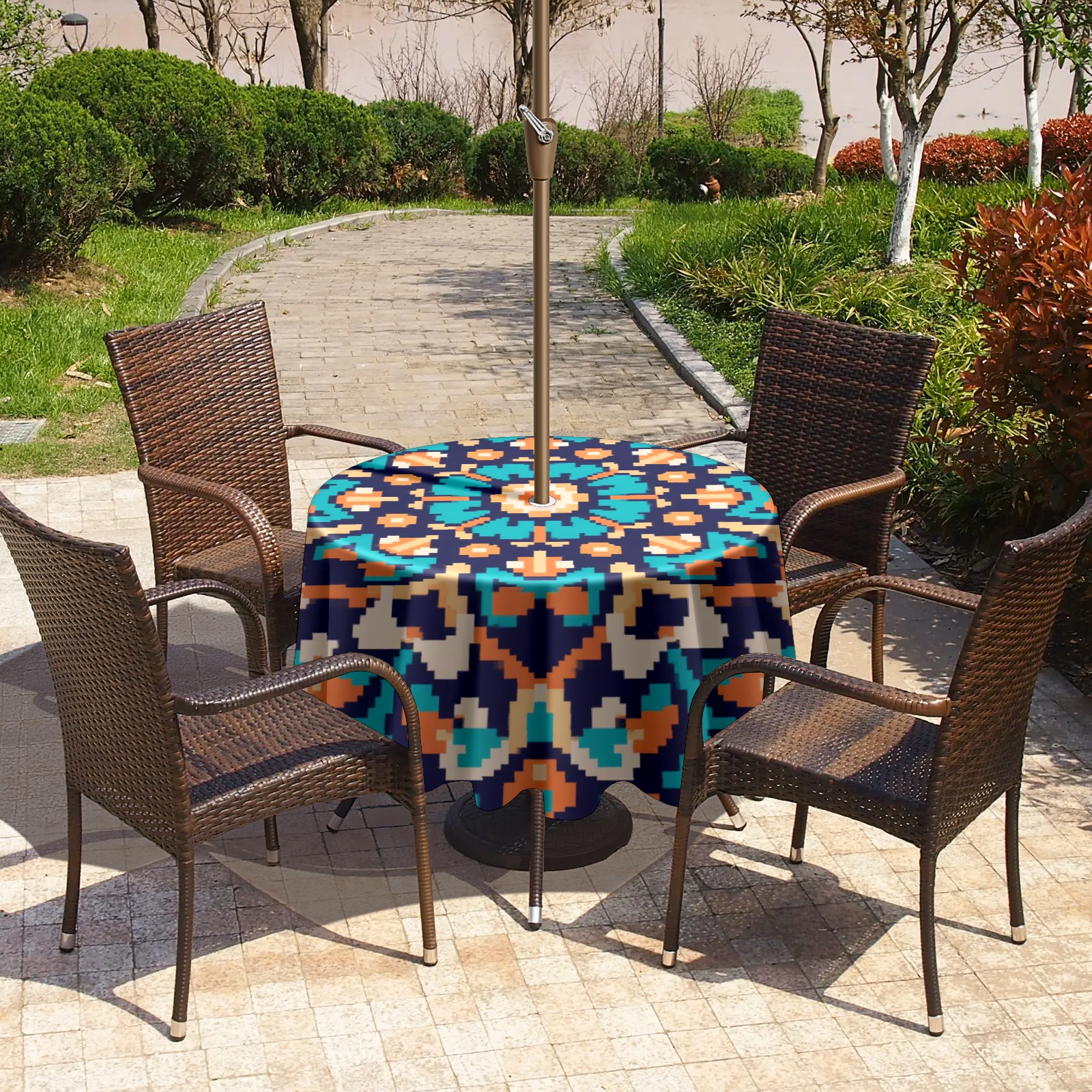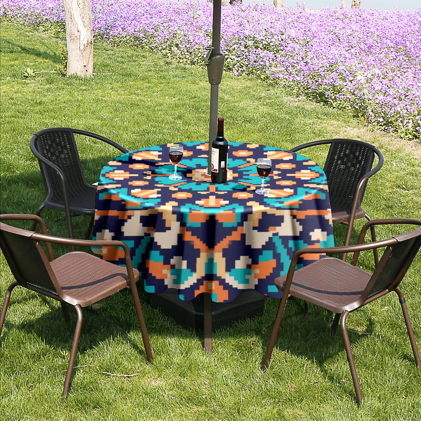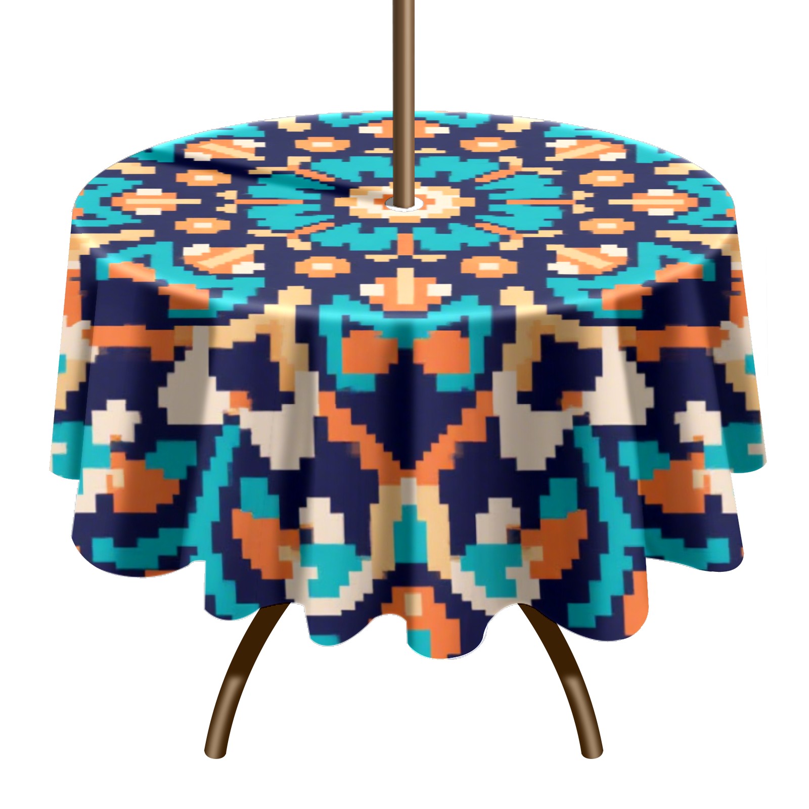 Round Tablecloth with Adjustable Zippered Hole - Durable Polyester for Patio, Restaurant & Outdoor Dining Pixel Wind Blue-green Pattern (60in)