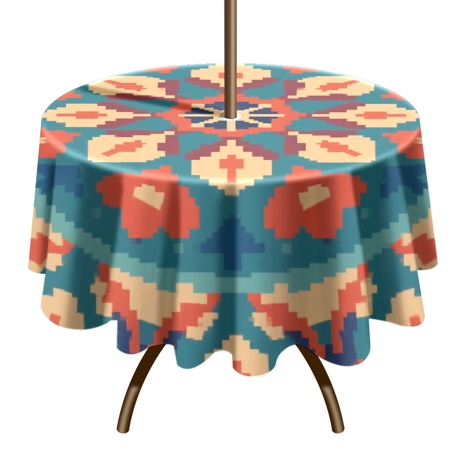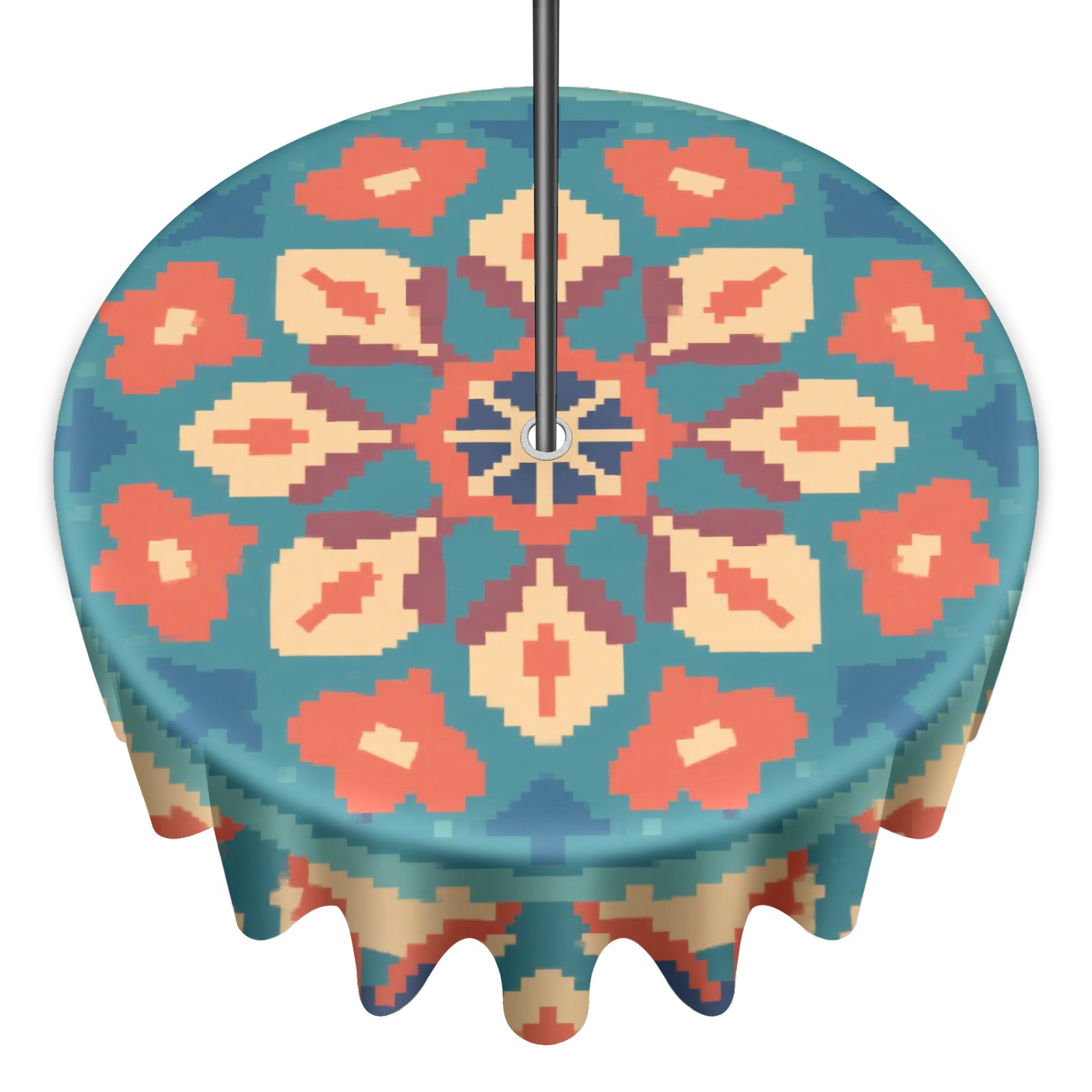 Round Tablecloth with Adjustable Zippered Hole - Durable Polyester for Patio, Restaurant & Outdoor Dining Pixel Style Green Pattern (60in)