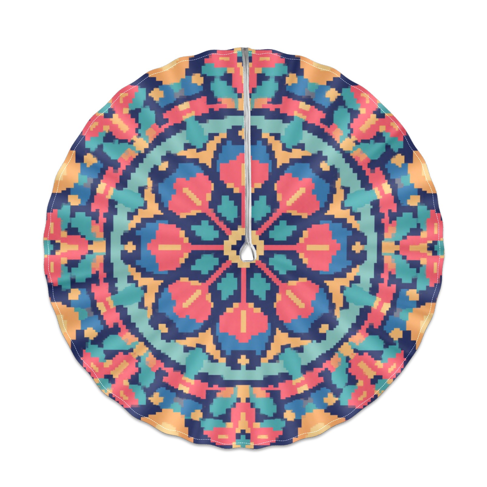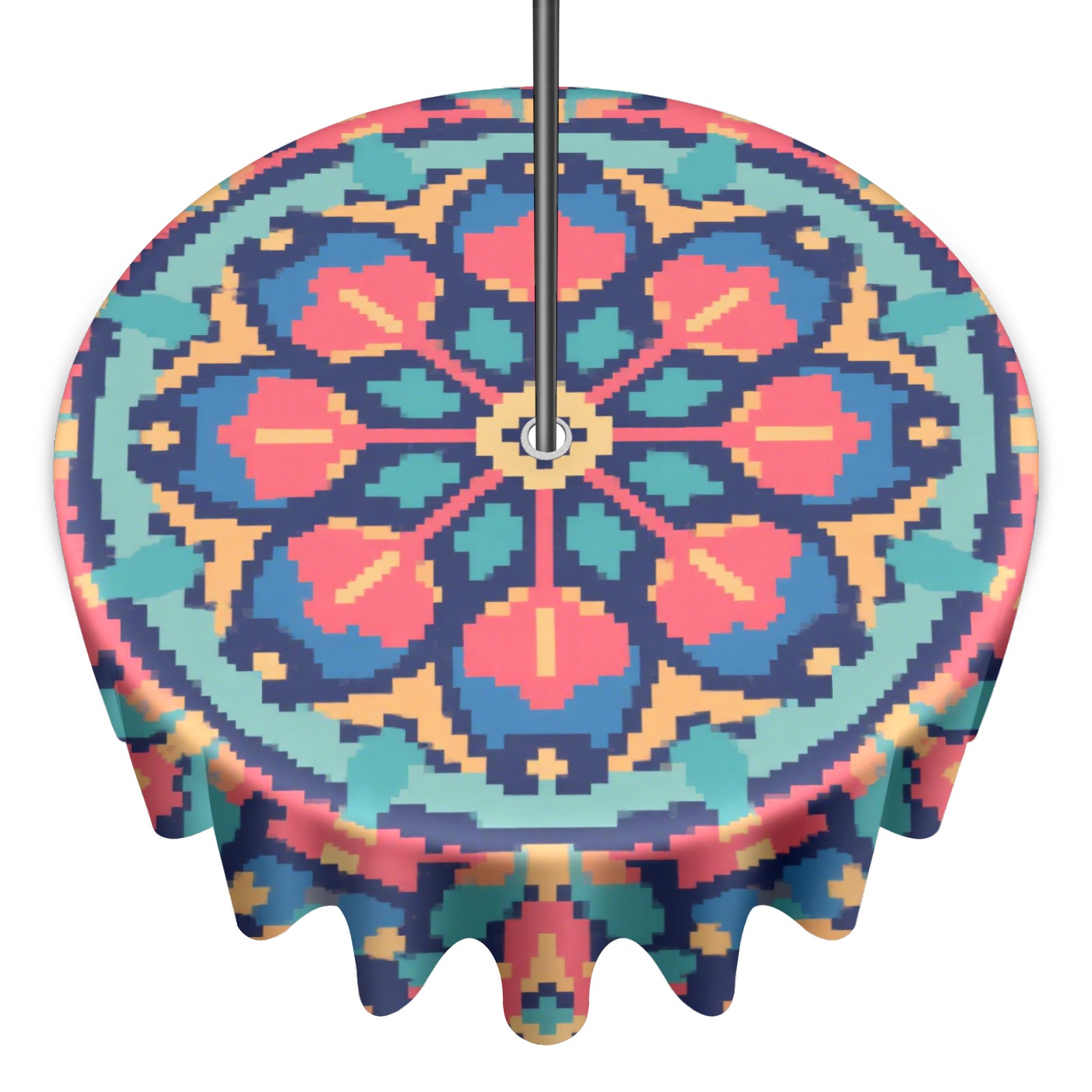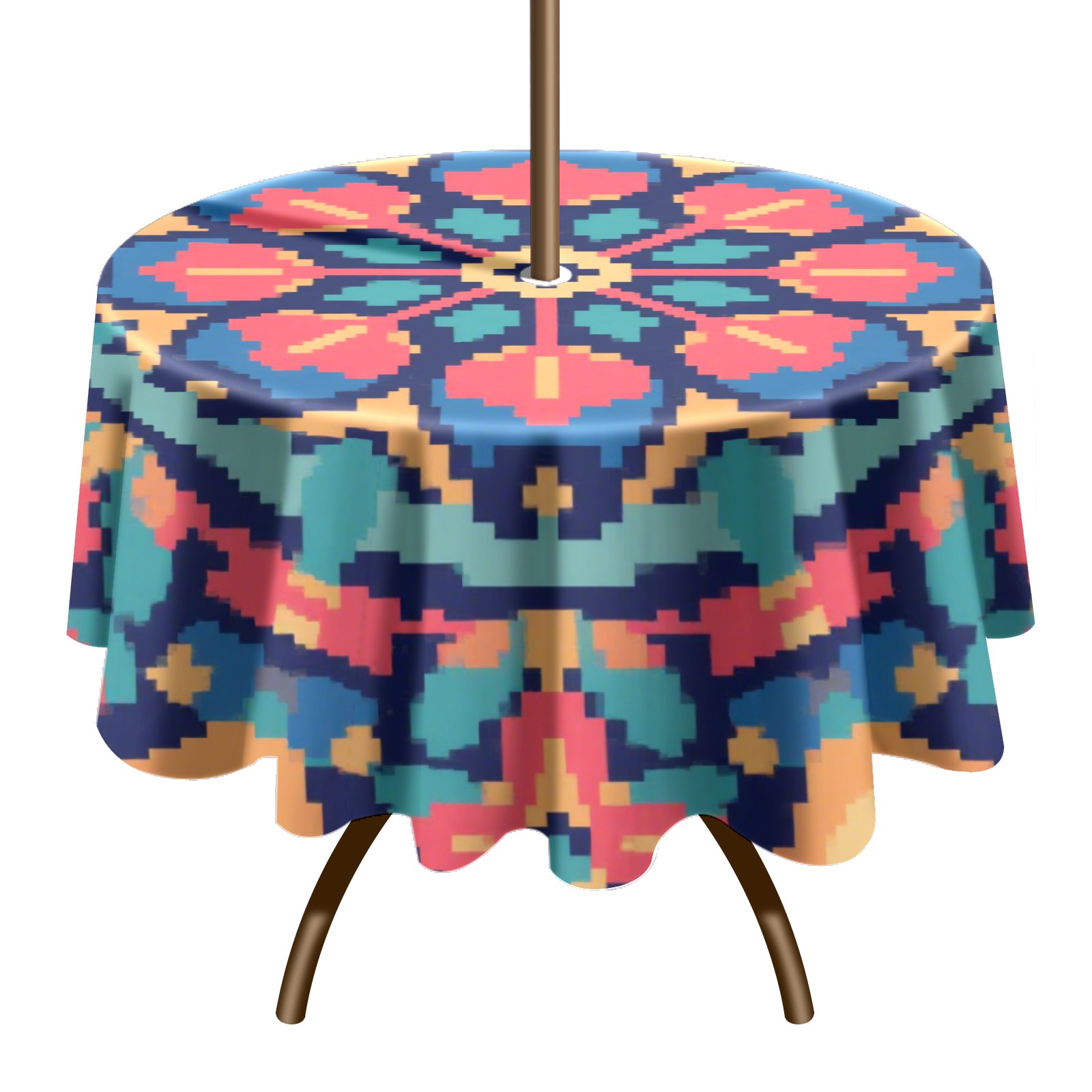 Round Tablecloth with Adjustable Zippered Hole - Durable Polyester for Patio, Restaurant & Outdoor Dining Pixel Style Blue Pattern (60in)