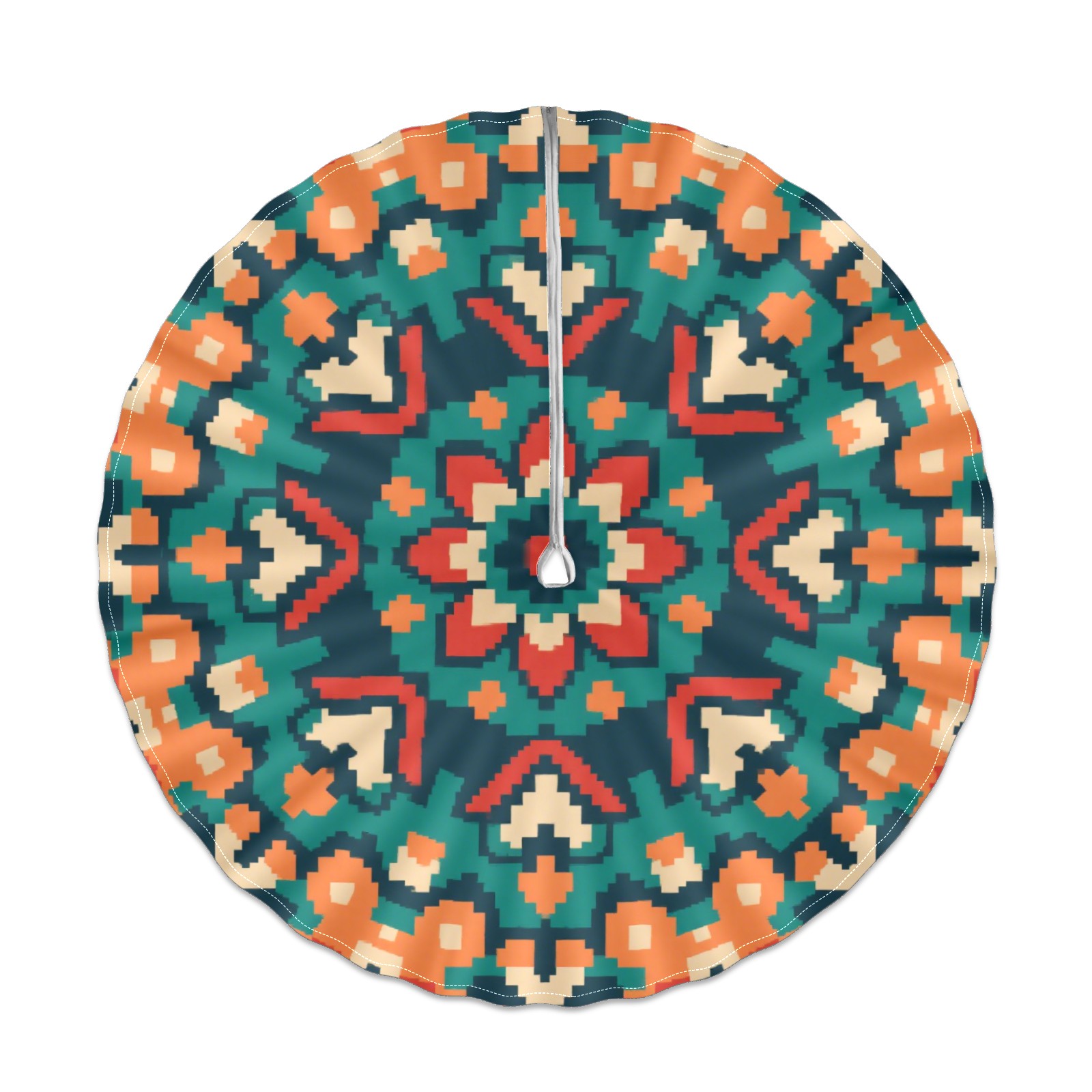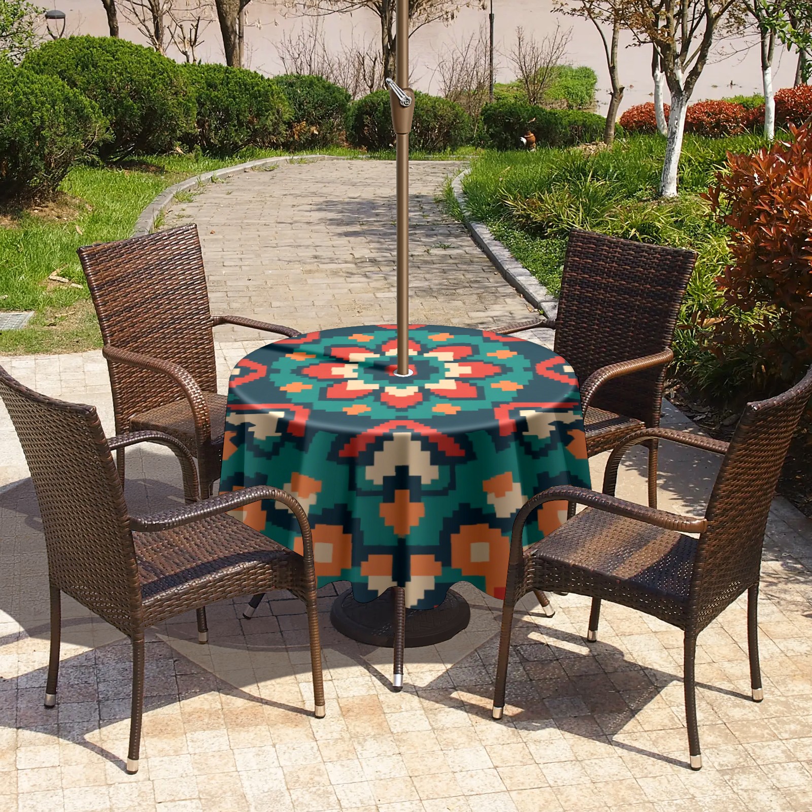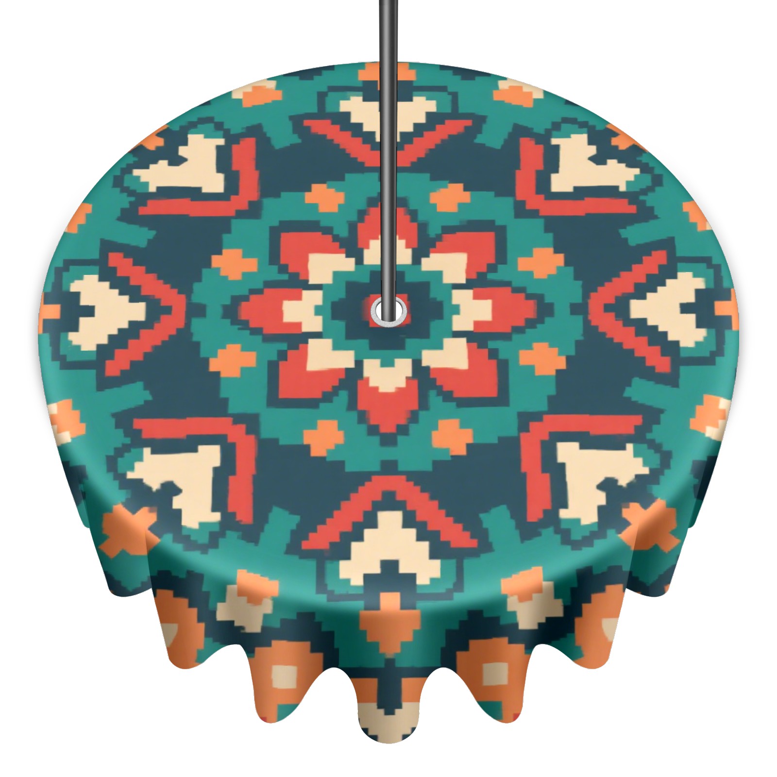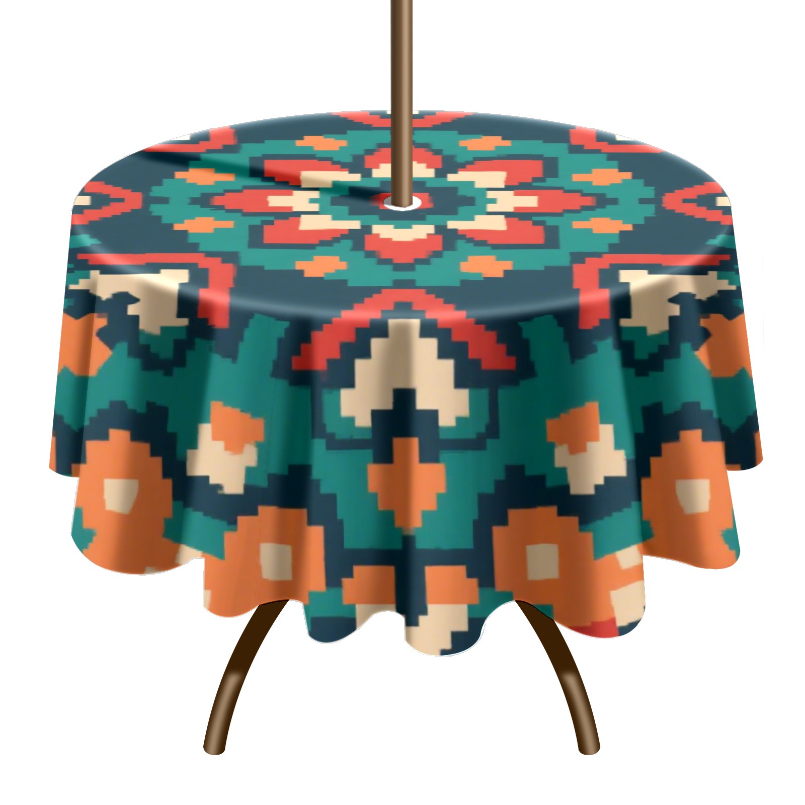 Round Tablecloth with Adjustable Zippered Hole - Durable Polyester for Patio, Restaurant & Outdoor Dining Pixel Style Floral Pattern (60in)